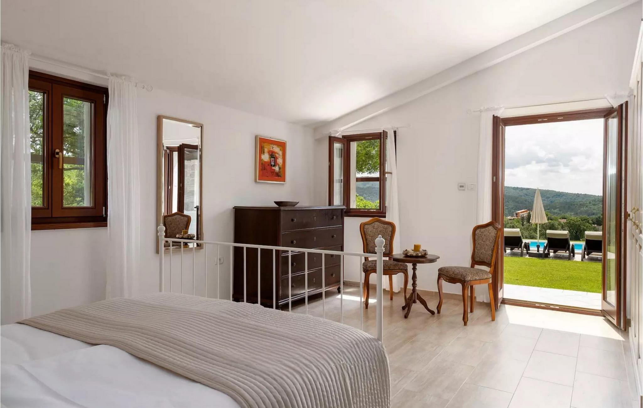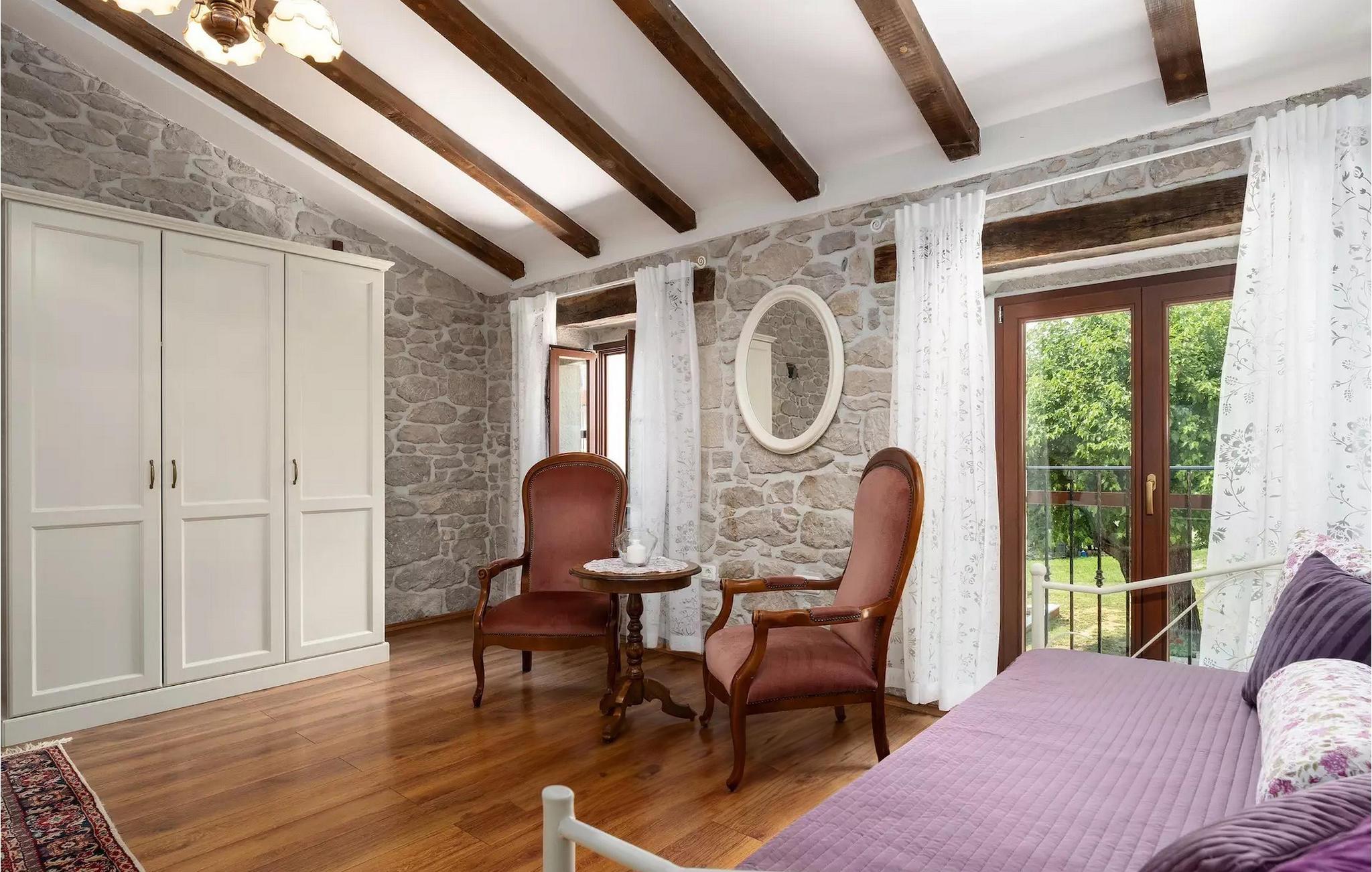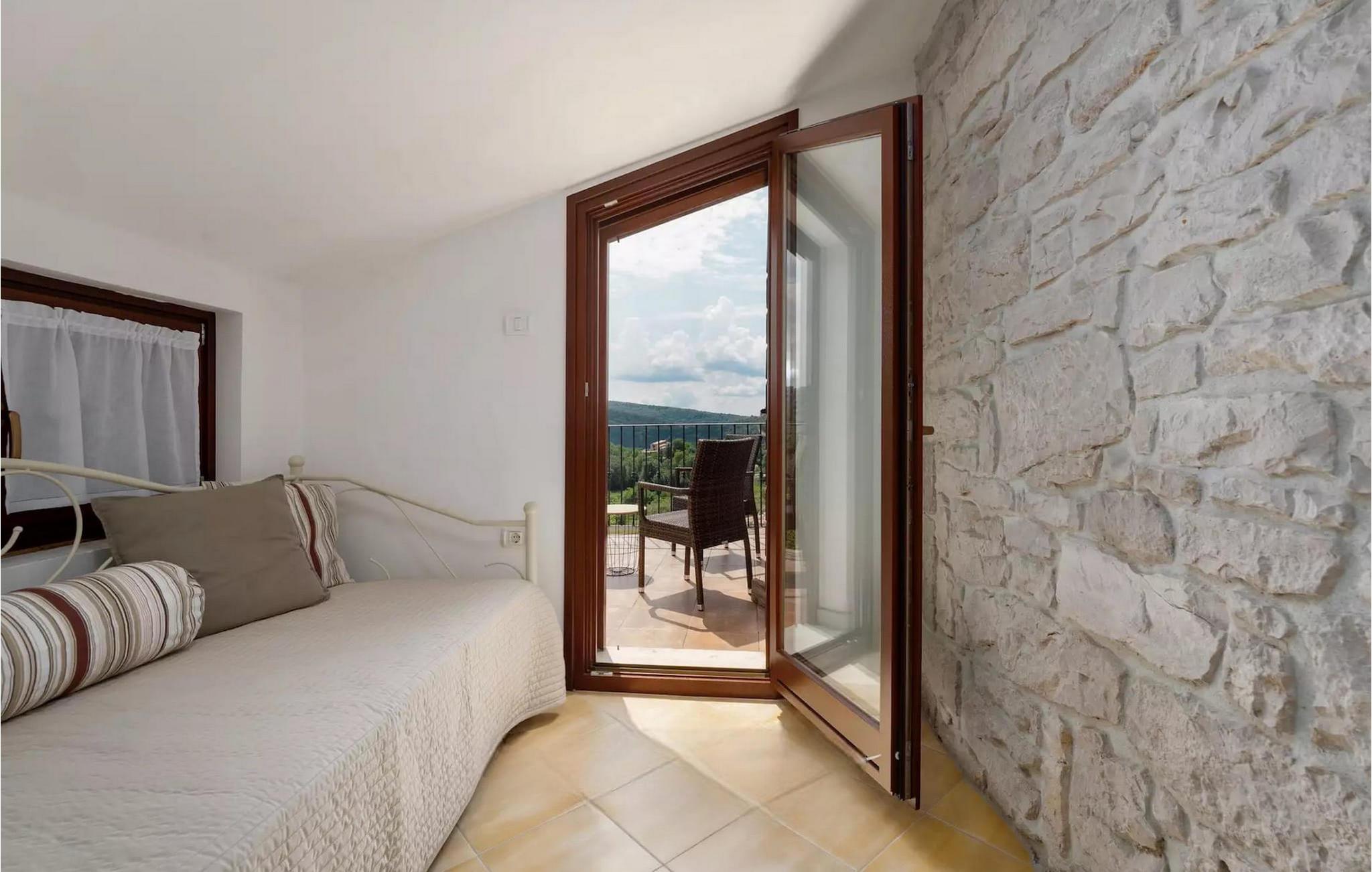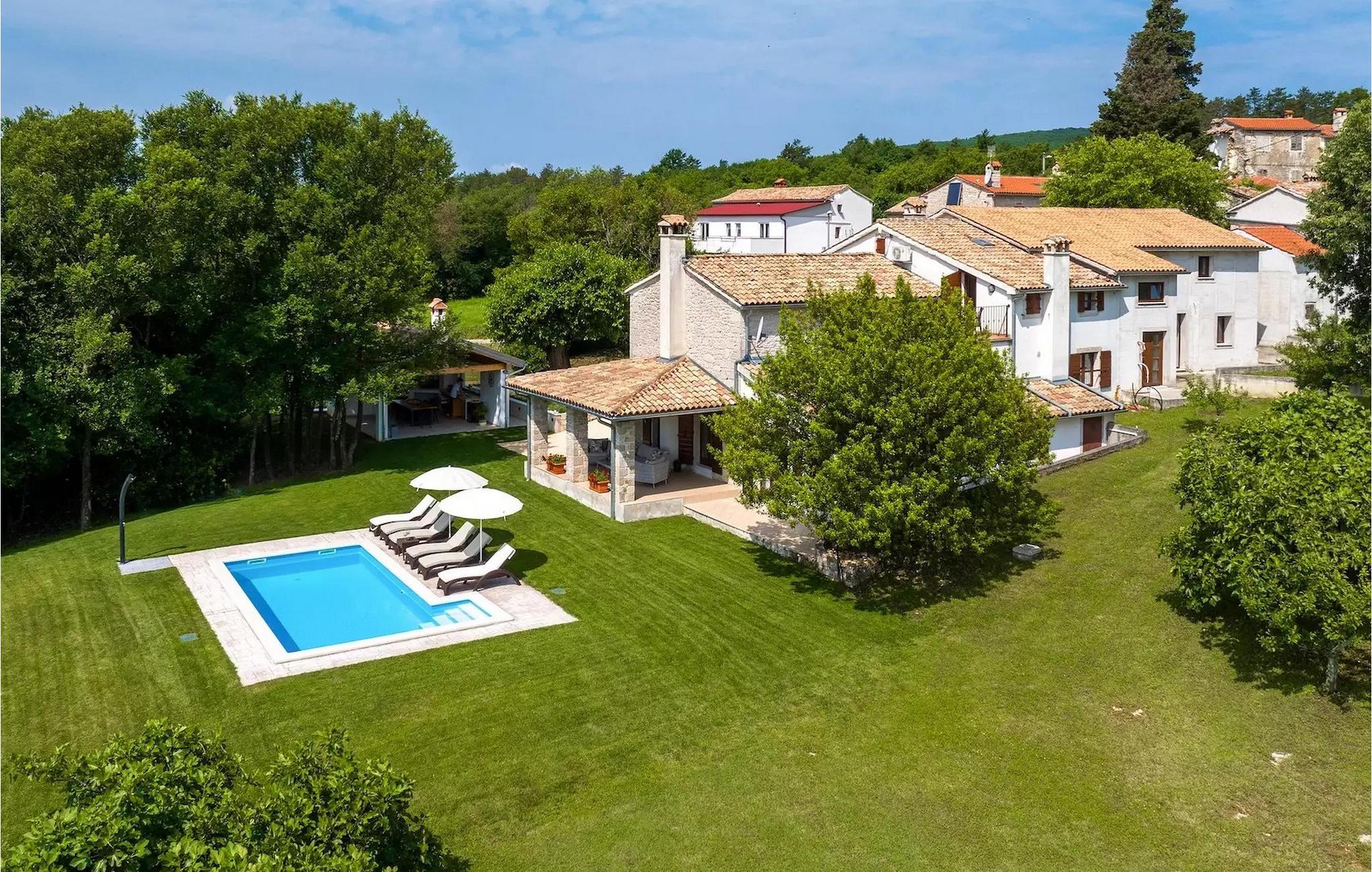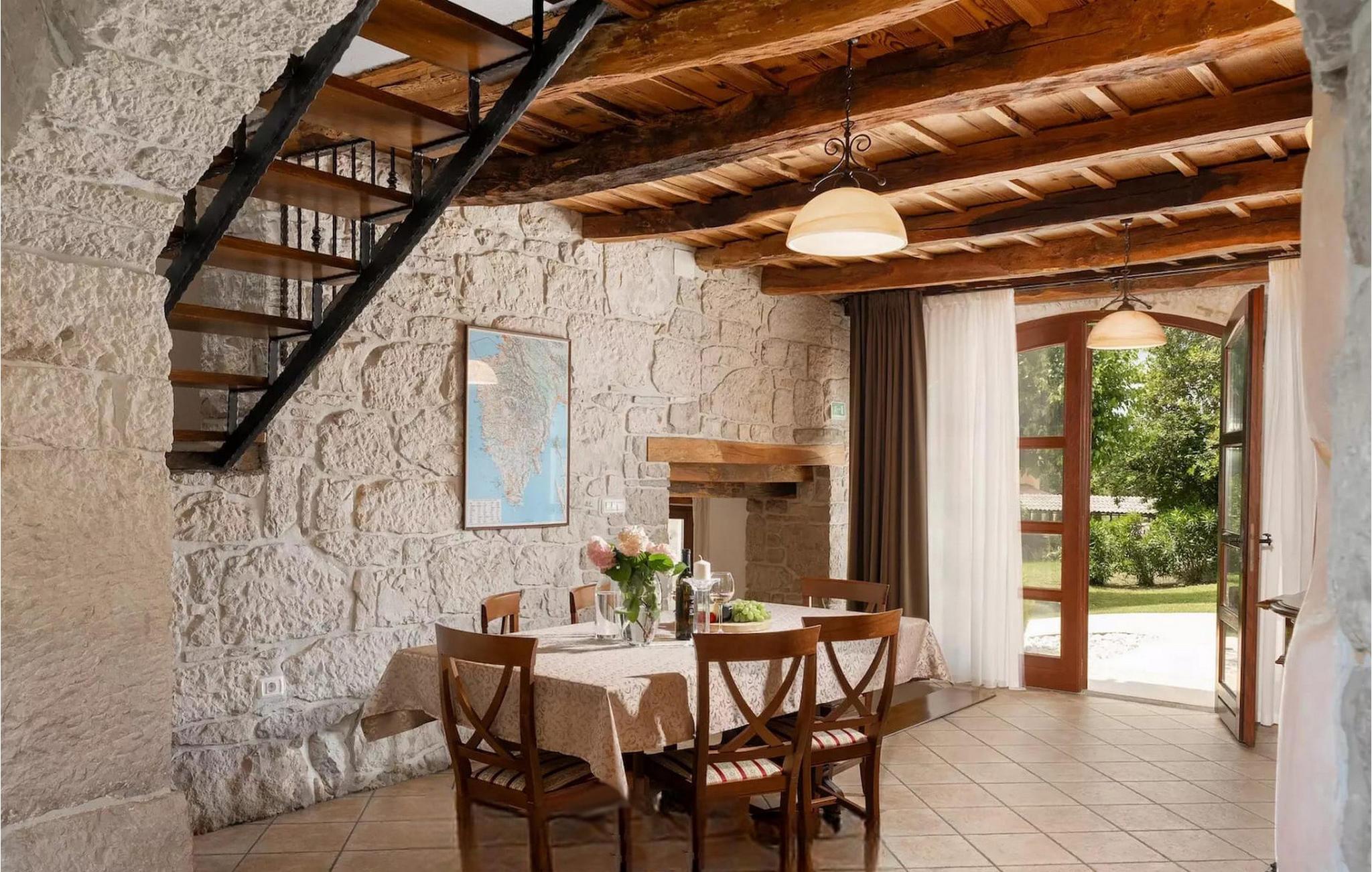 Omgivet af maleriske skove, ikke langt fra byen Buzet, ligger den charmerende Villa Garibaldi. Tiden ser ud til at stå stille her. Nostalgikere og elskere af svundne tider vil være glade her. Træets varme nuance i kontrast til den lyse sten og det hyggelige interiør, der til dels består af historiske møbler, skaber en smuk atmosfære, der inviterer til ophold. I alt tre komfortable soveværelser kan op til 8 personer finde afslapning. Det åbne opholds- og spiseområde overbeviser med sin enkle elegance. I det fuldt udstyrede køkken kan du tilberede lækre retter ligesom derhjemme. Spis i den rummelige spiseplads med direkte udgang til den overdækkede terrasse med opholdsstue. Villaens lille, men fine højdepunkt ligger på første sal. Drik din morgenkaffe på balkonen, som vil fortrylle dig med sin betagende udsigt over den omkringliggende natur. Udendørsområdet byder på et fuldt udstyret sommerkøkken med en kulgrill, hvor du kan tilbringe dejlige sommeraftener med din familie og venner, og byder på masser af plads til rekreation. Forfrisk dig selv i den private pool og nyd den store have. Villaen er beliggende lige uden for den antikke by Buzet. Buzet ligger i den nordlige del af Istrien nær grænsen til Slovenien. Dens historiske kerne, der stammer fra middelalderen, ligger på en bakketop over en frugtbar dal af den længste flod i Istrien - Mirna. I dag er Buzet almindeligt kendt som 'trøflernes by', da skovene langs Mirna-floden er særligt rige på denne guddommelige knold. Ifølge nogle synspunkter er den hvide trøffel i Istrien lige så god som den mest berømte hvide trøffel fra den italienske region Alba. Til ære for denne trøffel arrangeres hvert år Trøffeldage i september og oktober. Den anden weekend i september finder der også en stor folkefest i Buzet sted med en særlig attraktion – en kæmpe omelet (almindeligvis kendt som 'fritada' eller 'fritaja') med over 2.000 æg og 10 kg trøfler er tilberedt i en enorm pande. Denne begivenhed markerer officielt begyndelsen på Trøffeldage i Istrien. I Buzets omgivelser er der nogle meget velbevarede middelalderbyer. Villa Garibaldi er et perfekt tilflugtssted for dem, der ønsker at flygte fra hverdagens hektiske tempo. En bil anbefales.