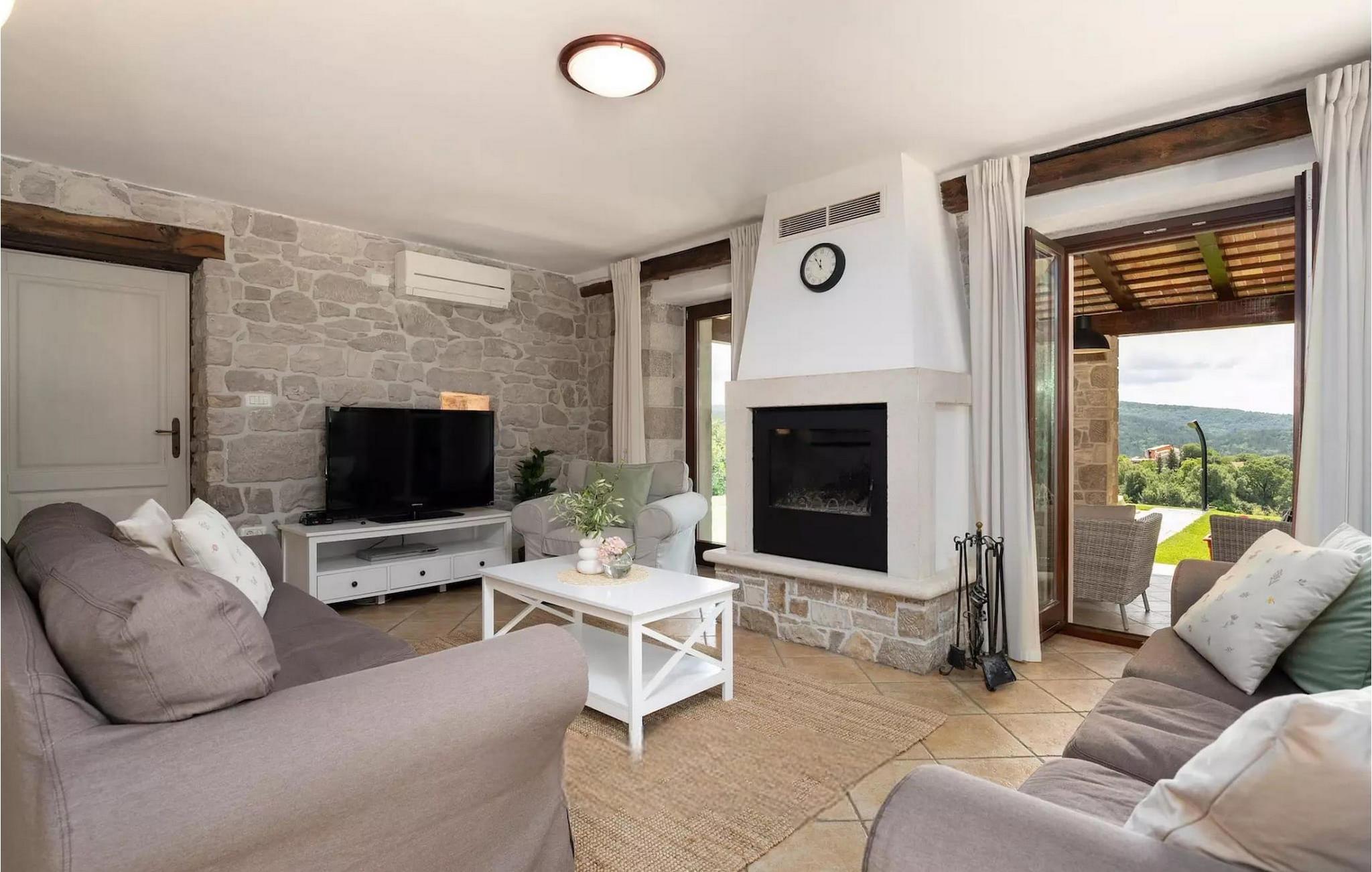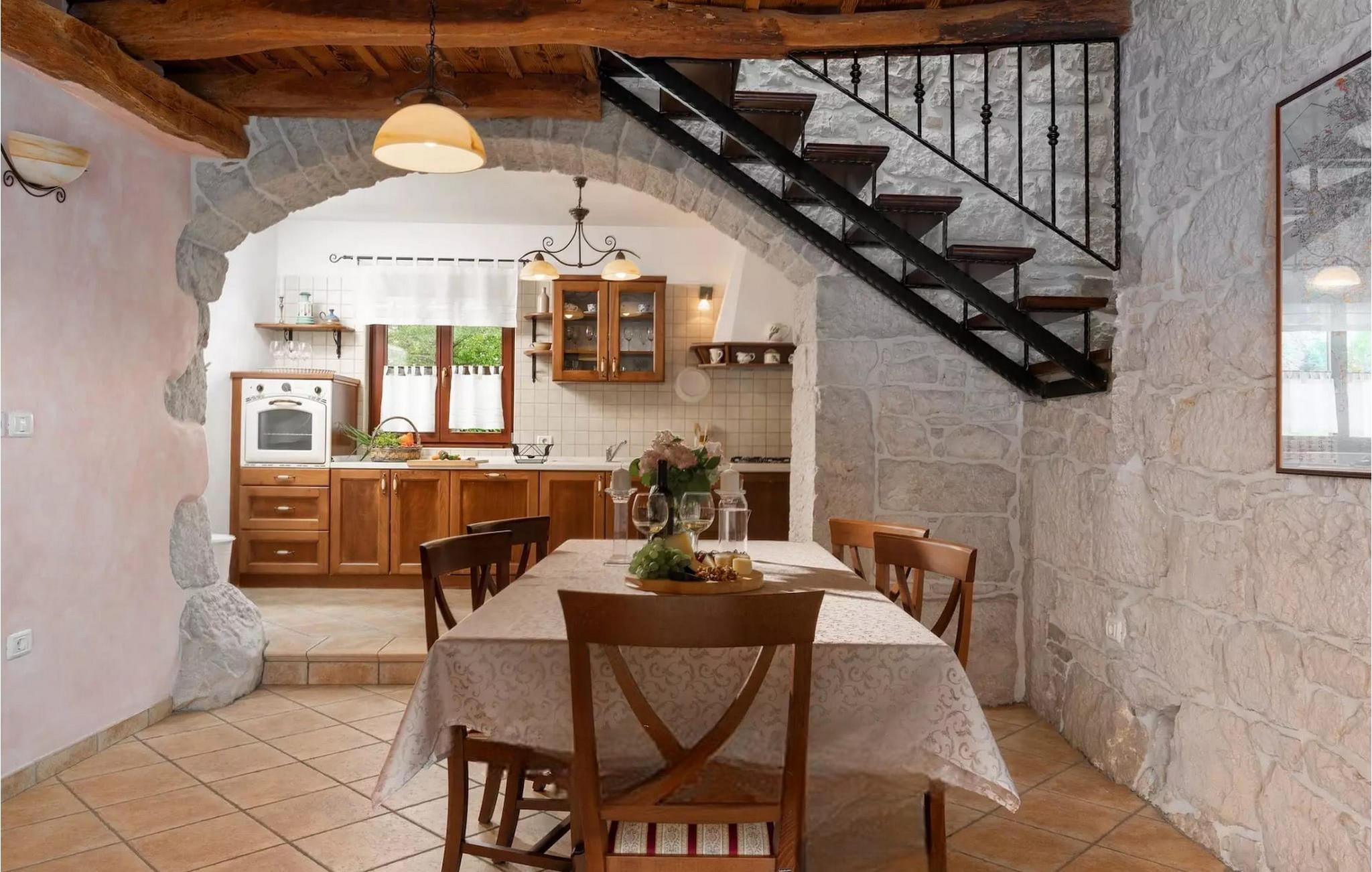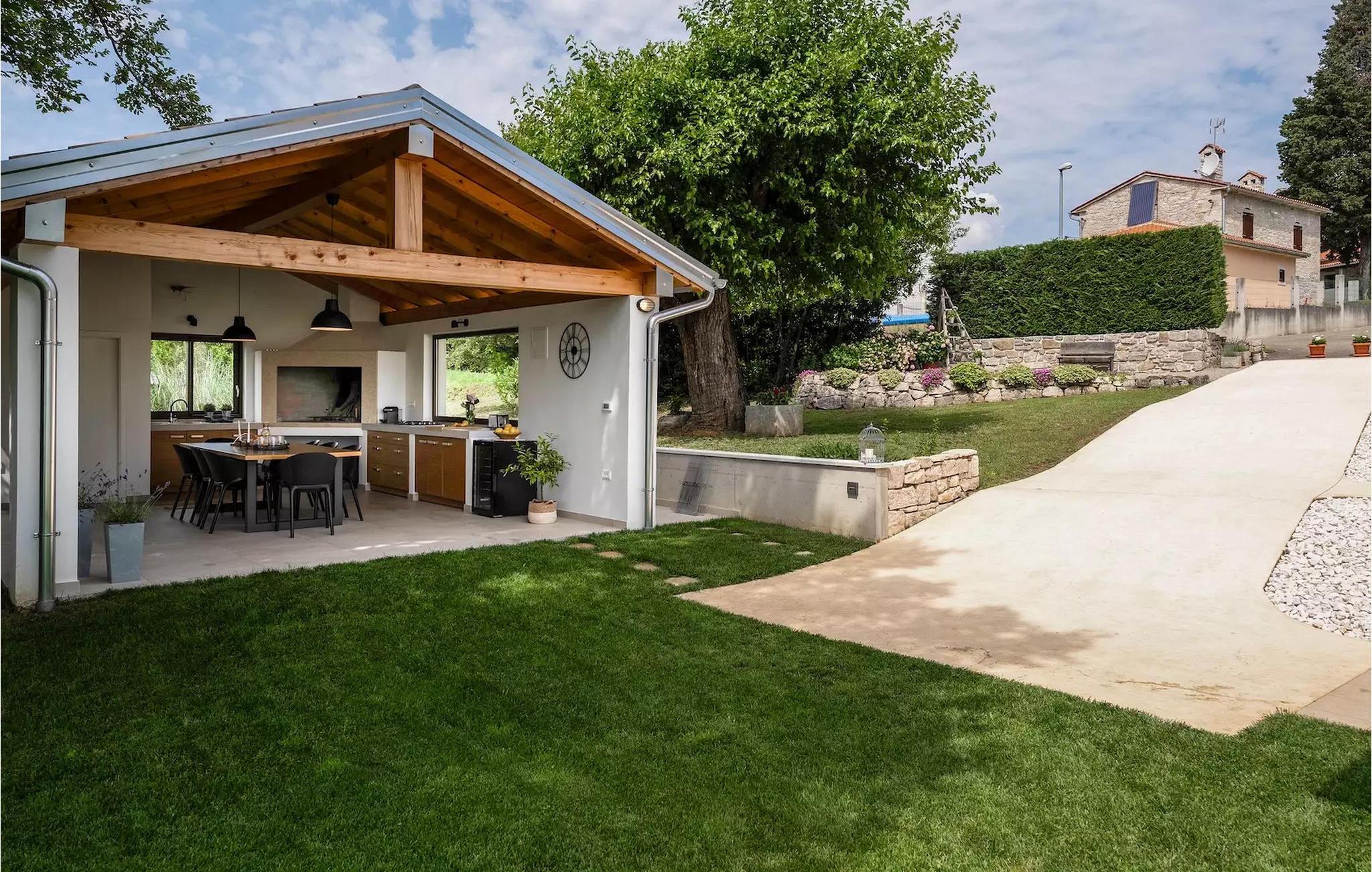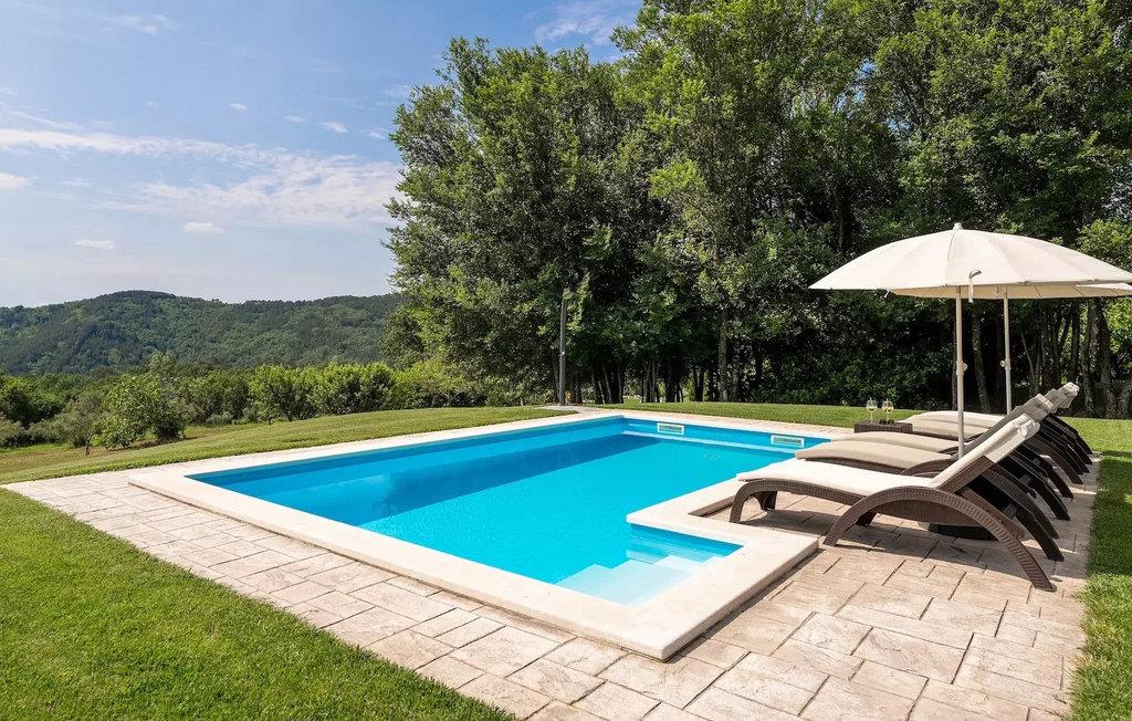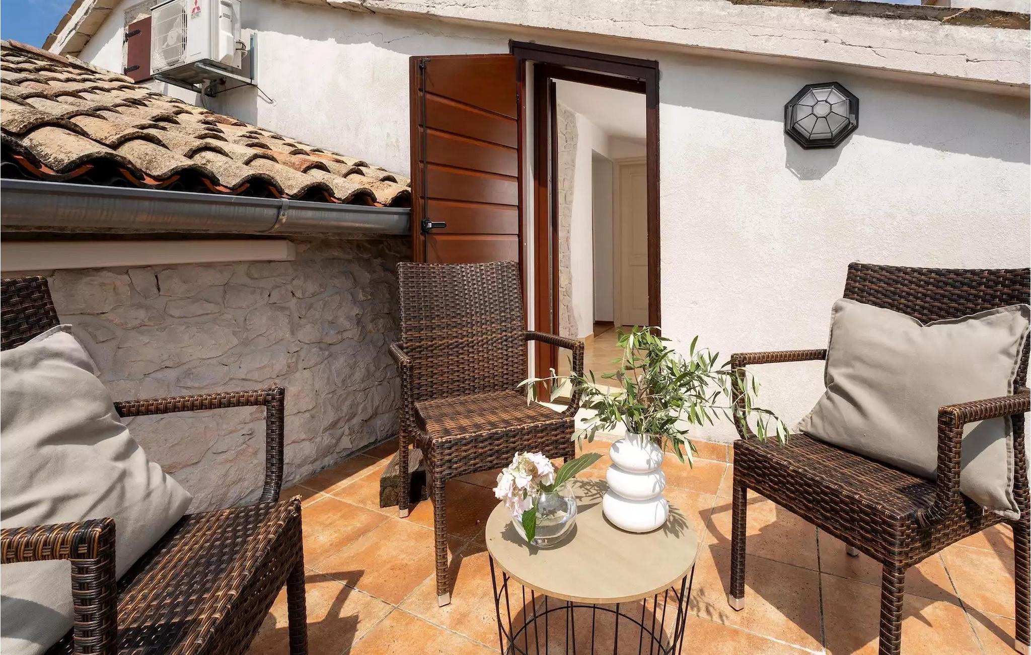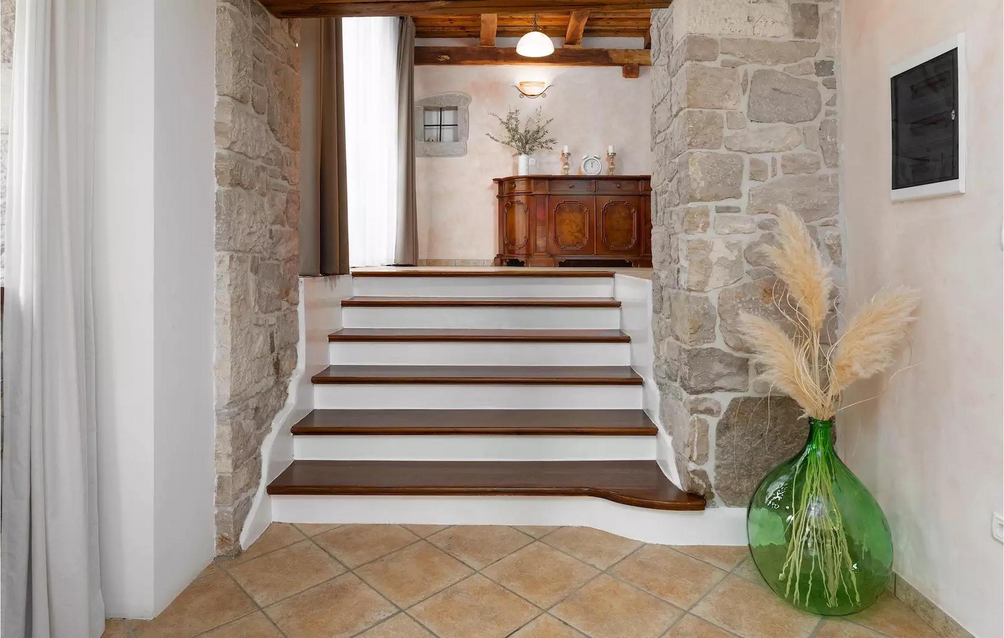 Omgivet af maleriske skove, ikke langt fra byen Buzet, ligger den charmerende Villa Garibaldi. Tiden ser ud til at stå stille her. Nostalgikere og elskere af svundne tider vil være glade her. Træets varme nuance i kontrast til den lyse sten og det hyggelige interiør, der til dels består af historiske møbler, skaber en smuk atmosfære, der inviterer til ophold. I alt tre komfortable soveværelser kan op til 8 personer finde afslapning. Det åbne opholds- og spiseområde overbeviser med sin enkle elegance. I det fuldt udstyrede køkken kan du tilberede lækre retter ligesom derhjemme. Spis i den rummelige spiseplads med direkte udgang til den overdækkede terrasse med opholdsstue. Villaens lille, men fine højdepunkt ligger på første sal. Drik din morgenkaffe på balkonen, som vil fortrylle dig med sin betagende udsigt over den omkringliggende natur. Udendørsområdet byder på et fuldt udstyret sommerkøkken med en kulgrill, hvor du kan tilbringe dejlige sommeraftener med din familie og venner, og byder på masser af plads til rekreation. Forfrisk dig selv i den private pool og nyd den store have. Villaen er beliggende lige uden for den antikke by Buzet. Buzet ligger i den nordlige del af Istrien nær grænsen til Slovenien. Dens historiske kerne, der stammer fra middelalderen, ligger på en bakketop over en frugtbar dal af den længste flod i Istrien - Mirna. I dag er Buzet almindeligt kendt som 'trøflernes by', da skovene langs Mirna-floden er særligt rige på denne guddommelige knold. Ifølge nogle synspunkter er den hvide trøffel i Istrien lige så god som den mest berømte hvide trøffel fra den italienske region Alba. Til ære for denne trøffel arrangeres hvert år Trøffeldage i september og oktober. Den anden weekend i september finder der også en stor folkefest i Buzet sted med en særlig attraktion – en kæmpe omelet (almindeligvis kendt som 'fritada' eller 'fritaja') med over 2.000 æg og 10 kg trøfler er tilberedt i en enorm pande. Denne begivenhed markerer officielt begyndelsen på Trøffeldage i Istrien. I Buzets omgivelser er der nogle meget velbevarede middelalderbyer. Villa Garibaldi er et perfekt tilflugtssted for dem, der ønsker at flygte fra hverdagens hektiske tempo. En bil anbefales.