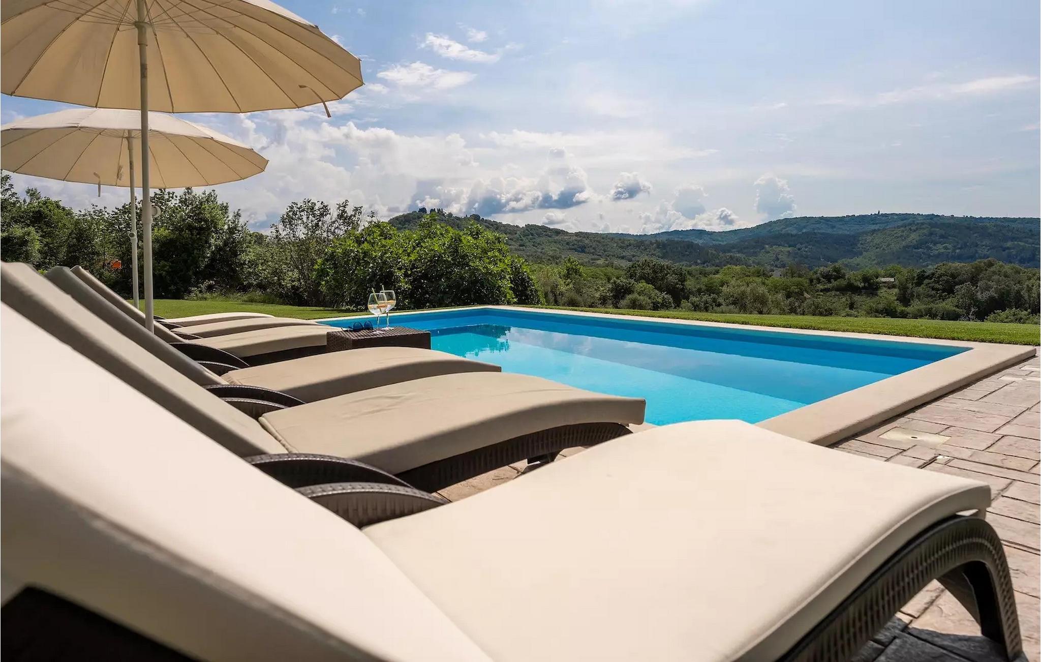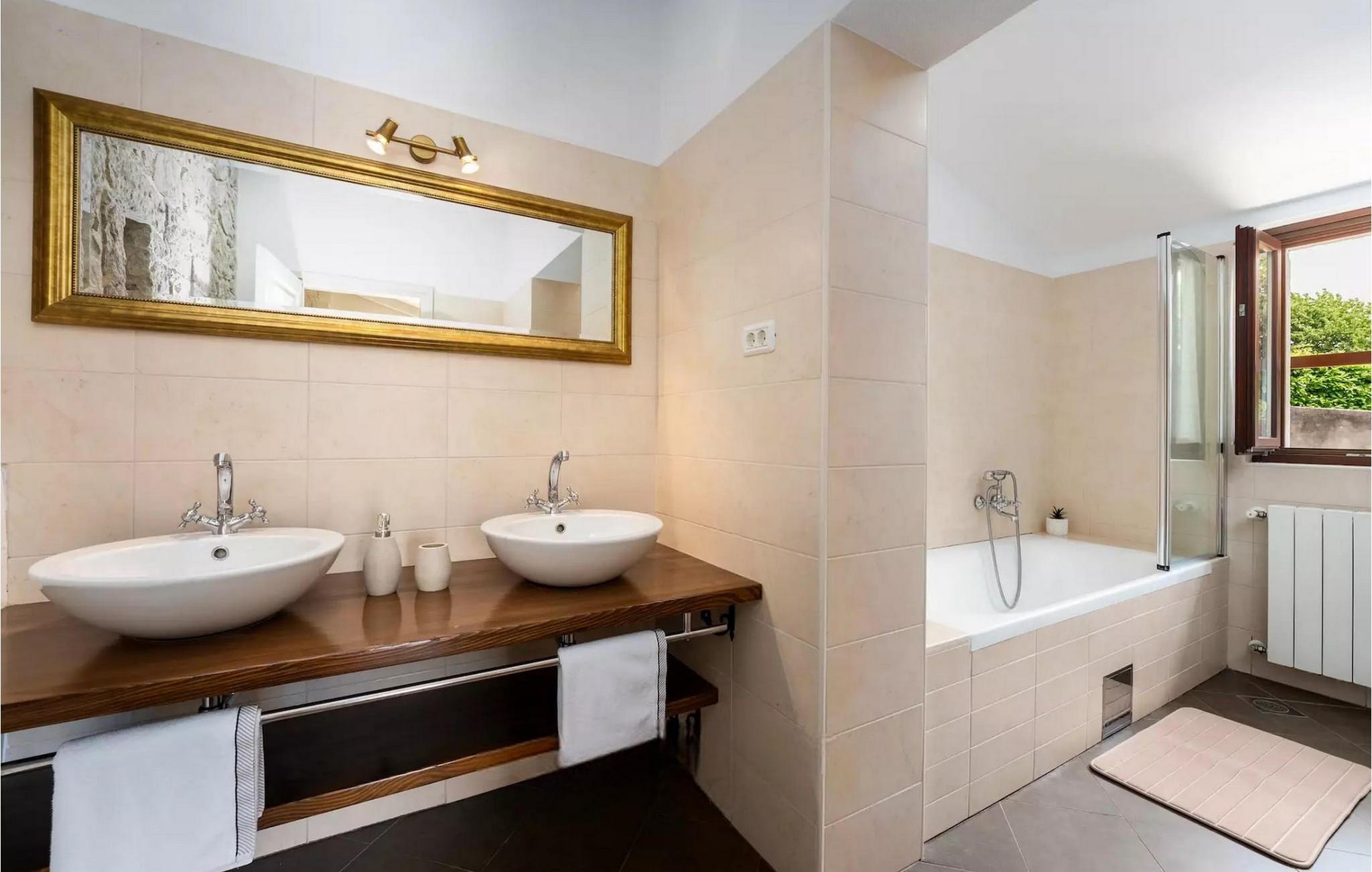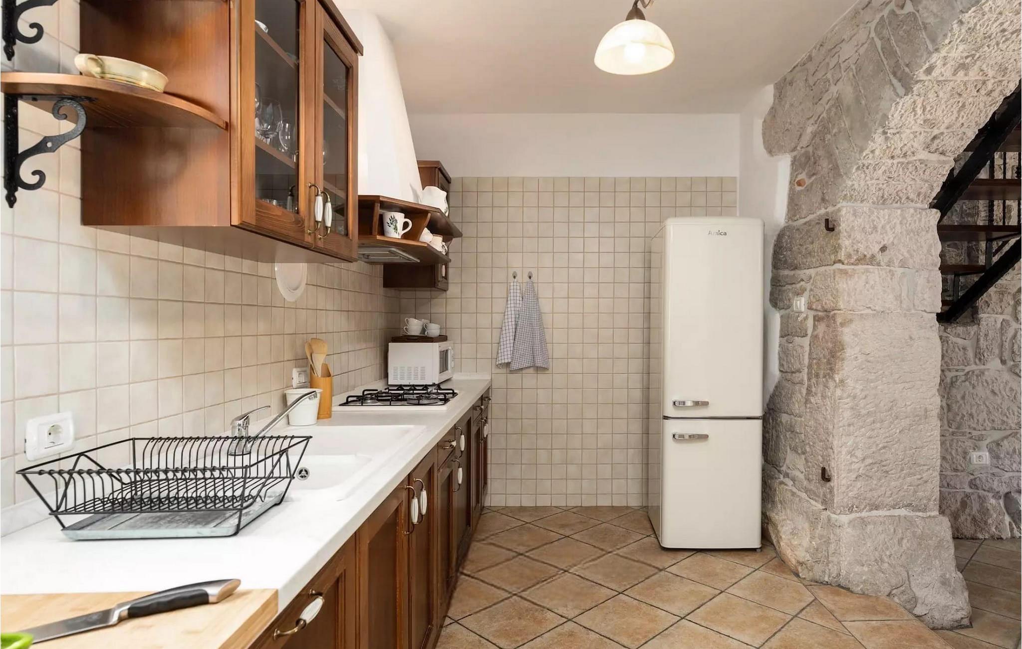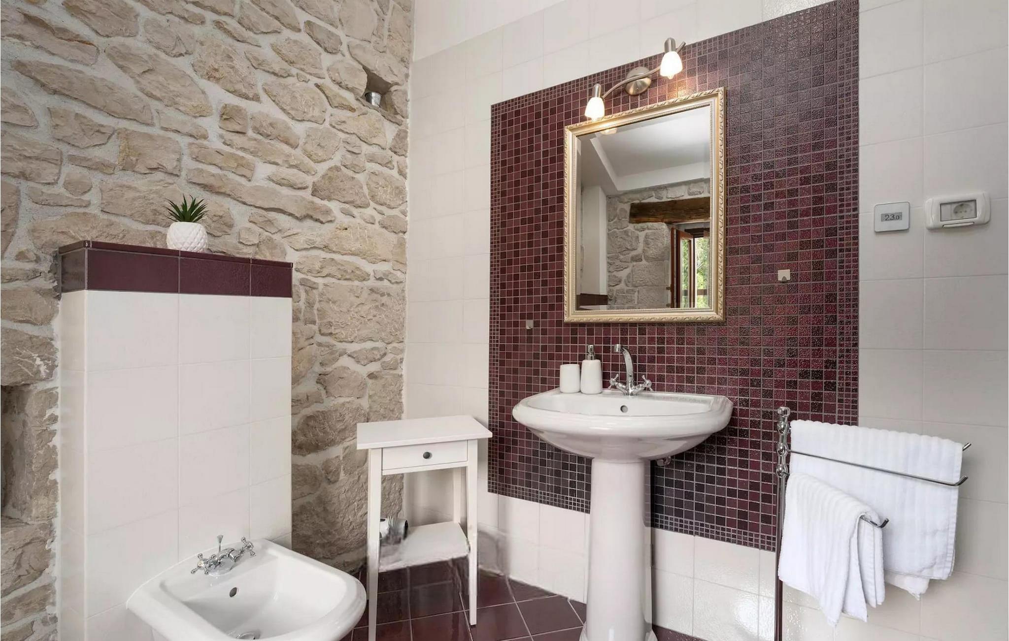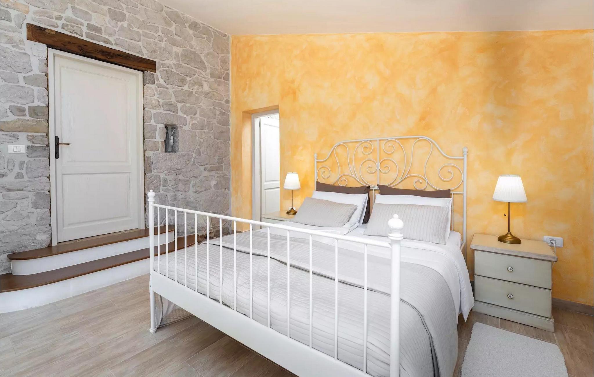 Omgivet af maleriske skove, ikke langt fra byen Buzet, ligger den charmerende Villa Garibaldi. Tiden ser ud til at stå stille her. Nostalgikere og elskere af svundne tider vil være glade her. Træets varme nuance i kontrast til den lyse sten og det hyggelige interiør, der til dels består af historiske møbler, skaber en smuk atmosfære, der inviterer til ophold. I alt tre komfortable soveværelser kan op til 8 personer finde afslapning. Det åbne opholds- og spiseområde overbeviser med sin enkle elegance. I det fuldt udstyrede køkken kan du tilberede lækre retter ligesom derhjemme. Spis i den rummelige spiseplads med direkte udgang til den overdækkede terrasse med opholdsstue. Villaens lille, men fine højdepunkt ligger på første sal. Drik din morgenkaffe på balkonen, som vil fortrylle dig med sin betagende udsigt over den omkringliggende natur. Udendørsområdet byder på et fuldt udstyret sommerkøkken med en kulgrill, hvor du kan tilbringe dejlige sommeraftener med din familie og venner, og byder på masser af plads til rekreation. Forfrisk dig selv i den private pool og nyd den store have. Villaen er beliggende lige uden for den antikke by Buzet. Buzet ligger i den nordlige del af Istrien nær grænsen til Slovenien. Dens historiske kerne, der stammer fra middelalderen, ligger på en bakketop over en frugtbar dal af den længste flod i Istrien - Mirna. I dag er Buzet almindeligt kendt som 'trøflernes by', da skovene langs Mirna-floden er særligt rige på denne guddommelige knold. Ifølge nogle synspunkter er den hvide trøffel i Istrien lige så god som den mest berømte hvide trøffel fra den italienske region Alba. Til ære for denne trøffel arrangeres hvert år Trøffeldage i september og oktober. Den anden weekend i september finder der også en stor folkefest i Buzet sted med en særlig attraktion – en kæmpe omelet (almindeligvis kendt som 'fritada' eller 'fritaja') med over 2.000 æg og 10 kg trøfler er tilberedt i en enorm pande. Denne begivenhed markerer officielt begyndelsen på Trøffeldage i Istrien. I Buzets omgivelser er der nogle meget velbevarede middelalderbyer. Villa Garibaldi er et perfekt tilflugtssted for dem, der ønsker at flygte fra hverdagens hektiske tempo. En bil anbefales.