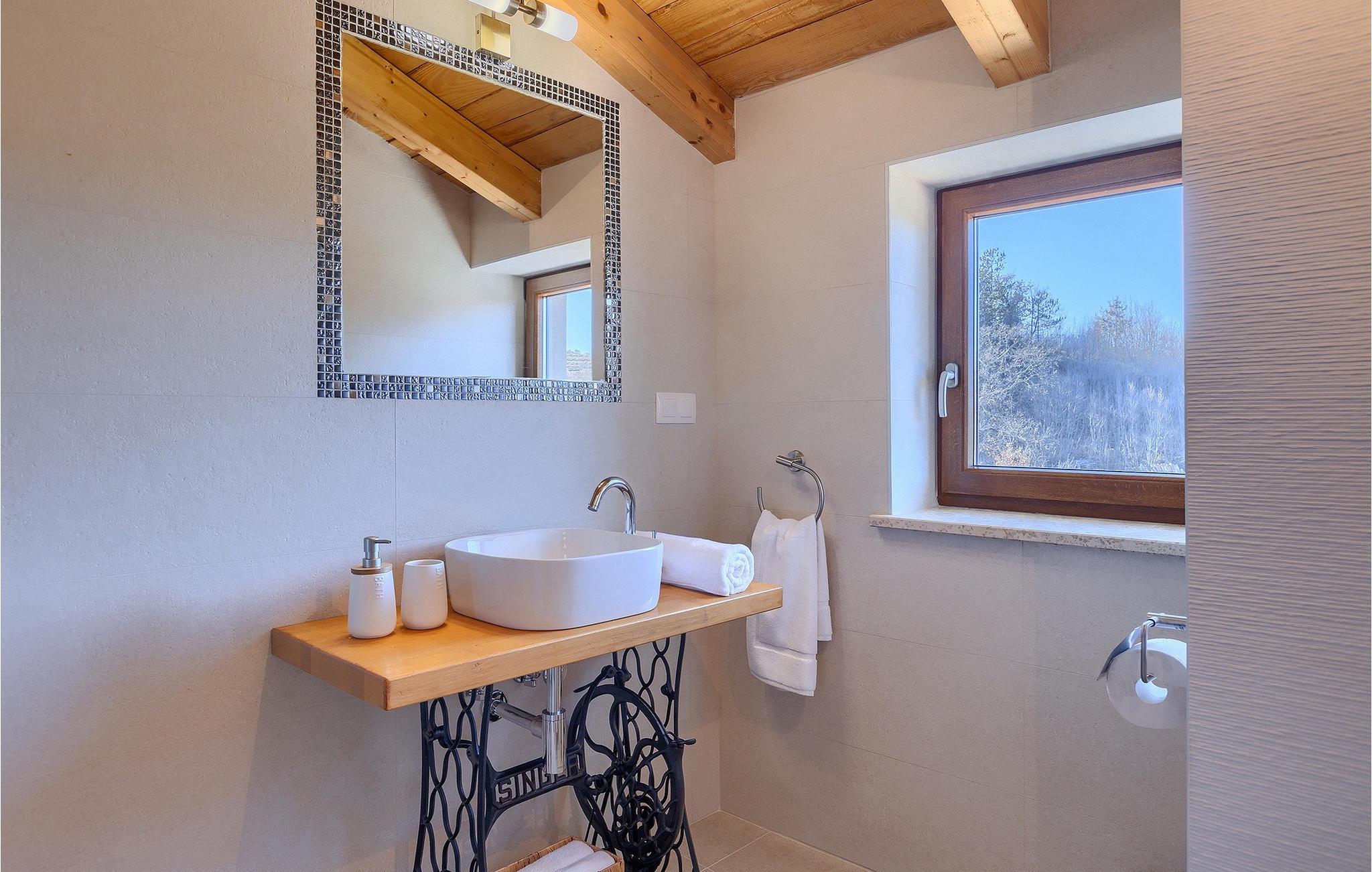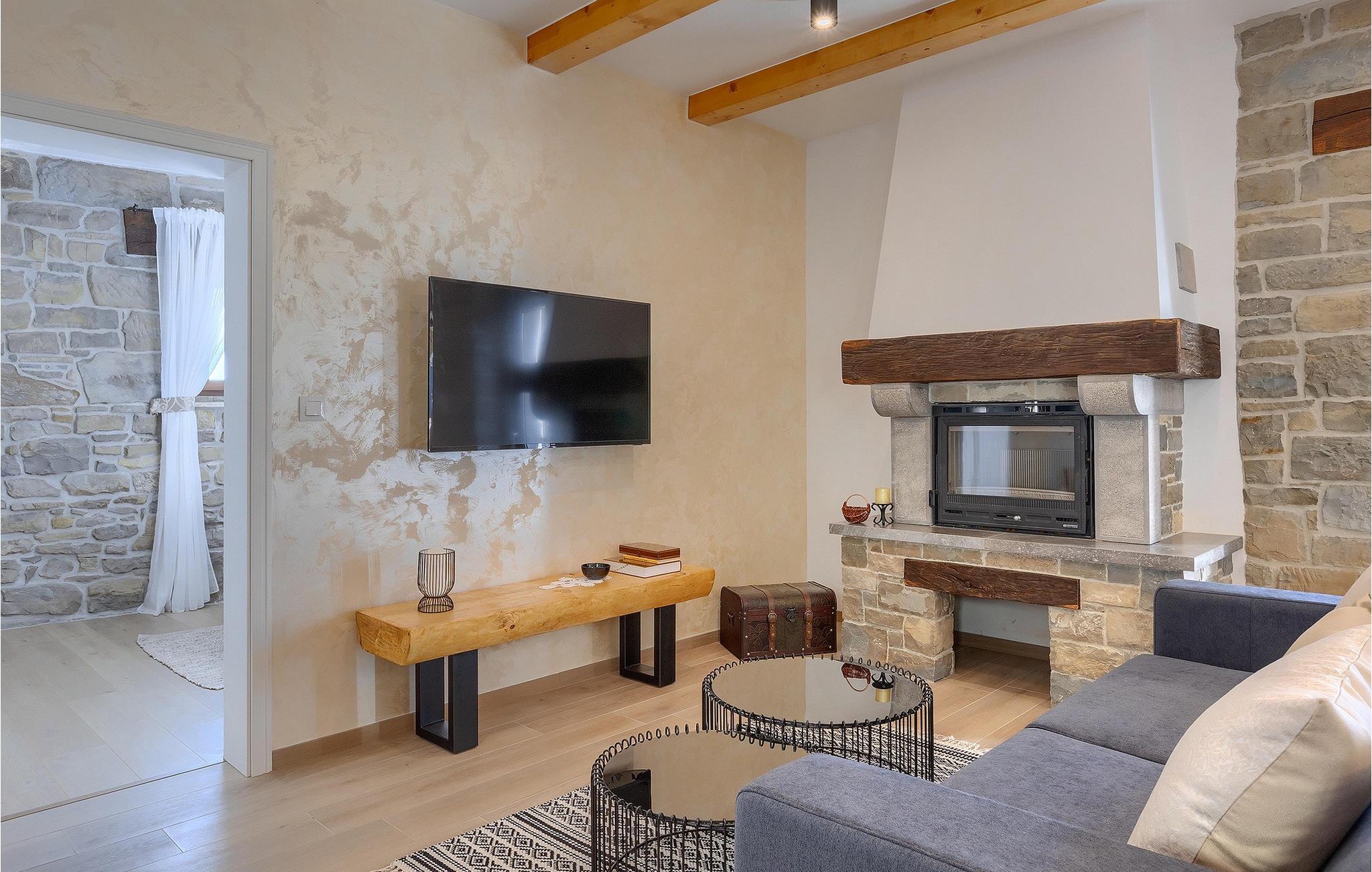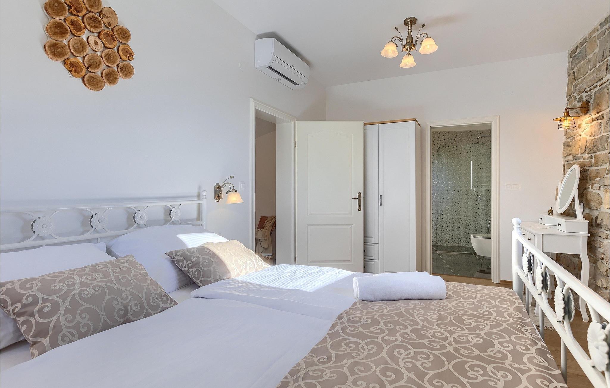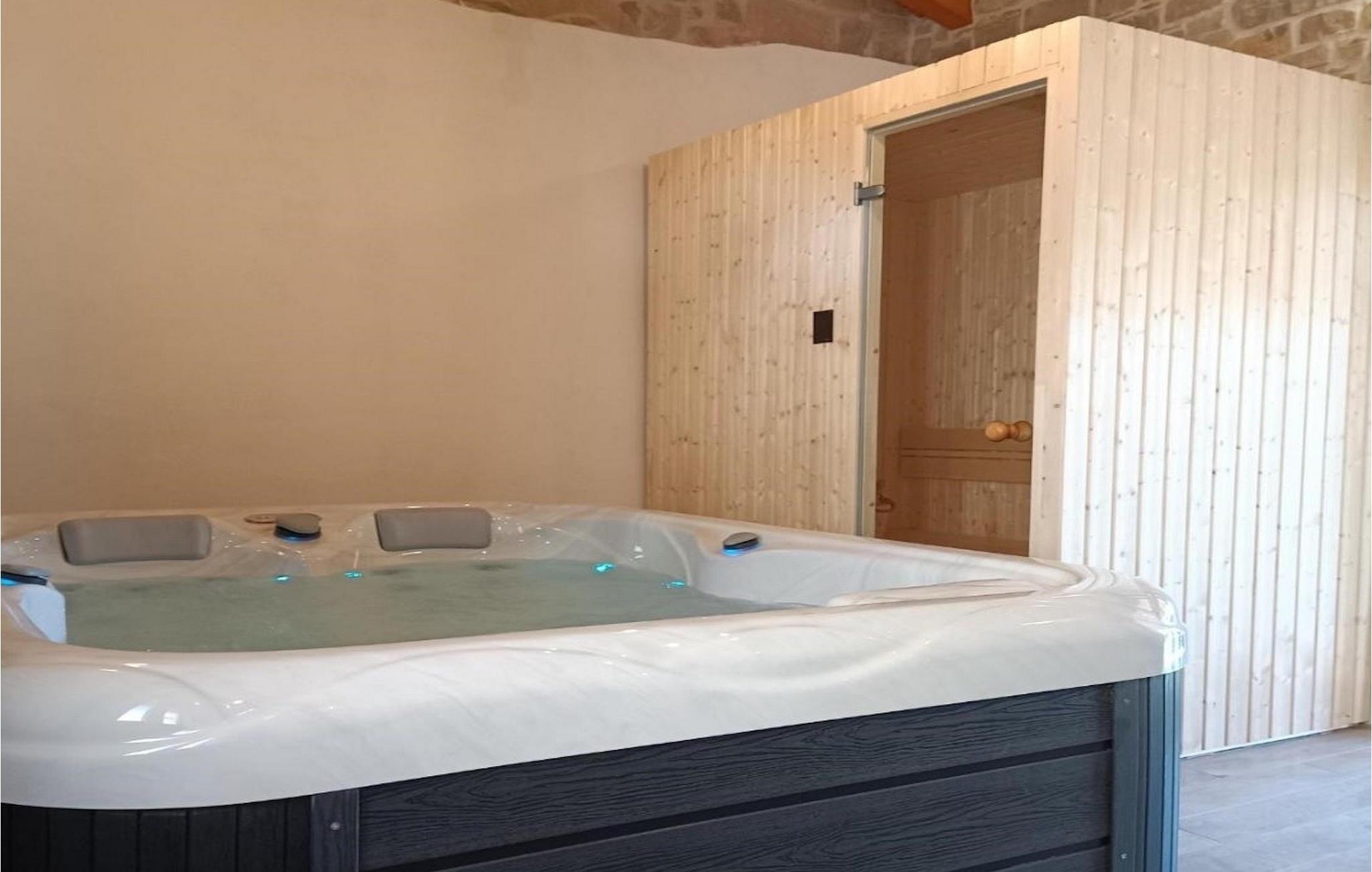 Villa Poji er en charmerende villa i den lille landsby Marceneško polje i Buzet kommune. Villaen er fuldstændig restaureret og vil få dig til at føle dig hjemme. Med i alt 215 kvadratmeter boligareal og 3 nænsomt indrettede soveværelser kan den rumme op til 6+2 personer. Stueetagen af villaen består af en meget lys og luftig stue og spisestue, et fuldt udstyret køkken og et soveværelse med eget badeværelse. Ovenpå finder du yderligere to soveværelser. Det store soveværelse med dobbeltseng har eget badeværelse med badekar, mens det andet soveværelse har to enkeltsenge og også har eget badeværelse med bruser. Fra opholdsrummet har I direkte adgang til den overdækkede udendørs spiseplads, hvor I kan nyde en hyggelig middag med familien og en storslået udsigt over omgivelserne. Kun få skridt væk ligger den indbydende private pool, det perfekte sted at forfriske dig selv eller slappe af på de komfortable liggestole. I slutningen af dagen skal du lade alle dine bekymringer ligge i spa-området og slappe af i jacuzzien og saunaen. Cykler er også til din rådighed for at udforske og opdage det bredere område. Hvis du leder efter en rolig og afslappende ferie, er Villa Poji det rigtige valg for dig. Gå ikke glip af denne mulighed og bestil Villa Poji lige nu! Familievillaen Poji ligger i en lille landsby i Buzet kommune i det centrale Istrien. Villaen er omgivet af olivenlunde og kun få naboer. Hvis du leder efter en afslappende og fredelig ferie, er denne villa det perfekte sted. Buzet er den første større by, hvor du kan købe dagligvarer. Hvis du leder efter restauranter, er der nogle af de bedste restauranter i Istrien i området, der serverer traditionelle retter som hjemmelavet pasta med trøfler, istrisk oksekød, alt sammen toppet med et glas af det bedste Malvasia. Det centrale Istrien er kendt for sine mange cykel- og vandrestier, hvor du kan nyde naturen og opdage små bakkebyer som Buzet, Motovun og Groznjan. For kulturelskere anbefaler vi et besøg i byen Pula med dets amfiteater og Porec med Eufrazier-basilikaen. Hvis du vil tilbringe din ferie på stranden, er Novigrad den første strand, men gå ikke glip af at opdage mange andre skjulte bugter og strande i Istrien.