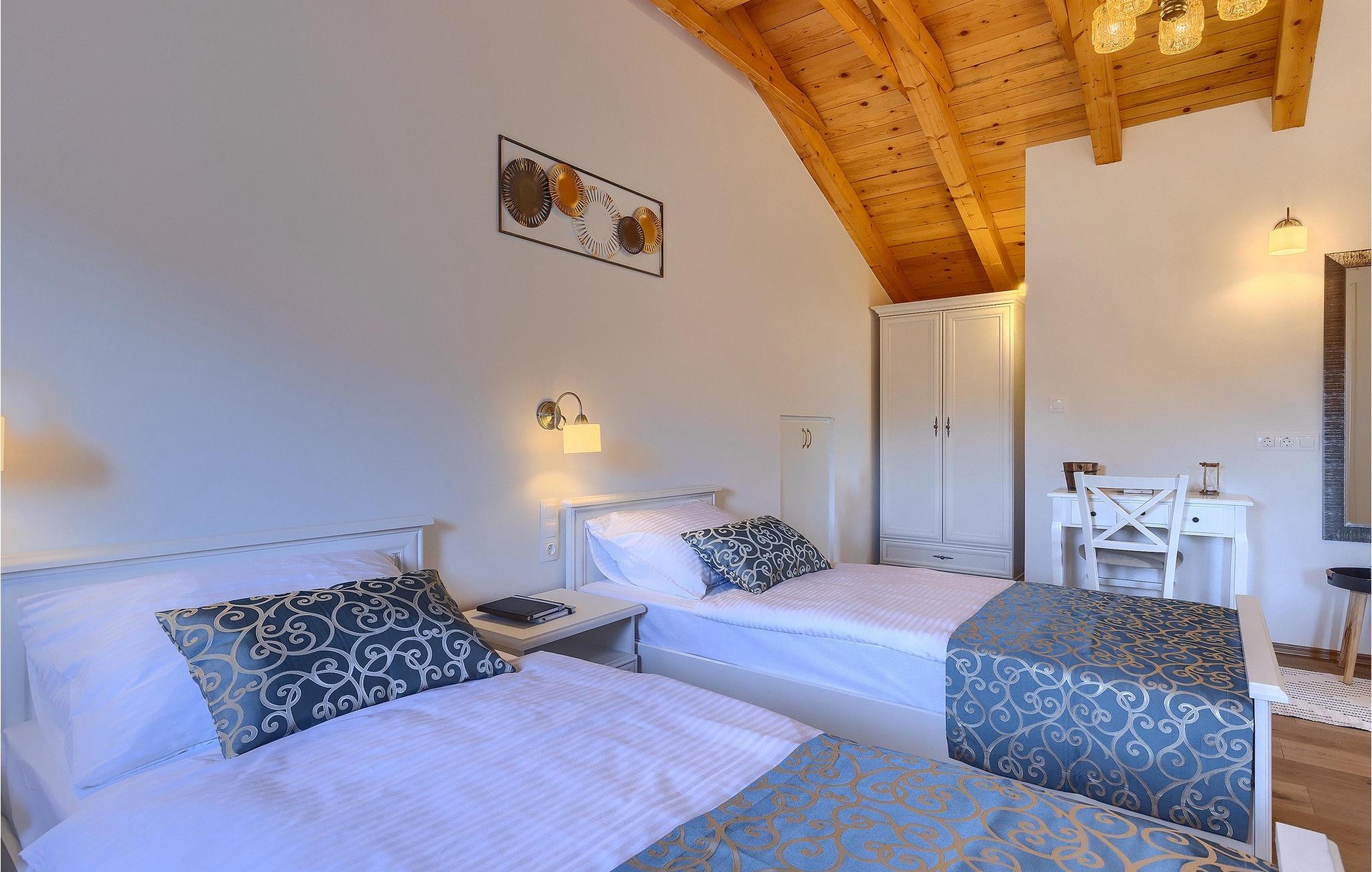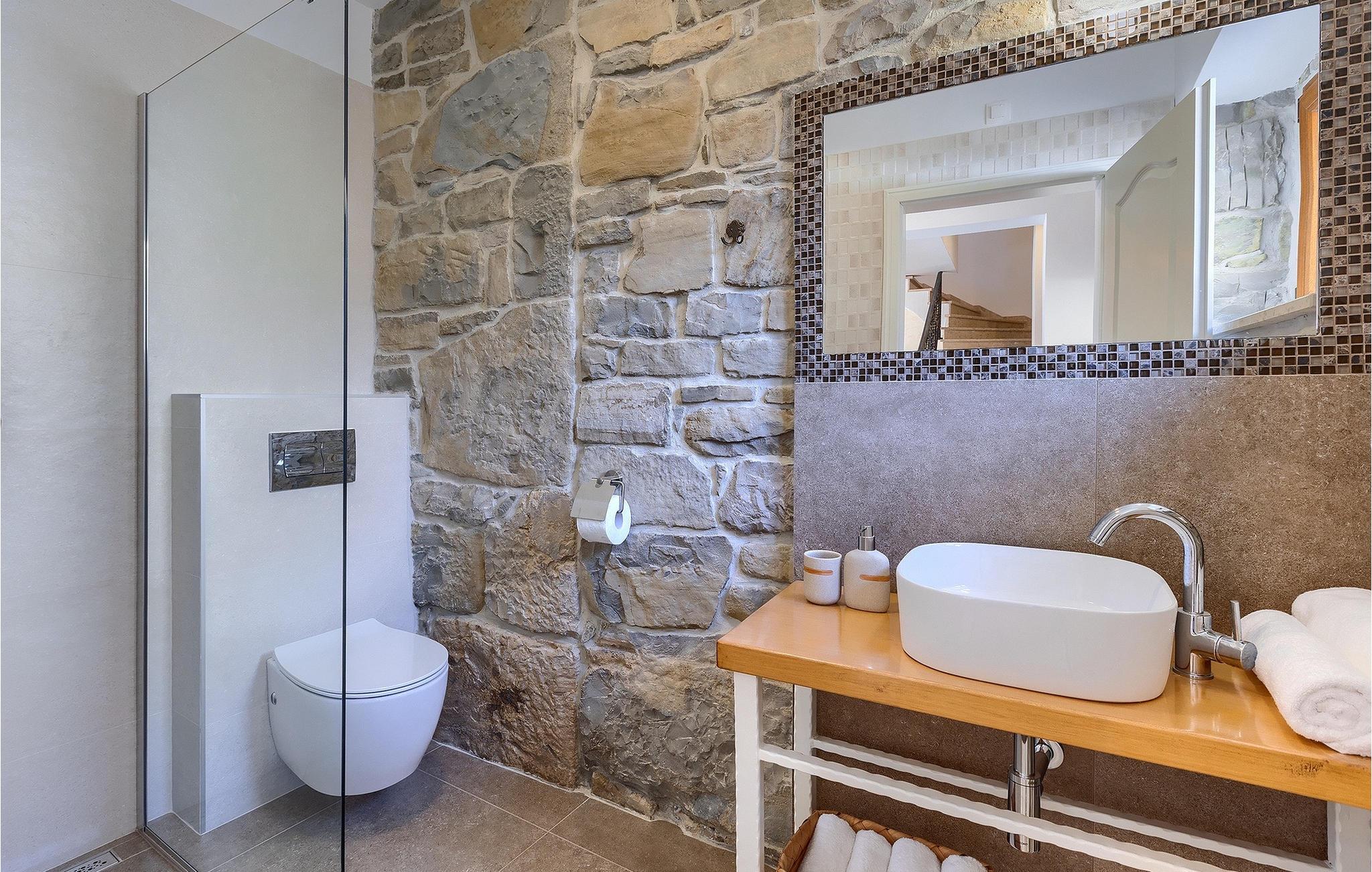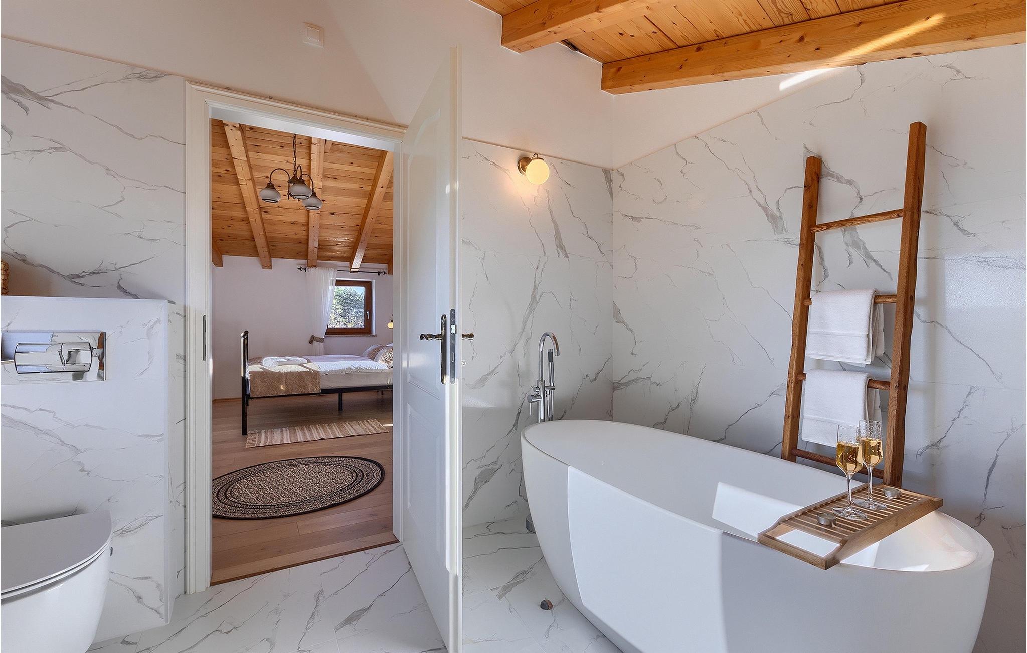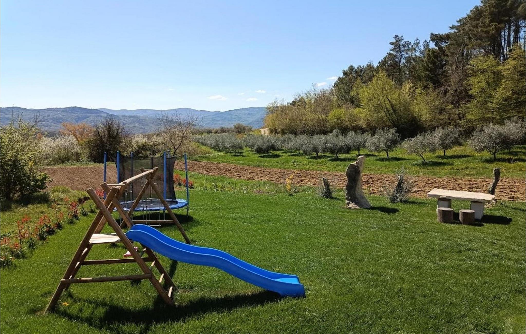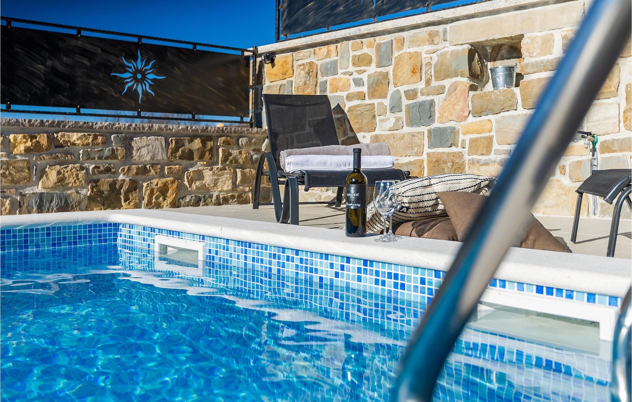 Villa Poji er en charmerende villa i den lille landsby Marceneško polje i Buzet kommune. Villaen er fuldstændig restaureret og vil få dig til at føle dig hjemme. Med i alt 215 kvadratmeter boligareal og 3 nænsomt indrettede soveværelser kan den rumme op til 6+2 personer. Stueetagen af villaen består af en meget lys og luftig stue og spisestue, et fuldt udstyret køkken og et soveværelse med eget badeværelse. Ovenpå finder du yderligere to soveværelser. Det store soveværelse med dobbeltseng har eget badeværelse med badekar, mens det andet soveværelse har to enkeltsenge og også har eget badeværelse med bruser. Fra opholdsrummet har I direkte adgang til den overdækkede udendørs spiseplads, hvor I kan nyde en hyggelig middag med familien og en storslået udsigt over omgivelserne. Kun få skridt væk ligger den indbydende private pool, det perfekte sted at forfriske dig selv eller slappe af på de komfortable liggestole. I slutningen af dagen skal du lade alle dine bekymringer ligge i spa-området og slappe af i jacuzzien og saunaen. Cykler er også til din rådighed for at udforske og opdage det bredere område. Hvis du leder efter en rolig og afslappende ferie, er Villa Poji det rigtige valg for dig. Gå ikke glip af denne mulighed og bestil Villa Poji lige nu! Familievillaen Poji ligger i en lille landsby i Buzet kommune i det centrale Istrien. Villaen er omgivet af olivenlunde og kun få naboer. Hvis du leder efter en afslappende og fredelig ferie, er denne villa det perfekte sted. Buzet er den første større by, hvor du kan købe dagligvarer. Hvis du leder efter restauranter, er der nogle af de bedste restauranter i Istrien i området, der serverer traditionelle retter som hjemmelavet pasta med trøfler, istrisk oksekød, alt sammen toppet med et glas af det bedste Malvasia. Det centrale Istrien er kendt for sine mange cykel- og vandrestier, hvor du kan nyde naturen og opdage små bakkebyer som Buzet, Motovun og Groznjan. For kulturelskere anbefaler vi et besøg i byen Pula med dets amfiteater og Porec med Eufrazier-basilikaen. Hvis du vil tilbringe din ferie på stranden, er Novigrad den første strand, men gå ikke glip af at opdage mange andre skjulte bugter og strande i Istrien.