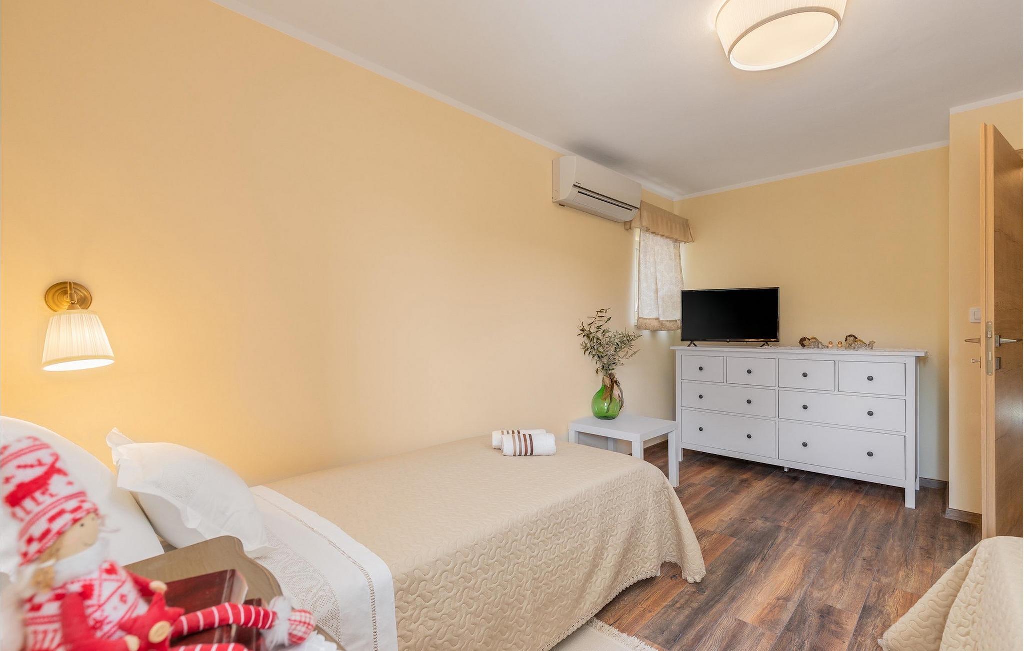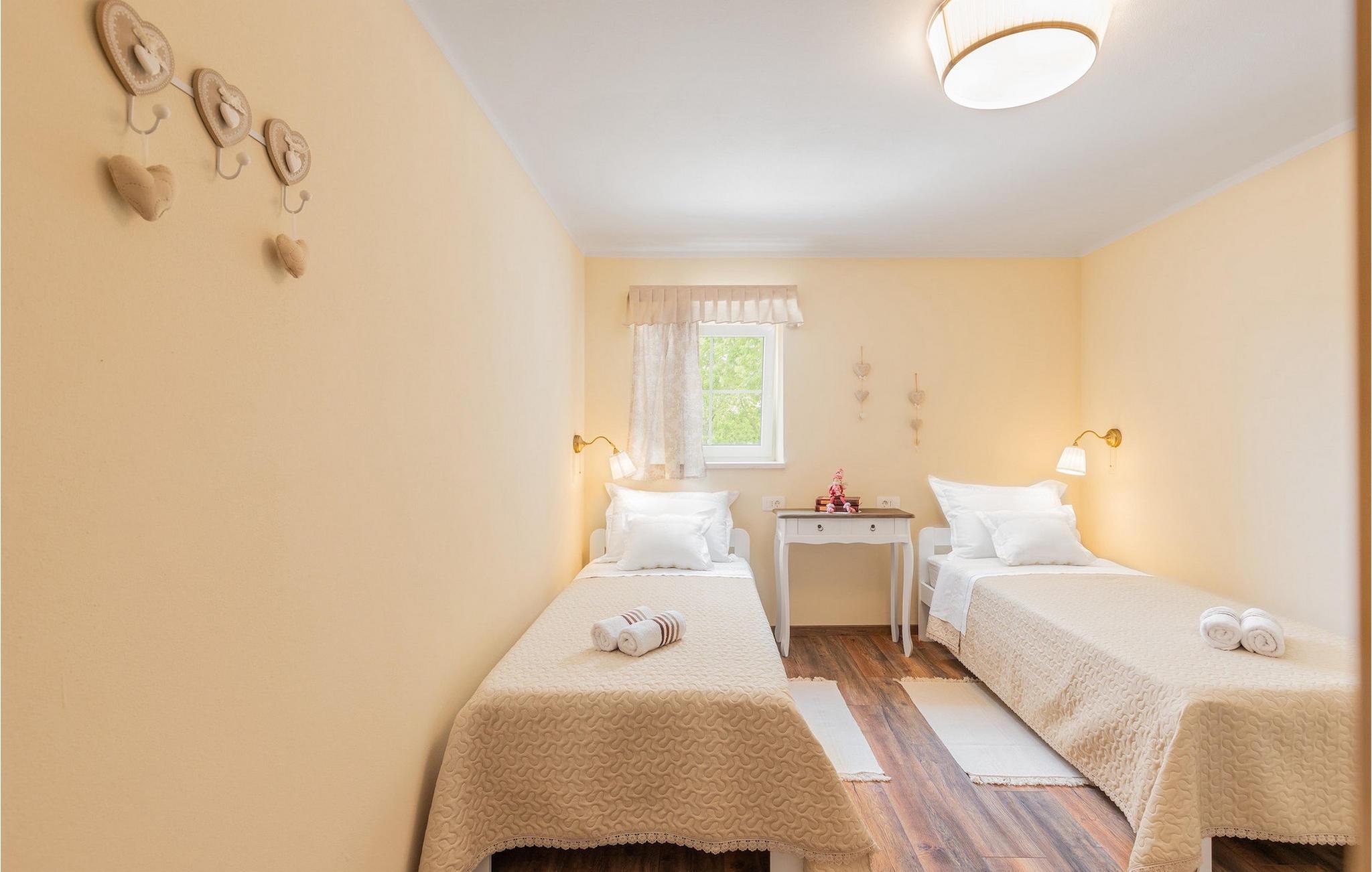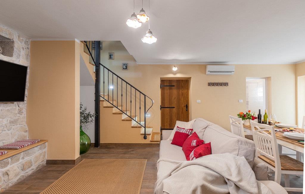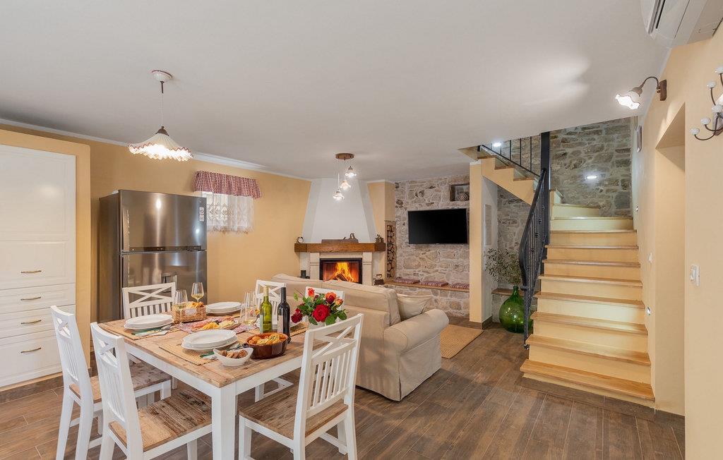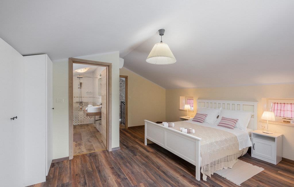Den smukke sten Villa Casa di nonno Giovanni er det perfekte valg til en afslappende ferie væk fra byens stress og jag i et autentisk istrisk miljø. Villaen er velegnet til ferie med familie, venner og kæledyr. Start din ferie i den forfriskende 32 m2 store swimmingpool og nyd at solbade på de elegante liggestole ved poolen. Blandt de aktiviteter, der tilbydes i villaen, er en trampolin, for yngre og ældre, badminton og dart. En kulgrill og en udendørs overdækket spisestue til 8 personer står til din rådighed. Velkommen til slutningen af dagen i den udendørs jacuzzi under stjernehimlen. Selvom den typiske istriske sten giver et indtryk af kulde udefra, føles det inde i villaen varmt og hyggeligt, et hjem-hjemmefra. I stueetagen er der et fuldt udstyret køkken, en spisestue med 8 siddepladser, en stue og et badeværelse. På første sal er der 2 soveværelser og et separat badeværelse. Det første soveværelse med udgang til altanen er udstyret med en dobbeltseng, mens det andet soveværelse har en dobbeltseng. På villaens anden sal er der et tredje soveværelse med eget badeværelse og en altan, hvor man kan nyde morgenen med en kop kaffe og en smuk udsigt over naturen. Alle soveværelser har aircondition og tv. Skab uforglemmelige minder med dine kære i den oprindelige Villa Casa di nonno Giovanni. Buzet er en by i Istrien beliggende i Mirna-flodens dal langs grænsen til Slovenien. Lær denne by med trøfler at kende med sin århundreder gamle arkitektur og fortryllende udsigt. Istriske specialiteter med trøfler, olivenolie, hjemmelavet ost og prosciutto, er smagsvarianter, der huskes i Buzet. Udover det gastronomiske tilbud byder Buzet også på talrige festivaler og sportsbegivenheder og er en generøs vært. Hvis du er fan af aktiv ferie, kan du udforske dette område på adskillige vandre- og cykelstier. Vi anbefaler endagsture til Hum, den mindste by i verden, Roc, Sovinjak og Vrh. Besøg derefter Cicarija, et kuperet plateau langs grænsen til Slovenien og en del af Ucka Naturpark, som inviterer dig til at opdage alle de skjulte hjørner af denne uberørte natur.