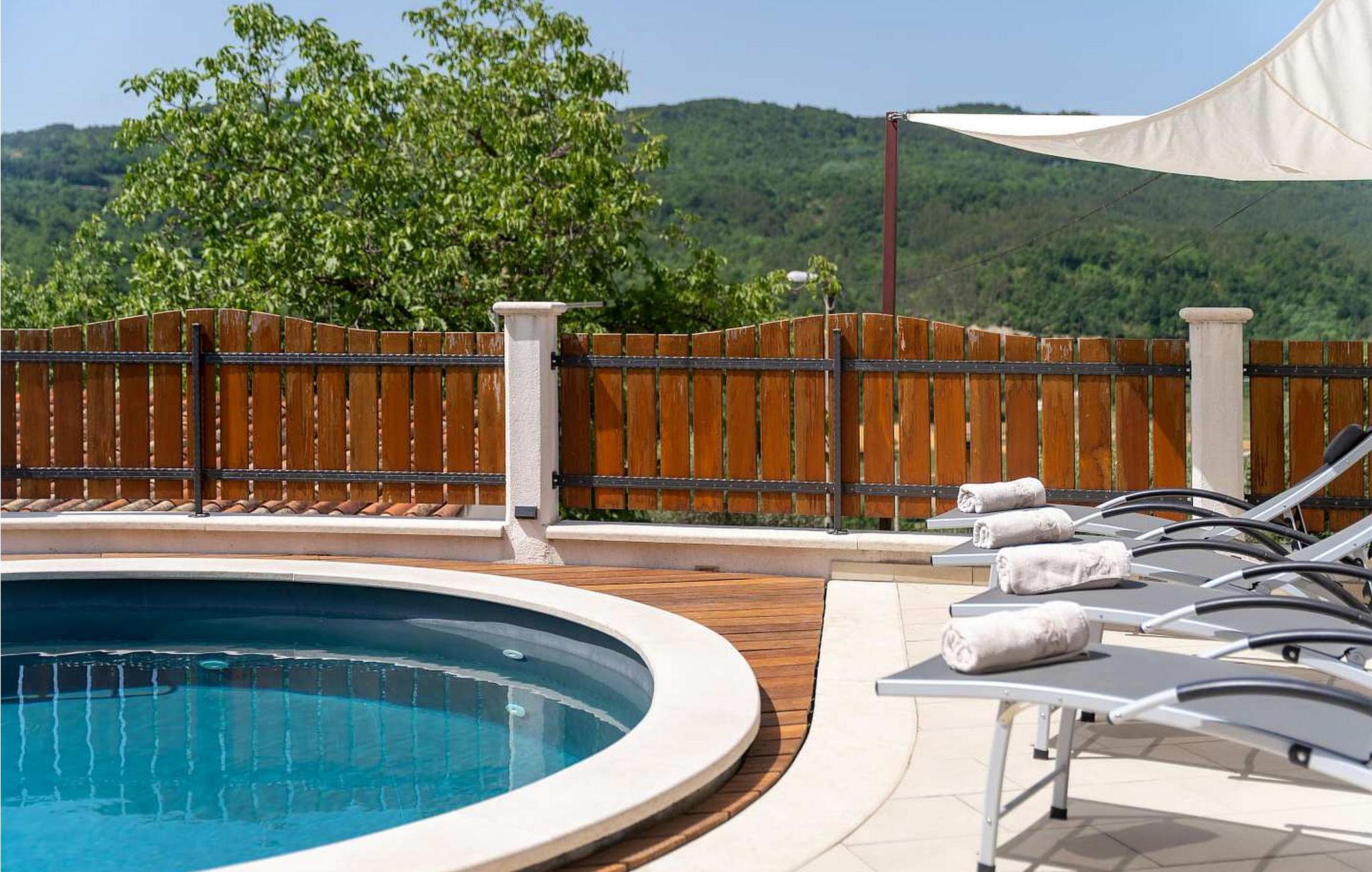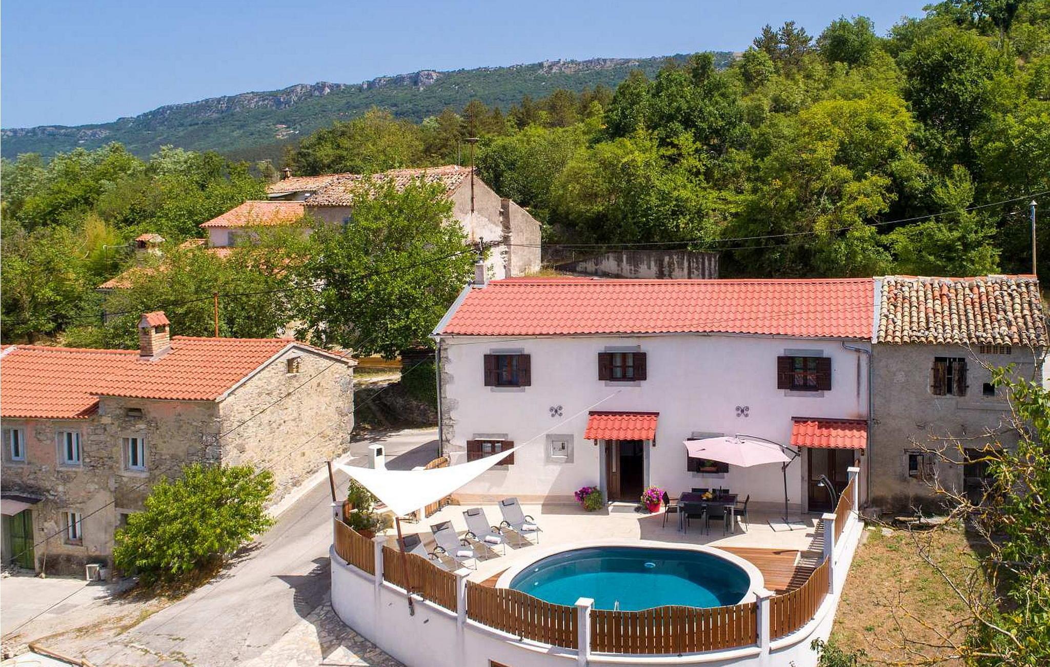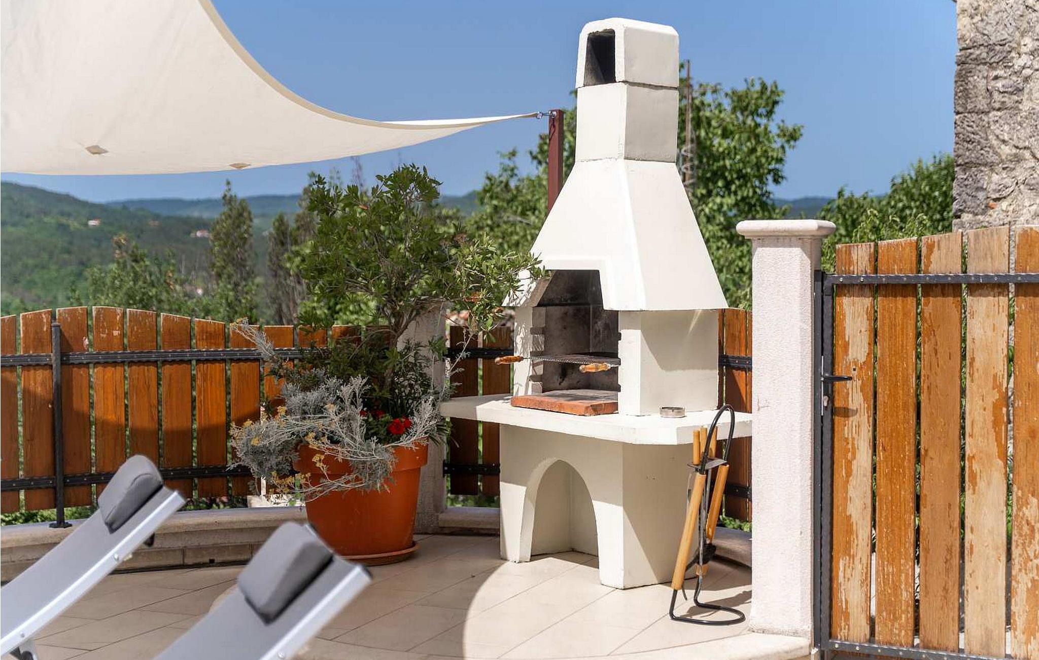 Velkommen til Casa Bepo Bepa, et charmerende istrisk stenhus, der er blevet nænsomt renoveret og tilbyder en perfekt blanding af historisk charme og moderne komfort. Beliggende i den rolige landsby Prascari nær Buzet i det centrale Istrien, er denne villa et fredeligt tilflugtssted med en betagende udsigt over Mirna-dalen fra terrassen. Huset er oprindeligt bygget i 1890 og blev totalrenoveret i 2015. Det har indhegnet grund med en glitrende pool, en hyggelig terrasse med opholdsområde og en grill til lækre måltider under åben himmel. Der er også to parkeringspladser til rådighed for gæster. Villaen ligger kun 2,5 km fra en lokal restaurant, hvor du kan nyde smagen af det istriske køkken, og 42 km fra kysten, hvilket gør den til en ideel base for at udforske regionen. Mens du bor på Casa Bepo Bepa, vil du måske tage en tur til Buzet, ofte omtalt som "Trøflernes by". Det er en charmerende by i det centrale Istrien kendt for sin maleriske gamle bydel og rige tradition for trøffeljagt. Dette charmerende feriehus er det perfekte tilflugtssted for alle, der ønsker at opleve den autentiske istriske livsstil. Bemærk venligst, at denne ejendom ikke accepterer ungdomsgrupper eller polterabender. En ungdomsgruppe på denne ejendom består af personer på 26 år eller derunder.