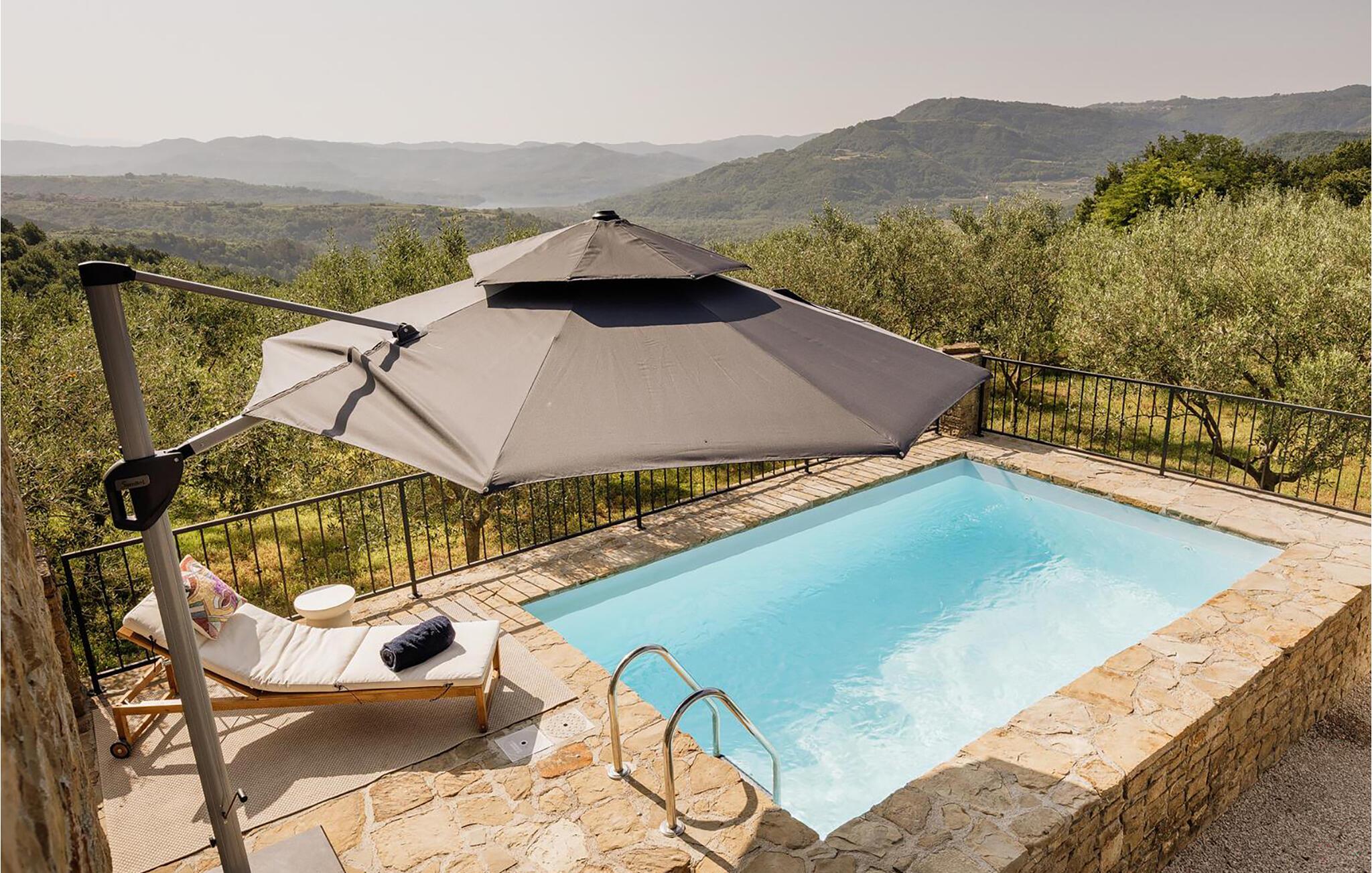 Velkommen til Horizon 241, et charmerende stenhus med en betagende udsigt over Butoniga-søen og den maleriske by Motovun. Horizon 241 ligger i den rolige landsby Klarici og blander traditionel istrisk arkitektur med moderne komfort. Hiža Luja, der blev bygget i 2007 og omhyggeligt renoveret i 2023, tilbyder et fredeligt tilflugtssted, hvor I kan slappe af og nyde de fantastiske omgivelser. Dette feriehus, der ligger på sin egen private grund, har en hyggelig swimmingpool, en grill og et spisebord, der er perfekt til måltider under åben himmel. For dem, der ønsker at udforske, er der to elektriske cykler tilgængelige mod et ekstra gebyr, så I kan opdage Istriens skønhed i jeres eget tempo. Ejendommen tilbyder også parkering for jeres bekvemmelighed. Uanset om I slapper af ved poolen, nyder panoramaudsigten fra balkonen eller cykler gennem det naturskønne landskab, er Horizon 241 en skøn oase til dem, der søger fred og skønhed i Istrien. Bemærk venligst, at denne ejendom ikke accepterer ungdomsgrupper eller polterabender. En ungdomsgruppe på denne ejendom består af personer på 26 år eller derunder.