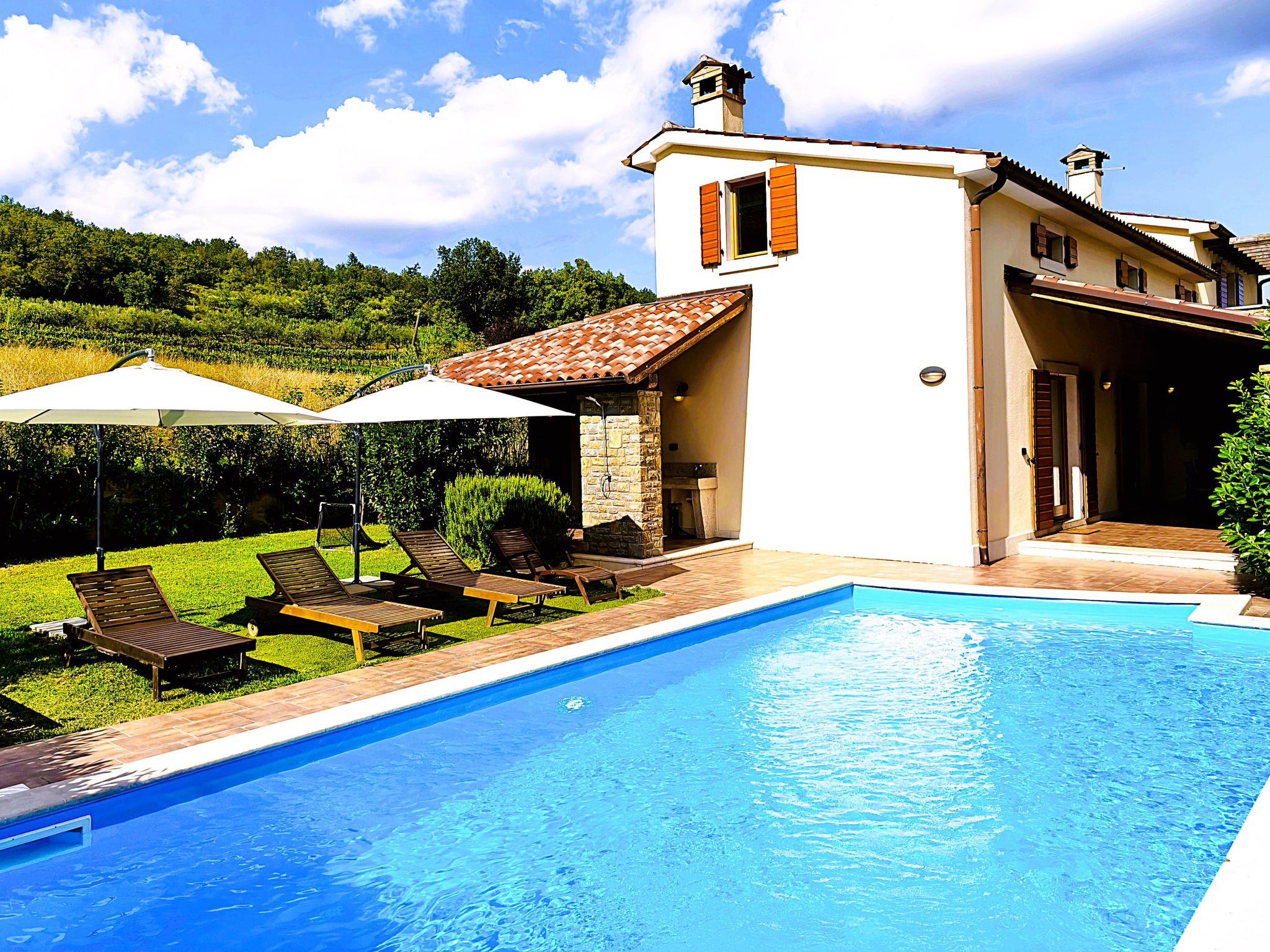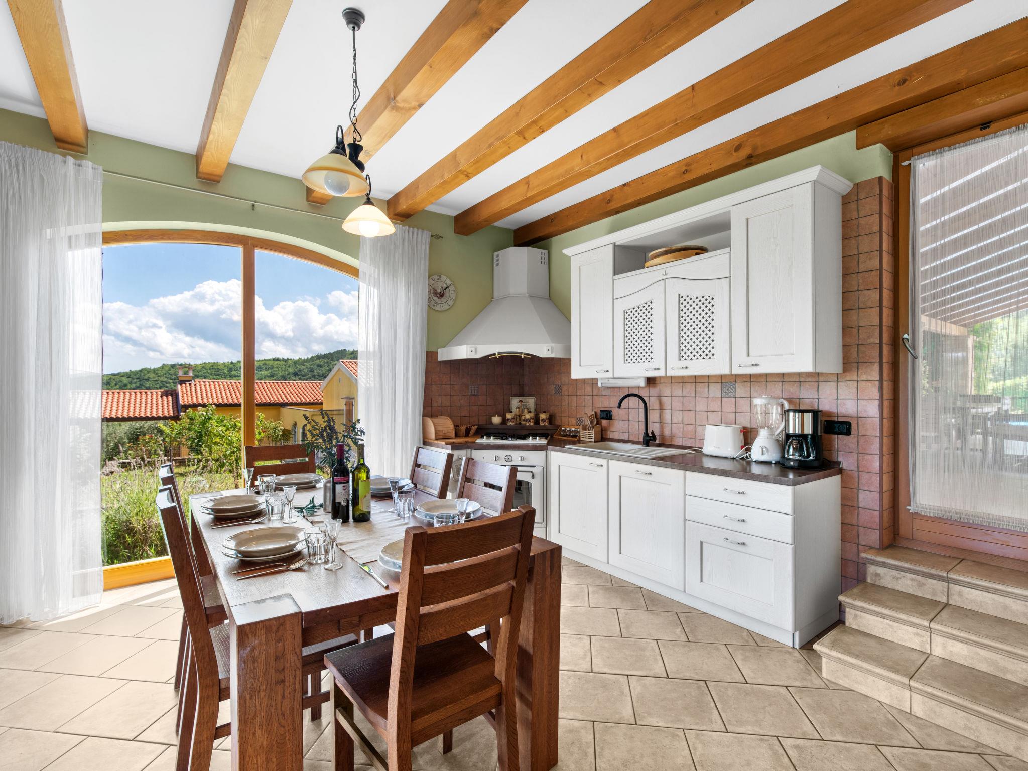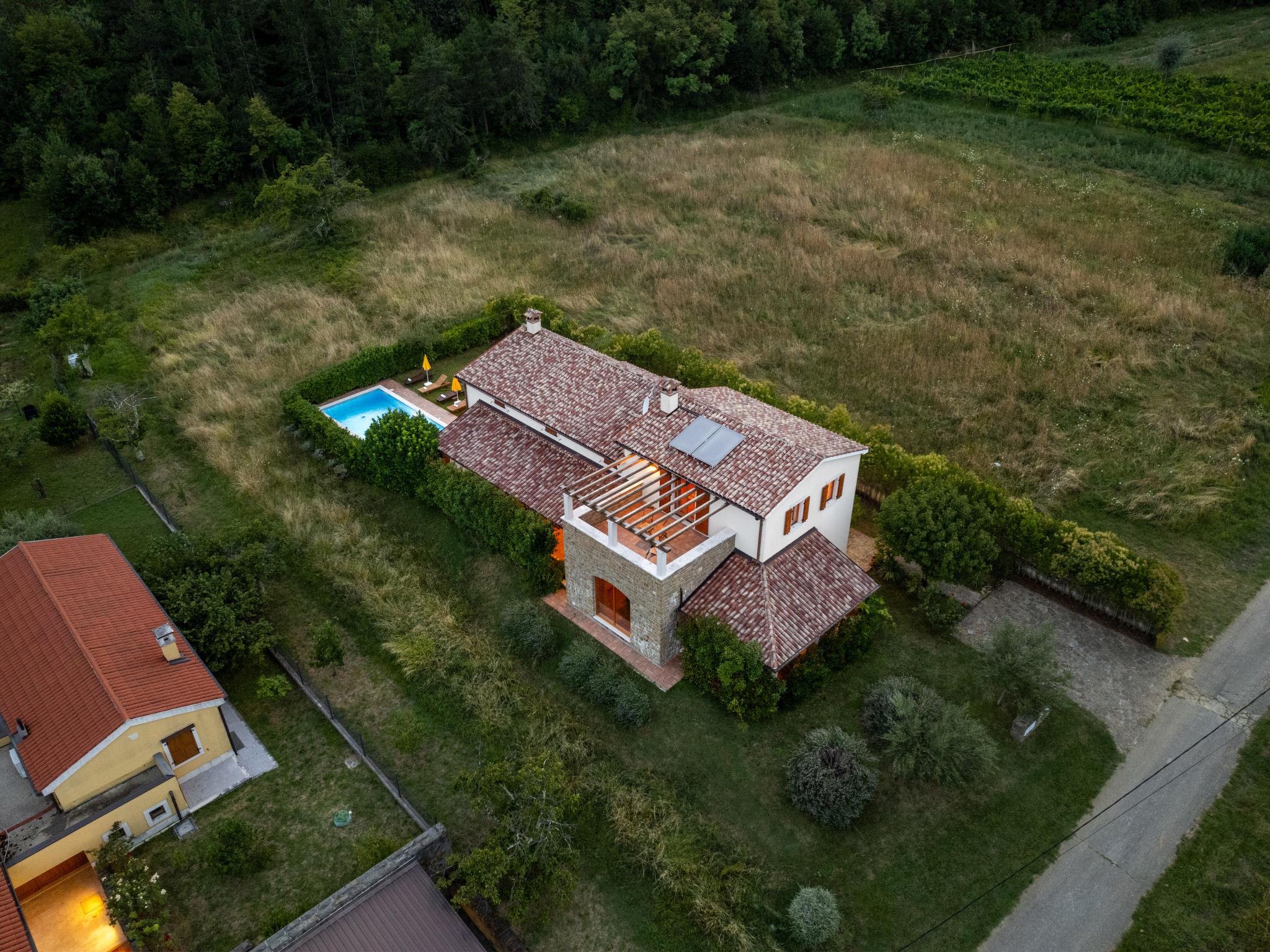 Beautiful, rustic villa "Dol", 2 storeys. In the hamlet Dol 10 km from the centre of Buzet, 15 km from the centre of Motovun, in a quiet position, 39 km from the sea, 40 km from the beach, in the countryside. Private: property 1'000 m2, swimming pool (8 x 4 m, 32 m2, depth 165 cm, seasonal availability: 01.May. - 01.Oct.) with internal staircase. Outdoor shower, hot tub, badminton, garden furniture, barbecue, pool maintenance by the owner/gardener. In the house: internet access, sauna, fitness room, hot tub (all included), washing machine. Shop 10 km, supermarket 10 km, restaurant 7 km, bus stop 10 km, railway station 17 km. Walking paths from the house, cycle lane 50 m. The owner does not accept any groups. The owner does not accept any youth groups.