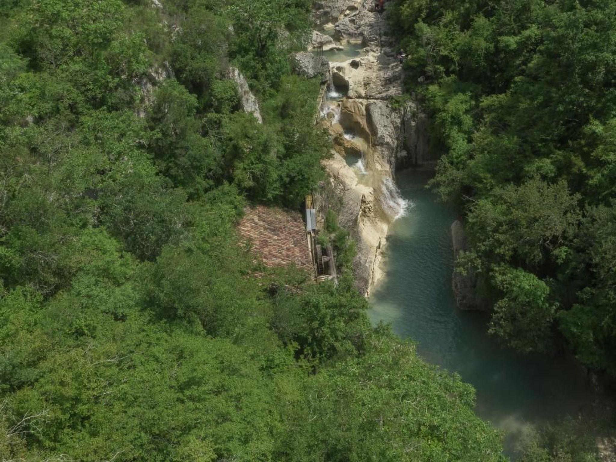 Stepping outside, you're greeted with well-preserved courtyards, outer staircases, arched passages, and picturesque chimneys that evoke a sense of time standing still. The garden is adorned with furniture, a grill for those delightful BBQ sessions, and playground equipment for younger guests. Amongst these outdoor features, you'll also find a splendid swimming pool shared for communal use, promising refreshing dips under the open sky. The River Mirna's gentle flow and the scenic waterfalls create a tranquil backdrop for relaxation and leisure.