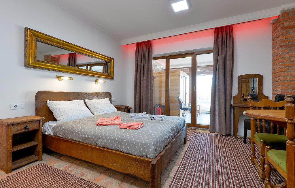 Dette skønne og rustikt indrettede feriehus ligger på en lille høj i Zelezna Gora. Det er på tre etager og stueetagen og første sal råder hver over en indgang. Foran huset er der desuden en swimmingpool med en lille plæne og grill, hvor I kan tilberede jeres måltider. I stueetagen er der soveværelse, badeværelse, aktivitetsrum og en sauna. En stejl trappe leder fra første sal til soveværelserne unde taget hvor den mindste loftshøjde er 100 cm.