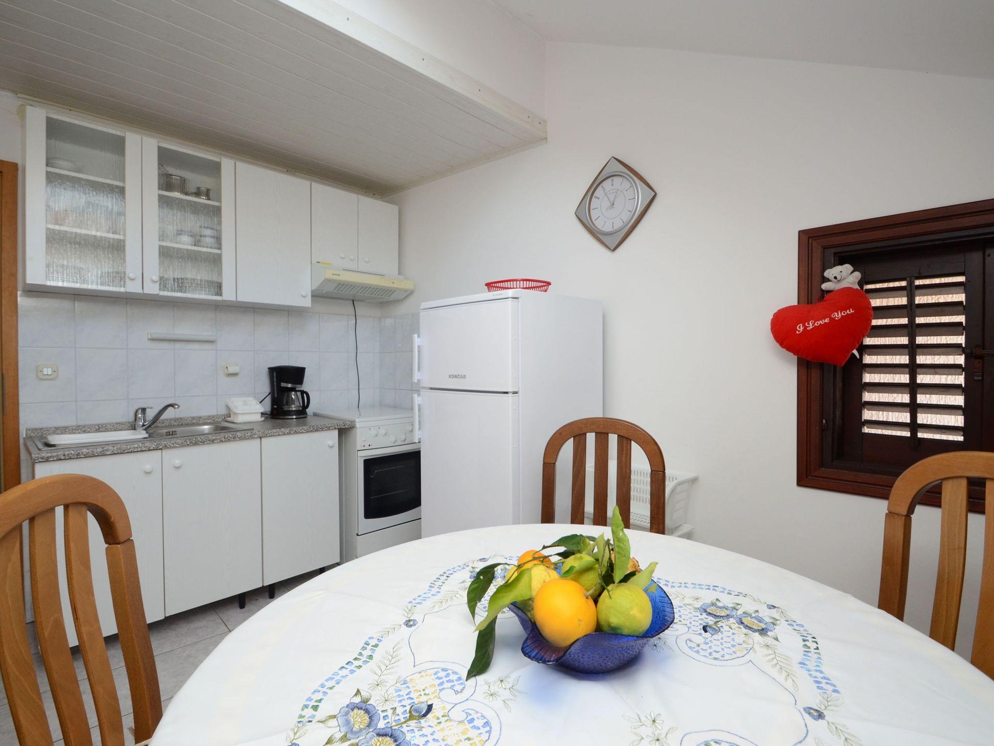 Ferienwohnung bietet Platz für 5 Gäste. Die Betten sind in Schlafzimmern, die es 2 gibt, innerhalb einer Gesamtfläche von 55m2, angeordnet. Die Gäste haben eine eigene Terrasse zur Verfügung, auf der sie in warmen Sommernächten genießen können. Das Apartment bietet Meerblick. Es ist erlaubt, Speisen auf dem Gemeinschafts-Grill vorzubereiten. IM PREIS INBEGRIFFEN: Kurtaxe, Endreinigung, Klimatisierung, Parkplatz, Internet, Bootsanlegeplatz, Kinderbett, Bügeleisen, Föhn. VERBINDLICHE ZUSÄTZLICHE KOSTEN: Aufzahlung für Kurzaufenthalte (prozentualer Zuschlag pro Nächtigungsanzahl: 30% - 1, 20% - 2, 10% - 3). UNVERBINDLICHE ZUSÄTZLICHE KOSTEN: Wäschewaschen (10,00 € Waschen). Die Verfügbarkeit zusätzlicher Dienstleistungen in Ihrem reservierten Termin und die Preise derselben (falls nicht aufgeführt) müssen im Voraus überprüft werden. Zusätzliche Dienstleistungen die in der Zahlungsaufforderung nicht aufgeführt sind werden direkt beim Vermieter bezahlt, angenommen der Gast nutzt auch diese. Ermäßigung auf den Grundpreis: Gratistag 14=13 (bei einem Aufenthalt von 14 Tagen oder mehr erhalten Sie einen Gratistag für den Aufenthalt bis 31.12.26).