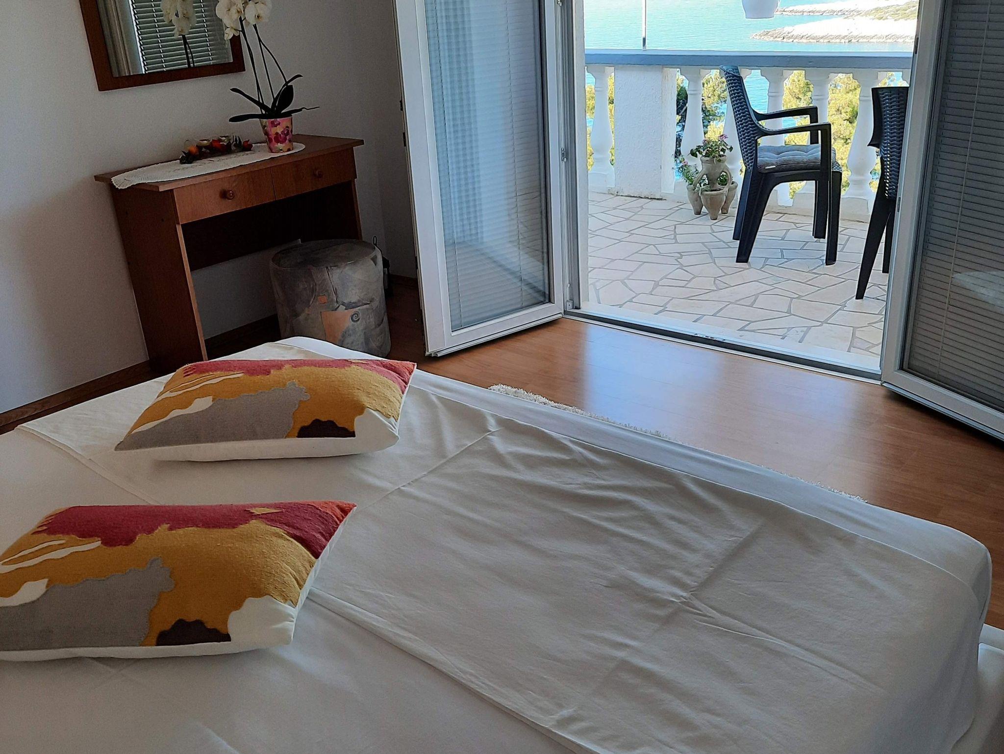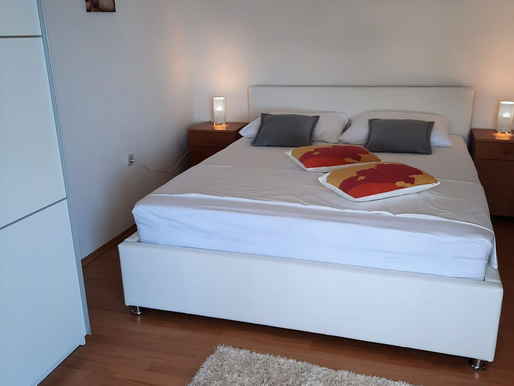 Ferienwohnung bietet Platz für 4 Gäste. Die Betten sind in Schlafzimmern, die es 2 gibt, innerhalb einer Gesamtfläche von 54m2, angeordnet. Die Gäste haben eine eigene Terrasse zur Verfügung, auf der sie in warmen Sommernächten genießen können. Das Apartment bietet Meerblick. Es ist erlaubt, Speisen auf dem Gemeinschafts-Grill vorzubereiten. IM PREIS INBEGRIFFEN: Kurtaxe, Endreinigung, Klimatisierung, Parkplatz, Internet, Bootsanlegeplatz, Kinderbett, Bügeleisen, Föhn. VERBINDLICHE ZUSÄTZLICHE KOSTEN: Aufzahlung für Kurzaufenthalte (prozentualer Zuschlag pro Nächtigungsanzahl: 30% - 1, 20% - 2, 10% - 3). UNVERBINDLICHE ZUSÄTZLICHE KOSTEN: Wäschewaschen (10,00 € Waschen). Die Verfügbarkeit zusätzlicher Dienstleistungen in Ihrem reservierten Termin und die Preise derselben (falls nicht aufgeführt) müssen im Voraus überprüft werden. Zusätzliche Dienstleistungen die in der Zahlungsaufforderung nicht aufgeführt sind werden direkt beim Vermieter bezahlt, angenommen der Gast nutzt auch diese. Ermäßigung auf den Grundpreis: Gratistag 14=13 (bei einem Aufenthalt von 14 Tagen oder mehr erhalten Sie einen Gratistag für den Aufenthalt bis 31.12.26).