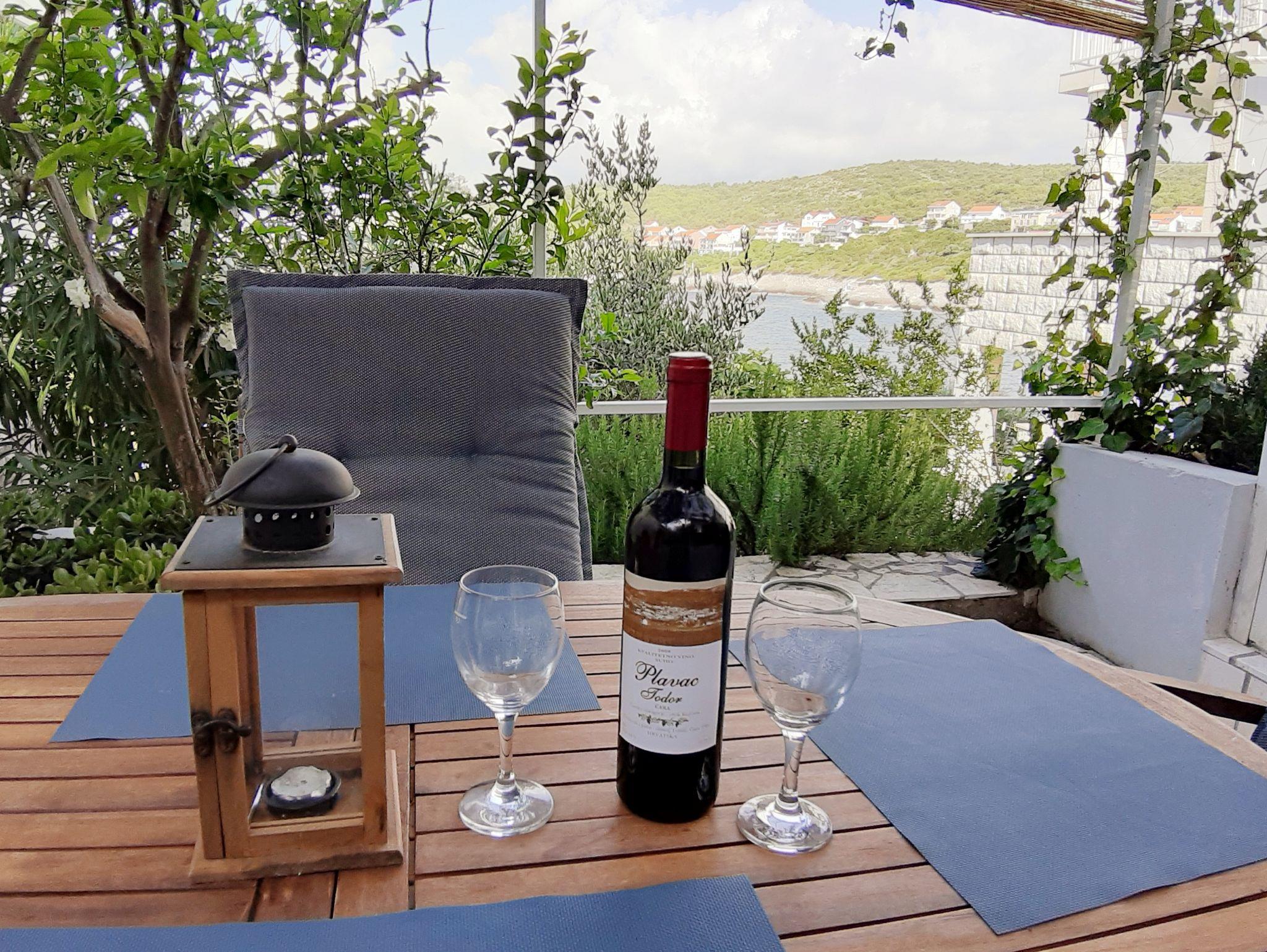 Ferienwohnung bietet Platz für 4 Gäste. Die Betten sind in Schlafzimmern, die es 2 gibt, innerhalb einer Gesamtfläche von 48m2, angeordnet. Die Gäste haben eine eigene Terrasse zur Verfügung, auf der sie in warmen Sommernächten genießen können. Das Apartment bietet Meerblick. Für vollen Genuss und Entspannung gibt es einen privaten Grill für Gäste dieser Unterkunft. IM PREIS INBEGRIFFEN: Kurtaxe, Endreinigung, Klimatisierung, Parkplatz, Internet, Bootsanlegeplatz, Bügeleisen, Bügelbrett, Föhn, Sonnenschirm, Liegestühle. VERBINDLICHE ZUSÄTZLICHE KOSTEN: Aufzahlung für Kurzaufenthalte (prozentualer Zuschlag pro Nächtigungsanzahl: 30% - 1, 20% - 2, 10% - 3). Die Verfügbarkeit zusätzlicher Dienstleistungen in Ihrem reservierten Termin und die Preise derselben (falls nicht aufgeführt) müssen im Voraus überprüft werden. Zusätzliche Dienstleistungen die in der Zahlungsaufforderung nicht aufgeführt sind werden direkt beim Vermieter bezahlt, angenommen der Gast nutzt auch diese.