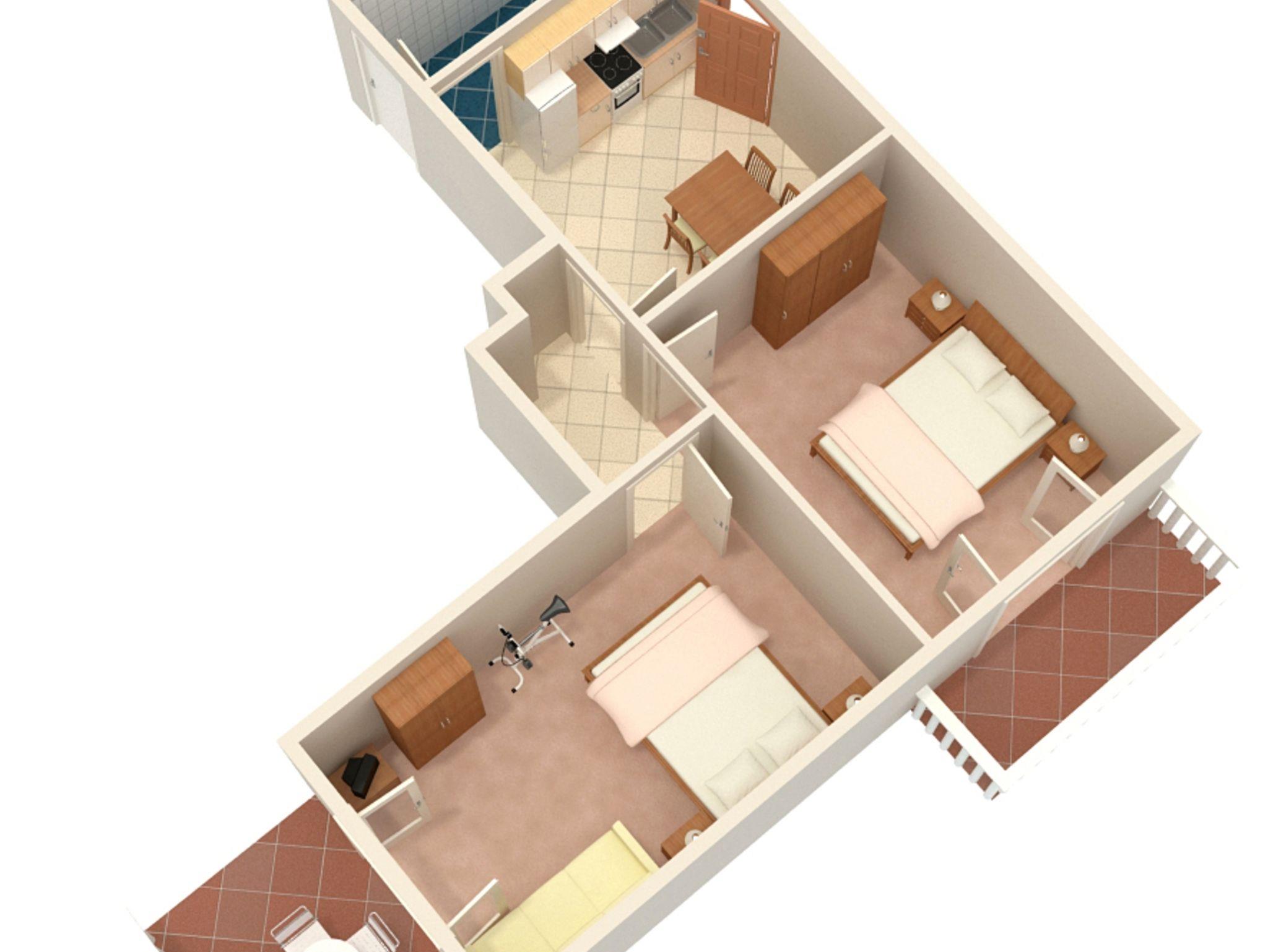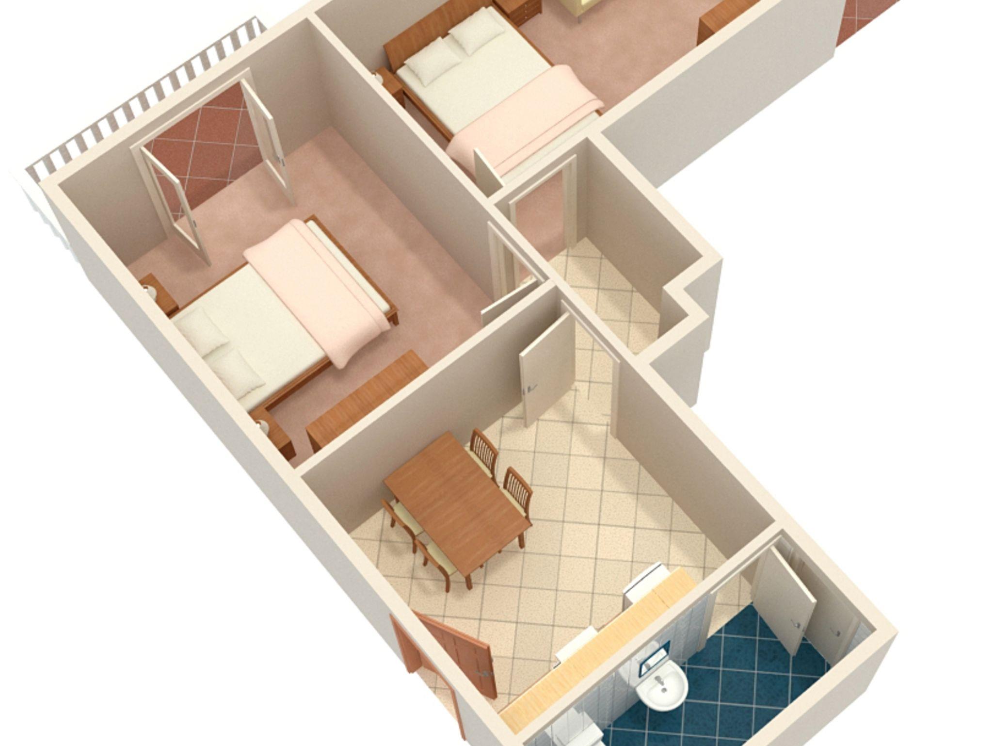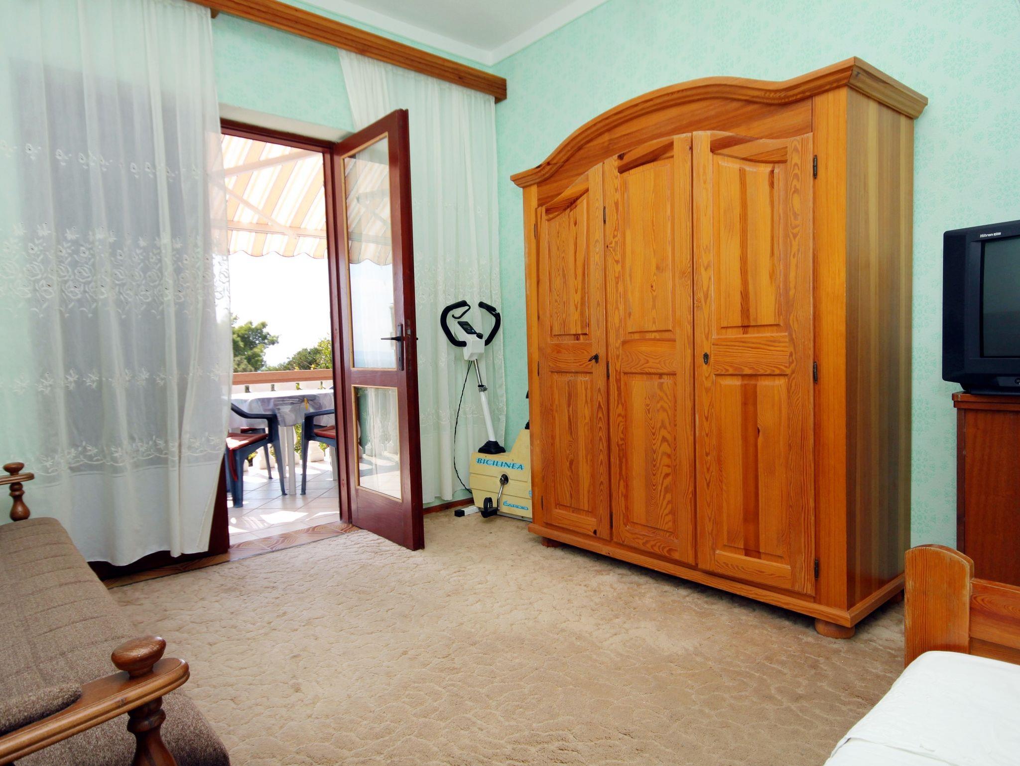 Ferienwohnung bietet Platz für 5 Gäste. Die Betten sind in Schlafzimmern, die es 2 gibt, innerhalb einer Gesamtfläche von 46m2, angeordnet. Die Gäste haben eine eigene Terrasse zur Verfügung, auf der sie in warmen Sommernächten genießen können. Das Apartment bietet Meerblick. Es ist erlaubt, Speisen auf dem Gemeinschafts-Grill vorzubereiten. IM PREIS INBEGRIFFEN: Kurtaxe, Endreinigung, Klimatisierung, Parkplatz, Internet, Kinderbett, Bügeleisen, Bügelbrett, Föhn. VERBINDLICHE ZUSÄTZLICHE KOSTEN: Aufzahlung für Kurzaufenthalte (prozentualer Zuschlag pro Nächtigungsanzahl: 30% - 1, 20% - 2, 10% - 3). Die Verfügbarkeit zusätzlicher Dienstleistungen in Ihrem reservierten Termin und die Preise derselben (falls nicht aufgeführt) müssen im Voraus überprüft werden. Zusätzliche Dienstleistungen die in der Zahlungsaufforderung nicht aufgeführt sind werden direkt beim Vermieter bezahlt, angenommen der Gast nutzt auch diese.