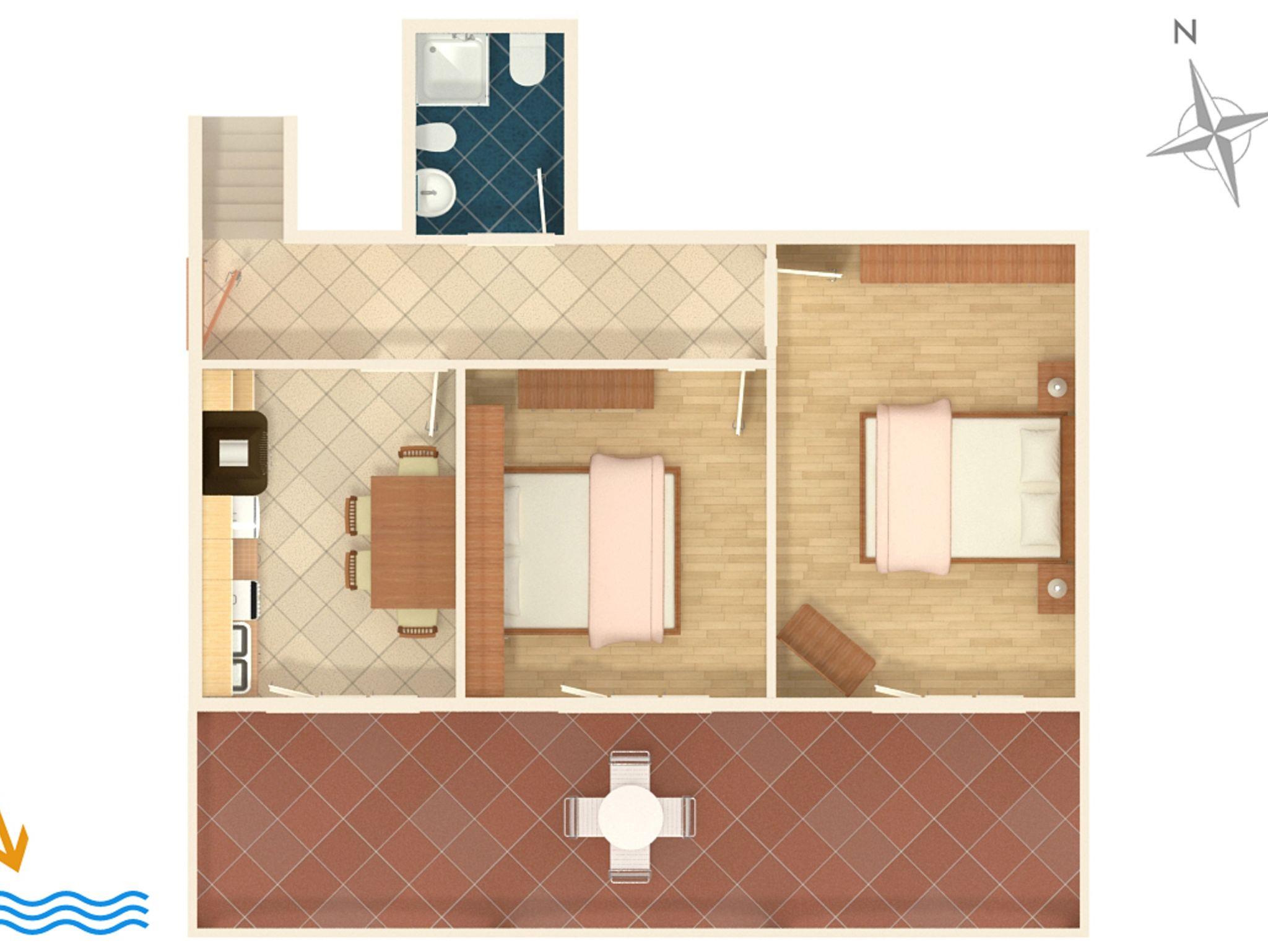 Ferienwohnung bietet Platz für 4 Gäste. Die Betten sind in Schlafzimmern, die es 2 gibt, innerhalb einer Gesamtfläche von 49m2, angeordnet. Die Gäste haben eine eigene Terrasse zur Verfügung, auf der sie in warmen Sommernächten genießen können. Das Apartment bietet Meerblick. Es ist erlaubt, Speisen auf dem Gemeinschafts-Grill vorzubereiten. IM PREIS INBEGRIFFEN: Kurtaxe, Endreinigung, Klimatisierung, Parkplatz, Internet, Kinderbett, Bügeleisen, Bügelbrett, Föhn. VERBINDLICHE ZUSÄTZLICHE KOSTEN: Aufzahlung für Kurzaufenthalte (prozentualer Zuschlag pro Nächtigungsanzahl: 30% - 1, 20% - 2, 10% - 3). Die Verfügbarkeit zusätzlicher Dienstleistungen in Ihrem reservierten Termin und die Preise derselben (falls nicht aufgeführt) müssen im Voraus überprüft werden. Zusätzliche Dienstleistungen die in der Zahlungsaufforderung nicht aufgeführt sind werden direkt beim Vermieter bezahlt, angenommen der Gast nutzt auch diese.