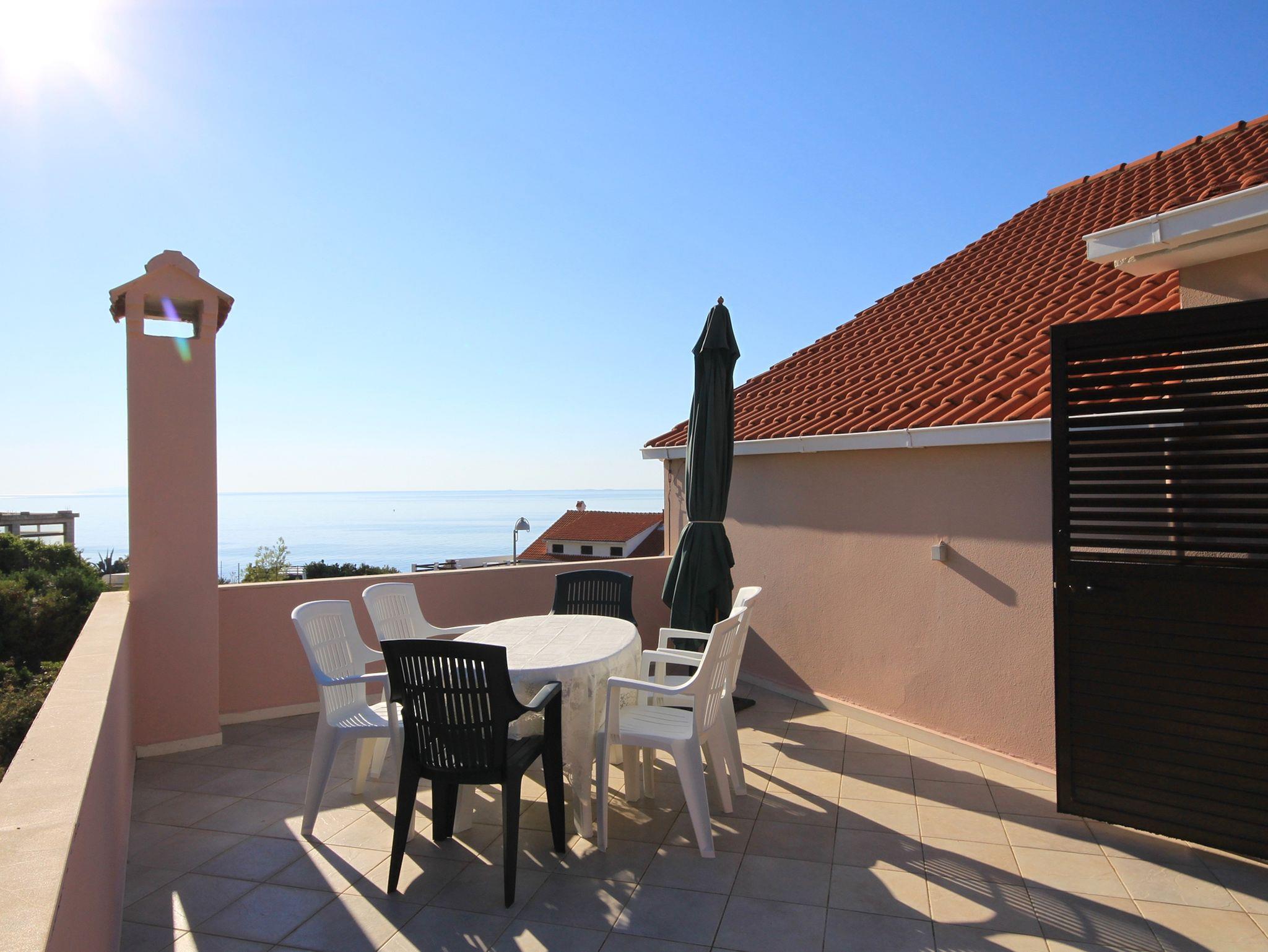 Ferienwohnung bietet Platz für 6 Gäste. Die Betten sind in Schlafzimmern, die es 2 gibt, und in Wohnzimmer, innerhalb einer Gesamtfläche von 64m2, angeordnet. Die Gäste haben eine eigene Terrasse zur Verfügung, auf der sie in warmen Sommernächten genießen können. Das Apartment bietet Meerblick. Es ist erlaubt, Speisen auf dem Gemeinschafts-Grill vorzubereiten. IM PREIS INBEGRIFFEN: Kurtaxe, Endreinigung, Parkplatz, Internet, Wäschewaschen, Bügeleisen, Bügelbrett, Föhn, Sonnenschirm, Liegestühle. VERBINDLICHE ZUSÄTZLICHE KOSTEN: Aufzahlung für Kurzaufenthalte (prozentualer Zuschlag pro Nächtigungsanzahl: 30% - 1, 20% - 2, 10% - 3). Die Verfügbarkeit zusätzlicher Dienstleistungen in Ihrem reservierten Termin und die Preise derselben (falls nicht aufgeführt) müssen im Voraus überprüft werden. Zusätzliche Dienstleistungen die in der Zahlungsaufforderung nicht aufgeführt sind werden direkt beim Vermieter bezahlt, angenommen der Gast nutzt auch diese.