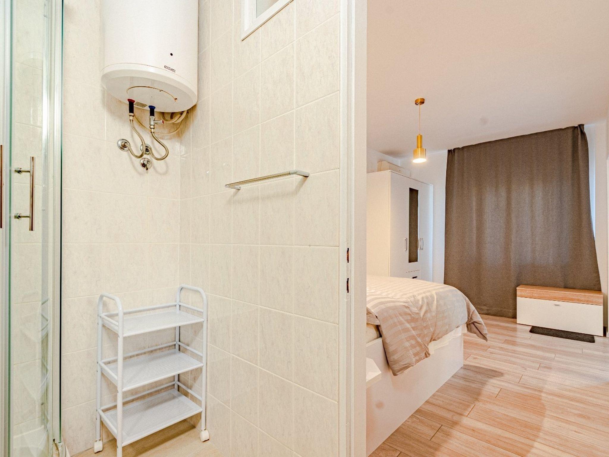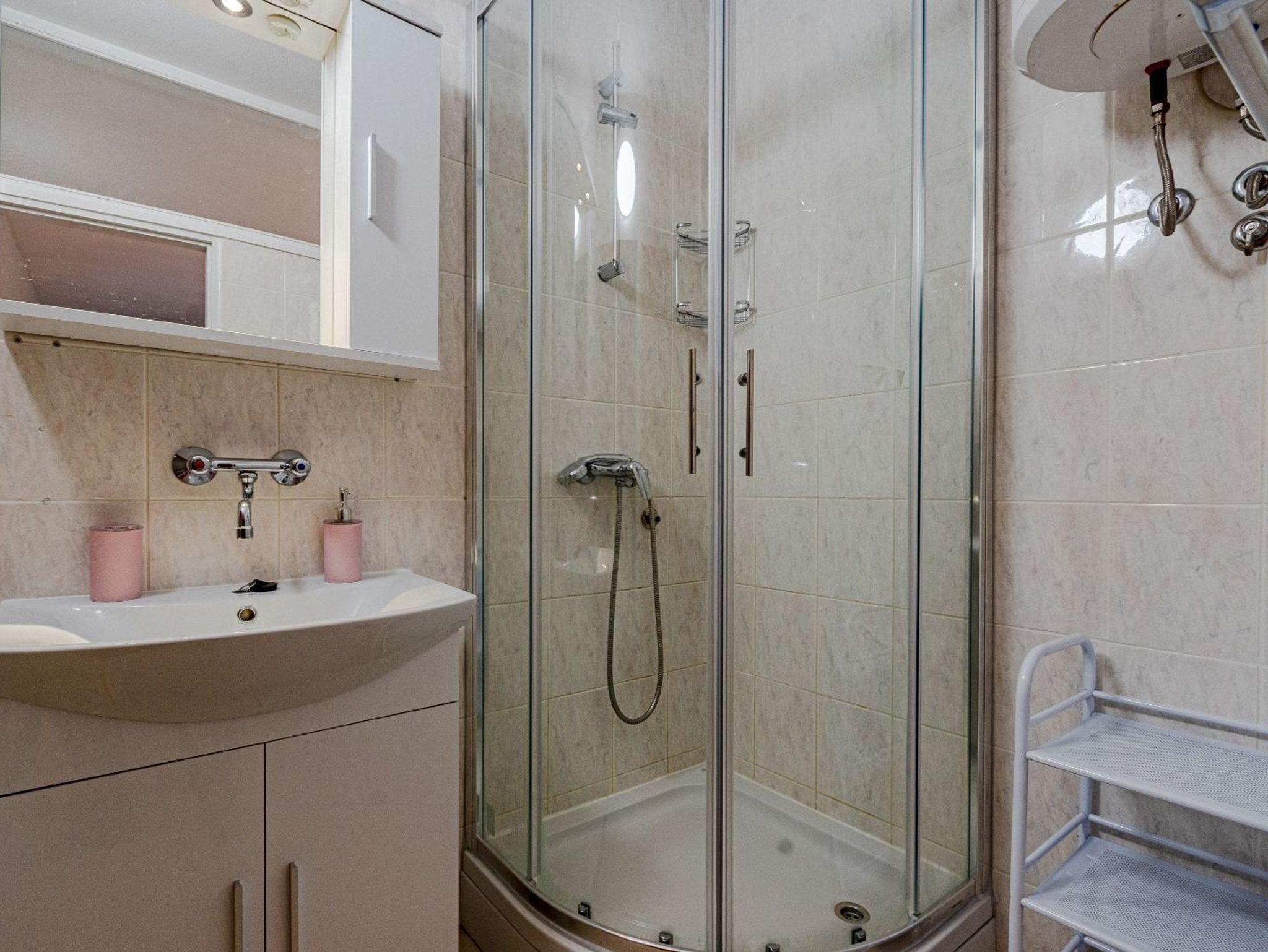 Studio bietet Platz für 2 Gäste. Die Betten sind in Schlafzimmern, die es 1 gibt, innerhalb einer Gesamtfläche von 30m2, angeordnet. Die Gäste haben eine eigene Terrasse zur Verfügung, auf der sie in warmen Sommernächten genießen können. Das Studio-Apartment bietet Meerblick. Es ist erlaubt, Speisen auf dem Gemeinschafts-Grill vorzubereiten. IM PREIS INBEGRIFFEN: Kurtaxe, Endreinigung, Klimatisierung, Parkplatz, Internet. VERBINDLICHE ZUSÄTZLICHE KOSTEN: Aufzahlung für Kurzaufenthalte (prozentualer Zuschlag pro Nächtigungsanzahl: 30% - 1, 20% - 2, 10% - 3). Die Verfügbarkeit zusätzlicher Dienstleistungen in Ihrem reservierten Termin und die Preise derselben (falls nicht aufgeführt) müssen im Voraus überprüft werden. Zusätzliche Dienstleistungen die in der Zahlungsaufforderung nicht aufgeführt sind werden direkt beim Vermieter bezahlt, angenommen der Gast nutzt auch diese. Ermäßigung auf den Grundpreis: Gratistag 14=13 (bei einem Aufenthalt von 14 Tagen oder mehr erhalten Sie einen Gratistag für den Aufenthalt bis 31.12.26).