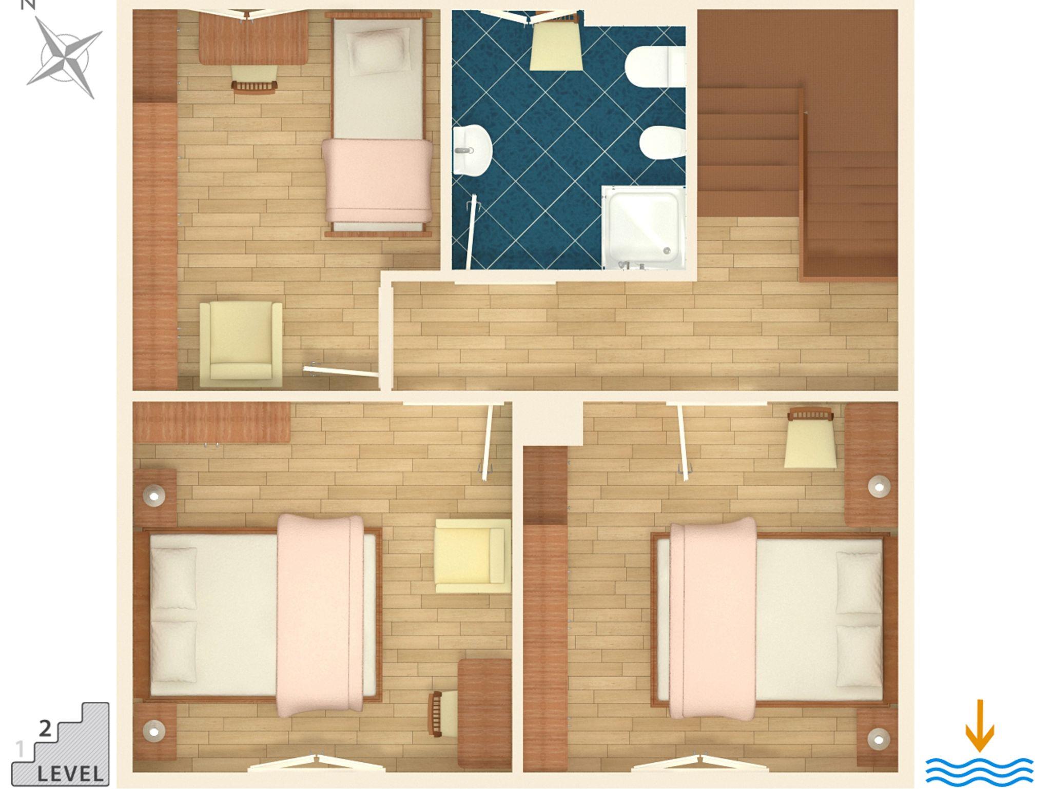 Haus bietet Platz für 5 Gäste. Die Betten sind in Schlafzimmern, die es 3 gibt, innerhalb einer Gesamtfläche von 96m2, angeordnet. Die Gäste haben eine eigene Terrasse zur Verfügung, auf der sie in warmen Sommernächten genießen können. Es ist erlaubt, Speisen auf dem Gemeinschafts-Grill vorzubereiten. In der gebuchten Unterkunftseinheit zahlt man am Ort ein Depositum ( der Preis ist an der Internetseite angeführt ). IM PREIS INBEGRIFFEN: Kurtaxe, Endreinigung, Klimatisierung, Internet, Kinderbett, Bügeleisen, Bügelbrett, Föhn, tragbarer Grill. VERBINDLICHE ZUSÄTZLICHE KOSTEN: Kaution (150,00 € Einmalzahlung). UNVERBINDLICHE ZUSÄTZLICHE KOSTEN: Zusatzbett (5,00 € pro Nacht). Die Verfügbarkeit zusätzlicher Dienstleistungen in Ihrem reservierten Termin und die Preise derselben (falls nicht aufgeführt) müssen im Voraus überprüft werden. Zusätzliche Dienstleistungen die in der Zahlungsaufforderung nicht aufgeführt sind werden direkt beim Vermieter bezahlt, angenommen der Gast nutzt auch diese. Ermäßigung auf den Grundpreis: Gratistag 14=13 (bei einem Aufenthalt von 14 Tagen oder mehr erhalten Sie einen Gratistag für den Aufenthalt bis 31.12.26).