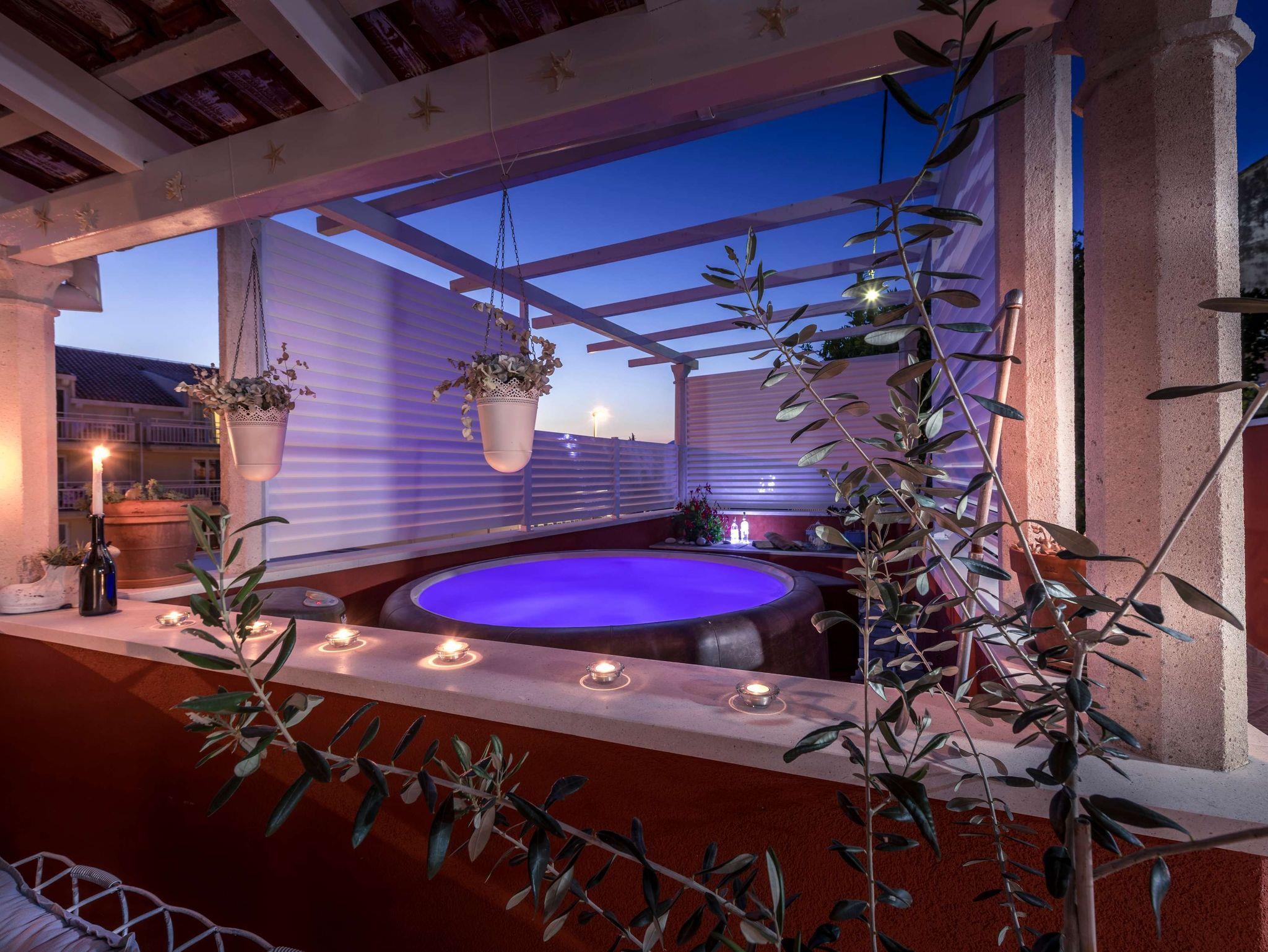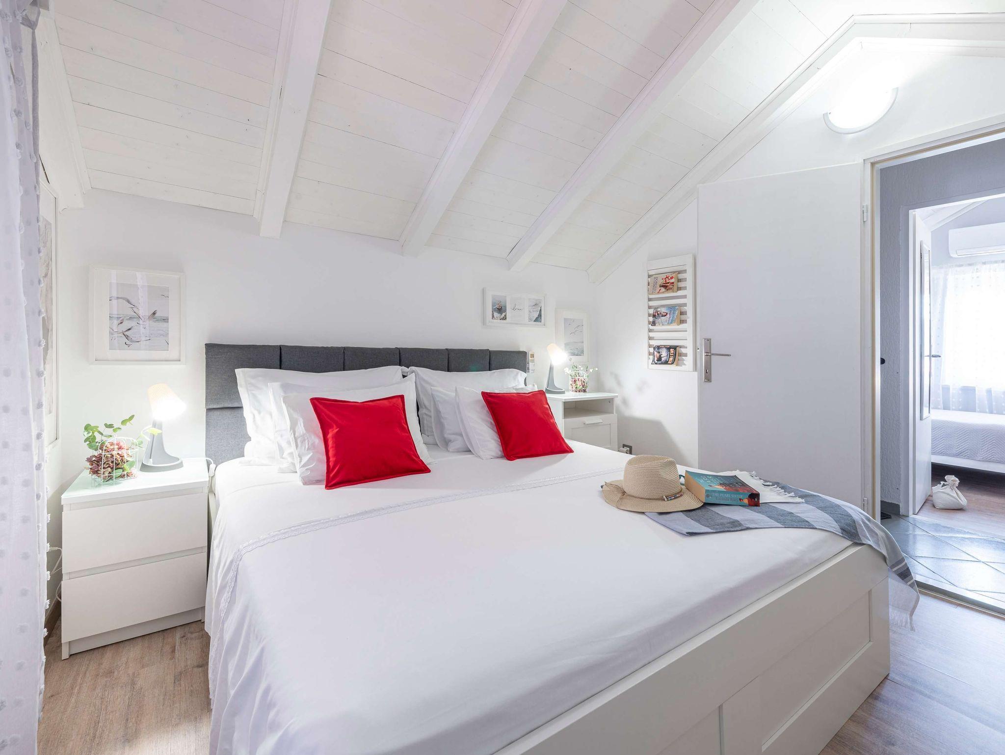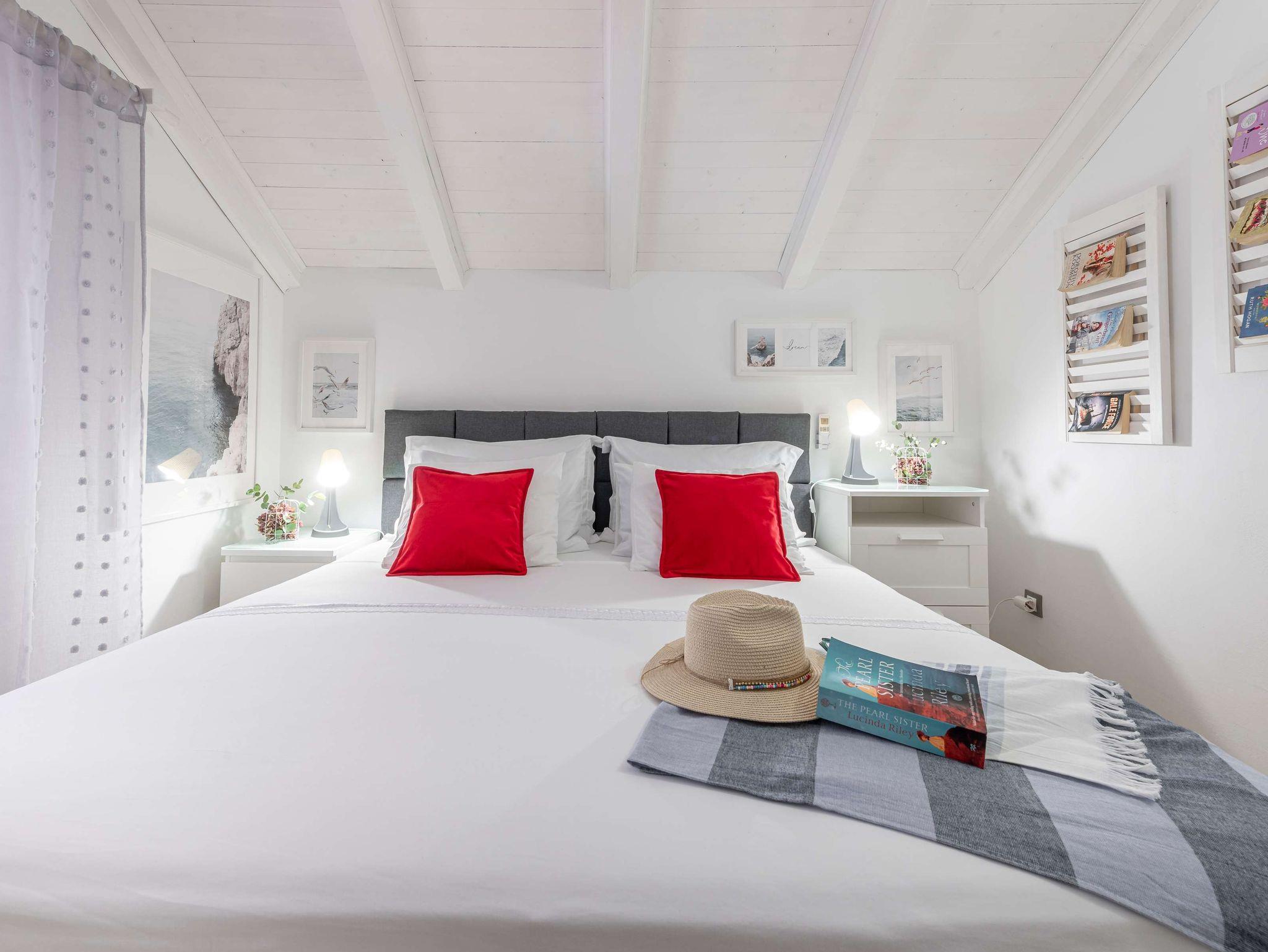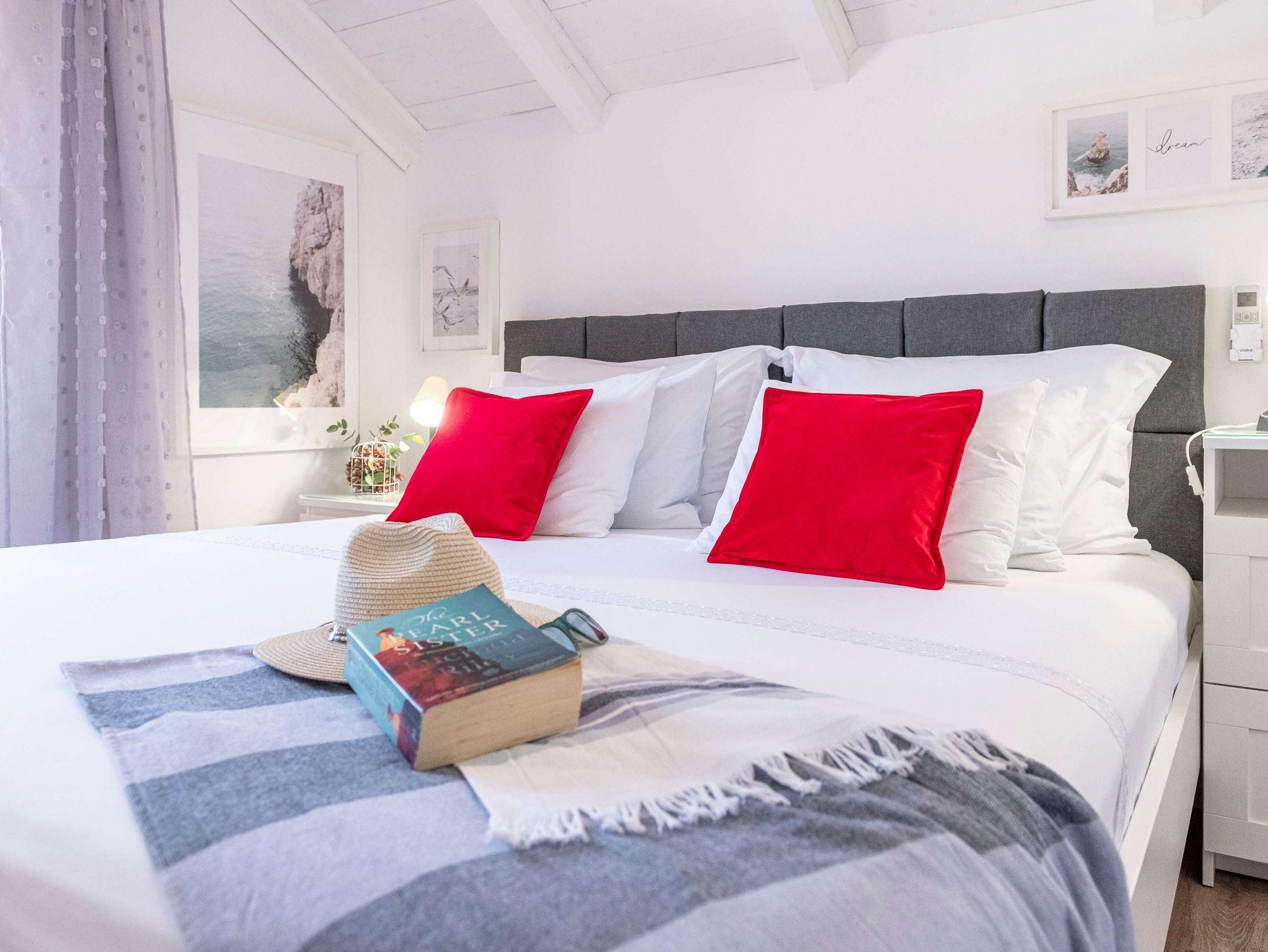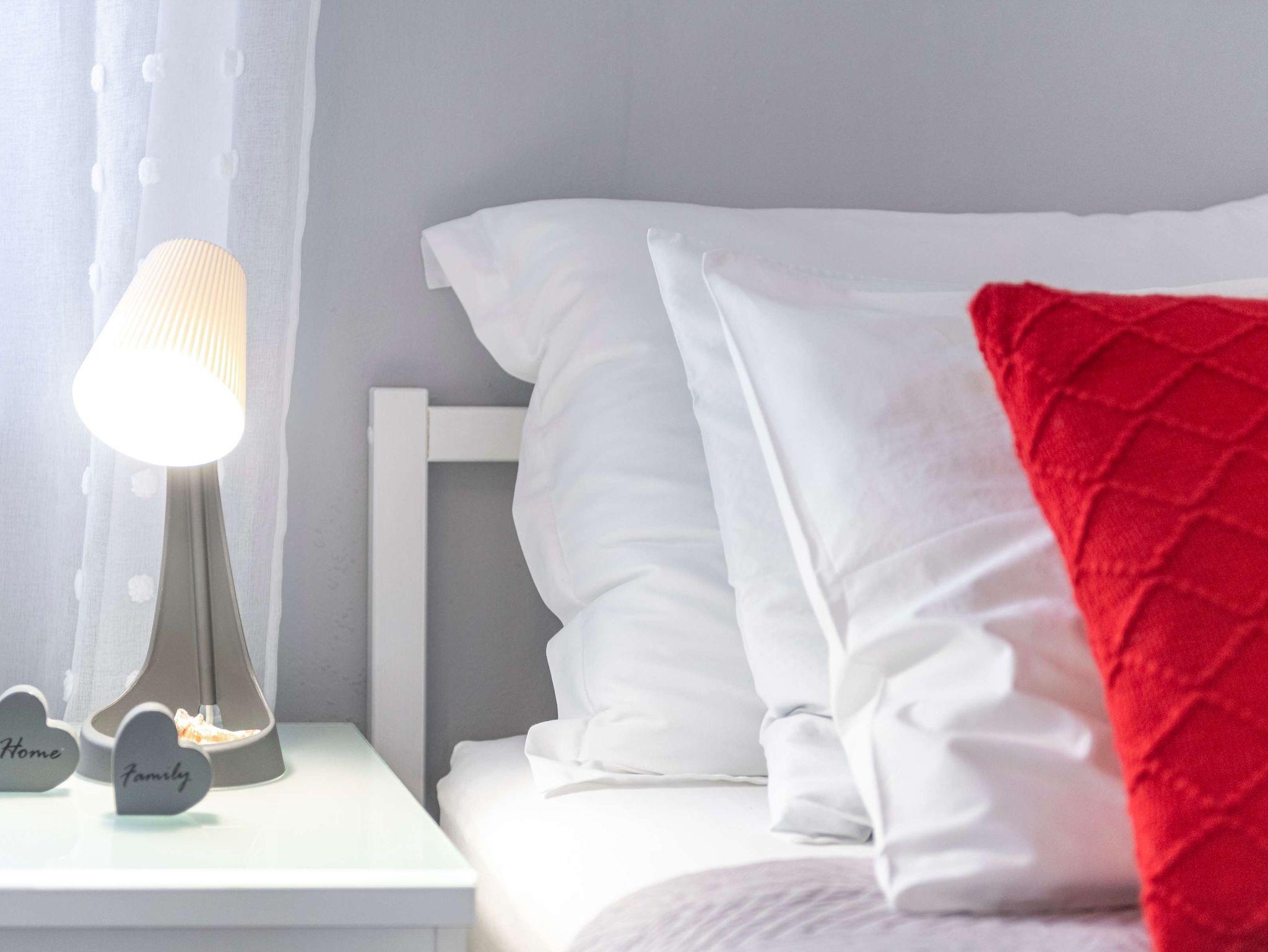 Haus bietet Platz für 3 Gäste. Die Betten sind in Schlafzimmern, die es 2 gibt, innerhalb einer Gesamtfläche von 50m2, angeordnet. Es ist erlaubt, Speisen auf dem Gemeinschafts-Grill vorzubereiten. Die reservierte Unterkunftseinheit hat keinen Balkon und keine Terrasse. IM PREIS INBEGRIFFEN: Kurtaxe, Endreinigung, Klimatisierung, Internet, Kinderbett, Bügeleisen, Föhn. Die Verfügbarkeit zusätzlicher Dienstleistungen in Ihrem reservierten Termin und die Preise derselben (falls nicht aufgeführt) müssen im Voraus überprüft werden. Zusätzliche Dienstleistungen die in der Zahlungsaufforderung nicht aufgeführt sind werden direkt beim Vermieter bezahlt, angenommen der Gast nutzt auch diese.