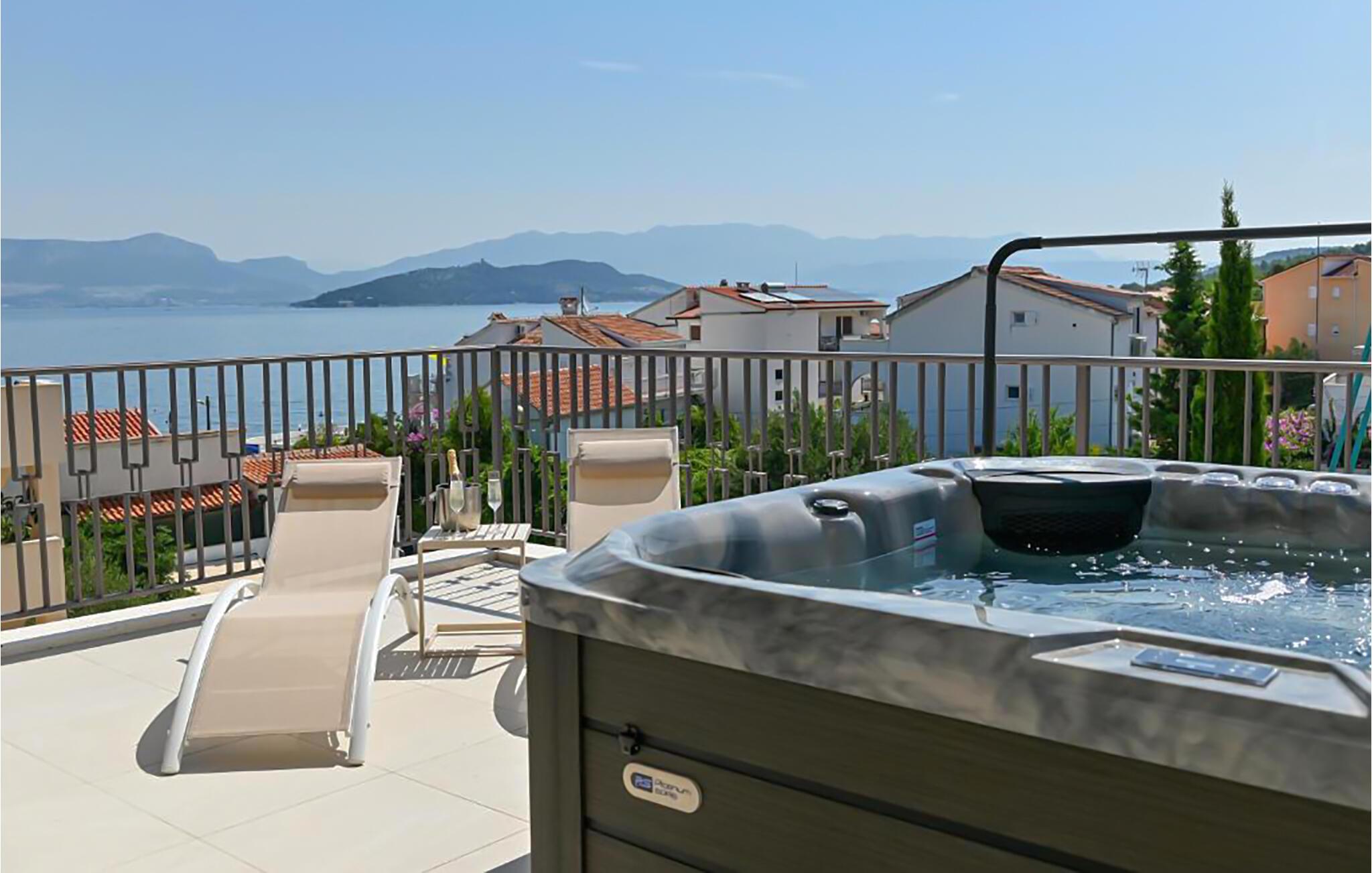 Nyd en drømmeferie i dette sensationelle feriehus med pool, spabad og havudsigt.