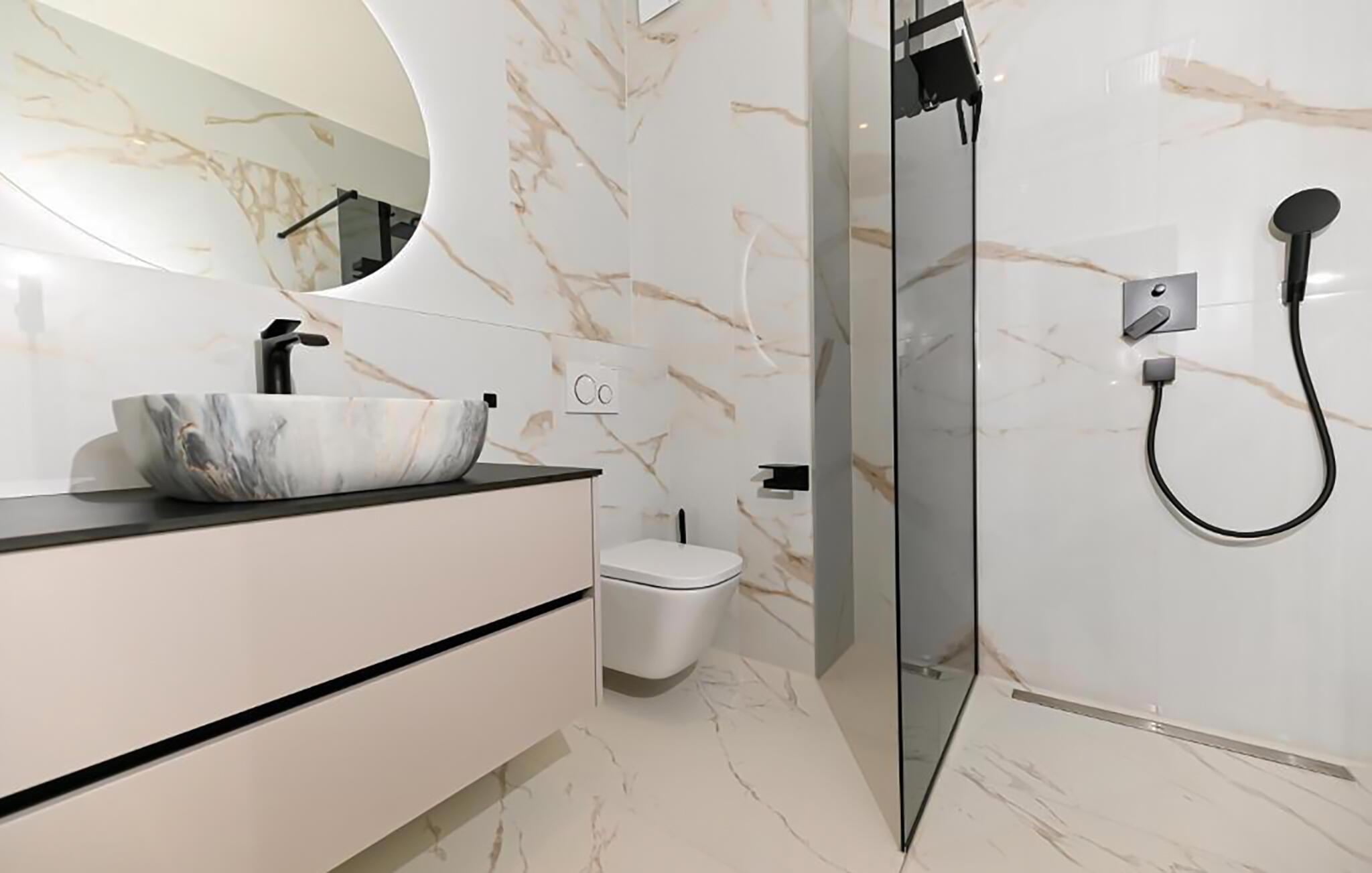 - WC. Varmt og koldt vand, Bruser