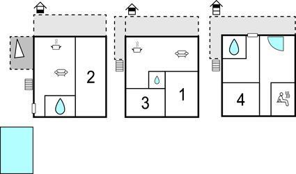 Badeværelse (nr. 3) - WC. Varmt og koldt vand. Bruser