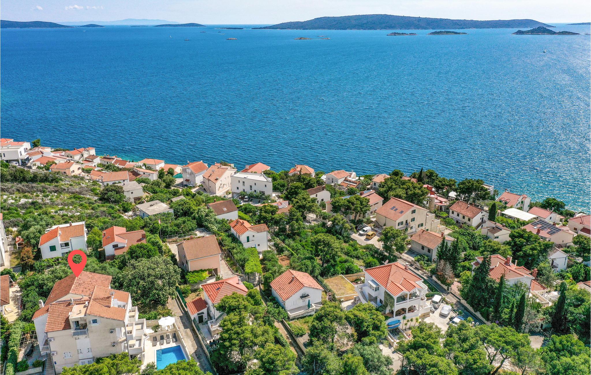 Dette feriehus med egen pool ligger i nærheden af havet ved byen Okrug Donji på øen Ciovo.