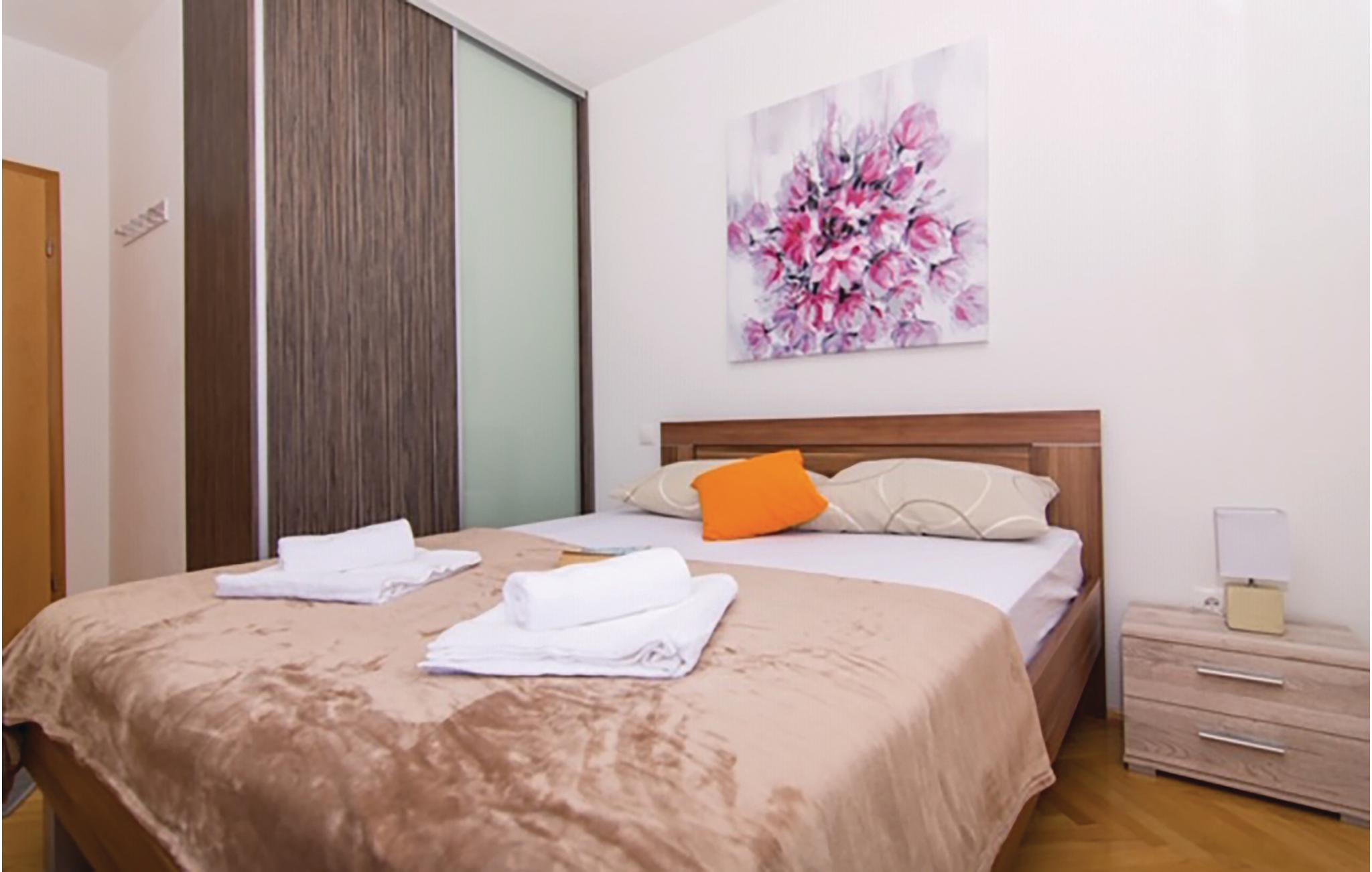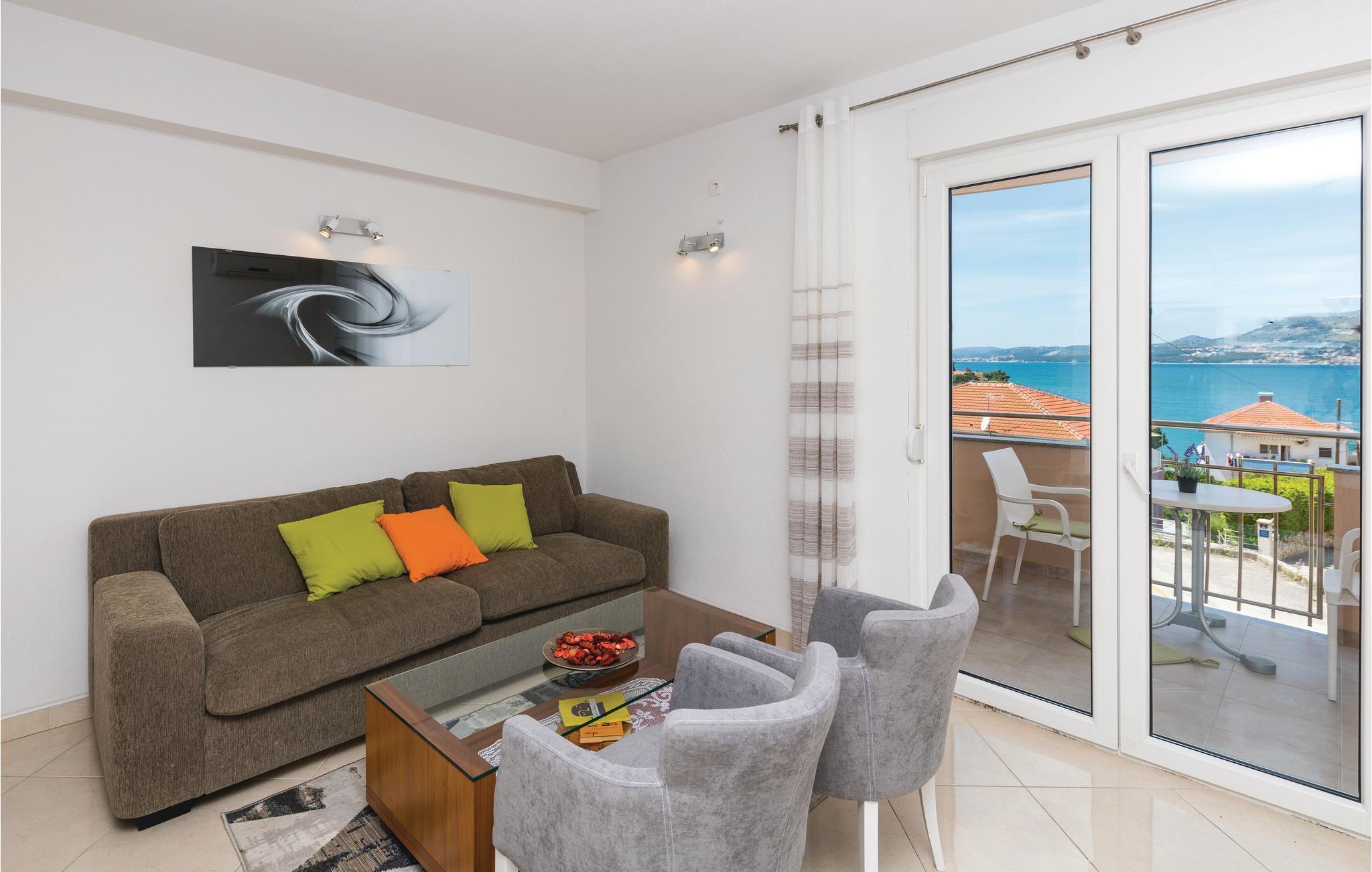 Denne smagfuldt indrettede ferielejlighed ligger i en ejendom i Okrug Gornji på øen Ciovo. Lejligheden ligger på første sal og har en balkon med betagende smuk havudsigt. Her er der oplagt at nyde dagens første kop kaffe og mærke hvordan solen langsomt begynder at varme. Lejligheden er ideel til alle, der gerne vi bo tæt på havet i ferien, da kiesstranden ligger under 100 m væk. Der er broforbindelse til Trogir på fastlandet, hvis historiske gamle bydel er med på UNESCOs verdensarvsliste, som også er rig på mange former for underholdning i løbet af sommeren. Besøg også Split, Dalmatiens metropol, med utallige seværdigheder, fx piratbyen Omiš og feriebyen Šibenik.