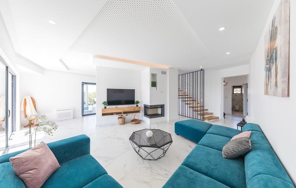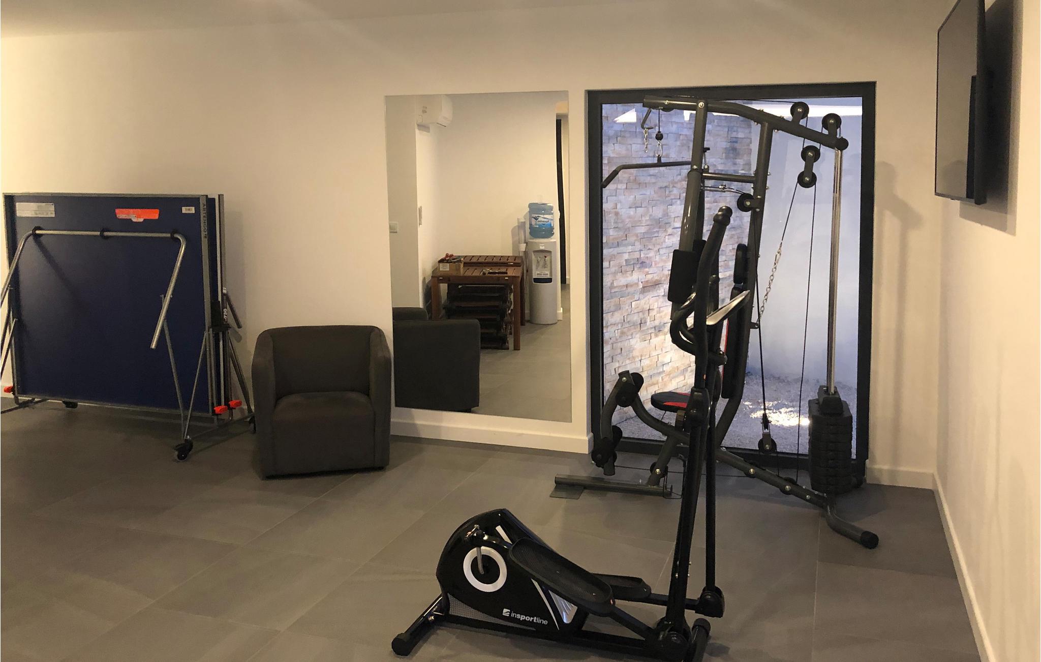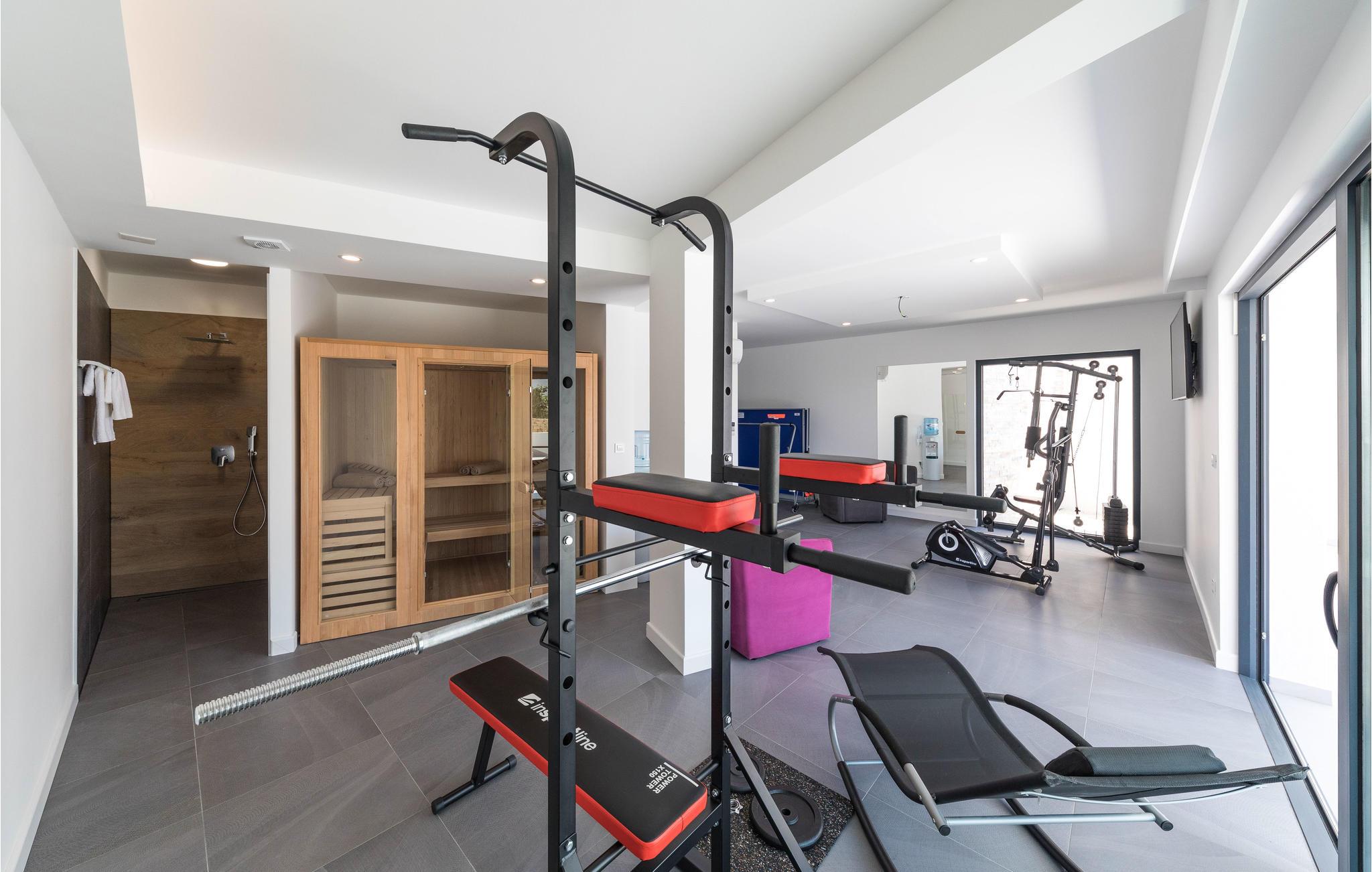 Huset er komfortabelt udstyret med alt, hvad I behøver til en ubekymret ferie, og her er også fitnessudstyr, så I kan holde træningen ved lige, mens I holder fri. Interiøret er lyst og moderne, og der er plads til op mod 10 personer, fordelt på fem soveværelser og fem badeværelser. Aircondition sikrer behagelige temperaturer på varme sommerdage.