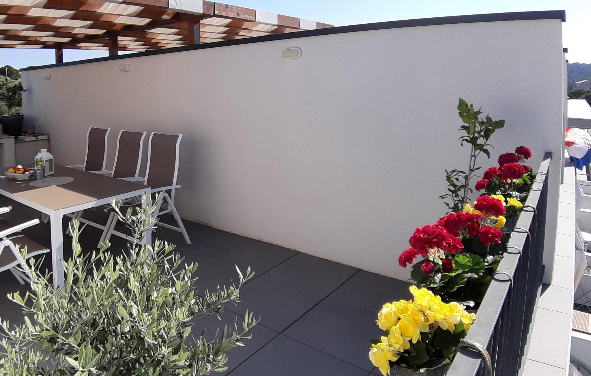 Nyd adgangen til den store fællespool med solterrasse og den vidunderlige udsigt over landskabet og havet. Lejligheden er moderne, yderst komfortabel og har en ideel beliggenhed med restauranter og indkøbsmuligheder lige ved siden af og havet et par minutters gang fra døren. I kan også spille tennis lige ved siden af lejligheden og leje cykler eller en båd, så I kan udforske øen nemt til lands eller fra det glitrende vand. I bør helt sikkert tage en dagstur til Trogir med sine mange historiske bygninger, såsom den imponerende katedral St. Lawrence.