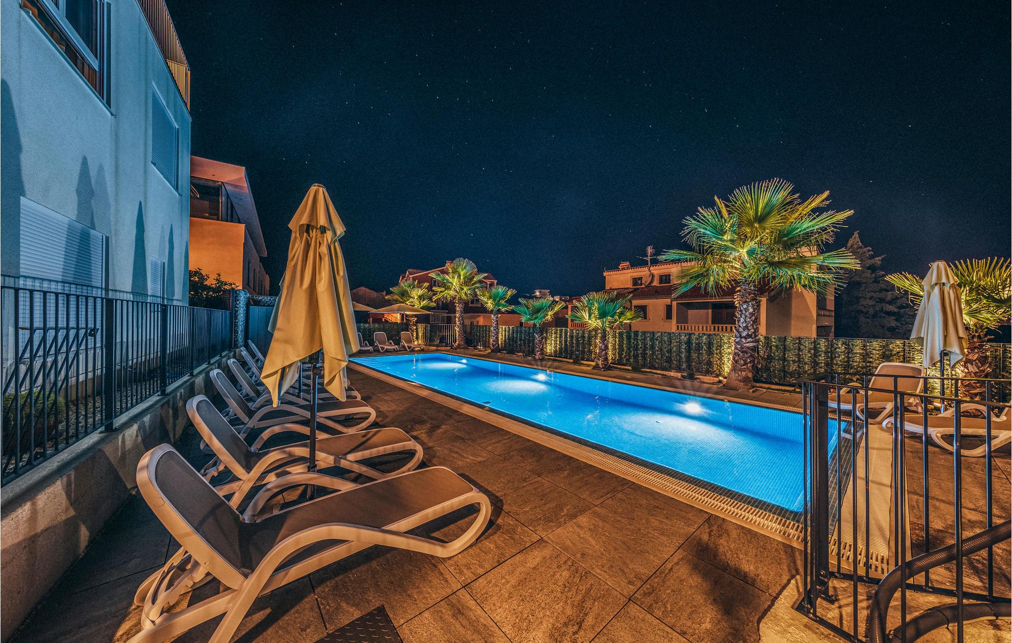 Nyd adgangen til den store fællespool med solterrasse og den vidunderlige udsigt over landskabet og havet. Lejligheden er moderne, yderst komfortabel og har en ideel beliggenhed med restauranter og indkøbsmuligheder lige ved siden af og havet et par minutters gang fra døren. I kan også spille tennis lige ved siden af lejligheden og leje cykler eller en båd, så I kan udforske øen nemt til lands eller fra det glitrende vand. I bør helt sikkert tage en dagstur til Trogir med sine mange historiske bygninger, såsom den imponerende katedral St. Lawrence.