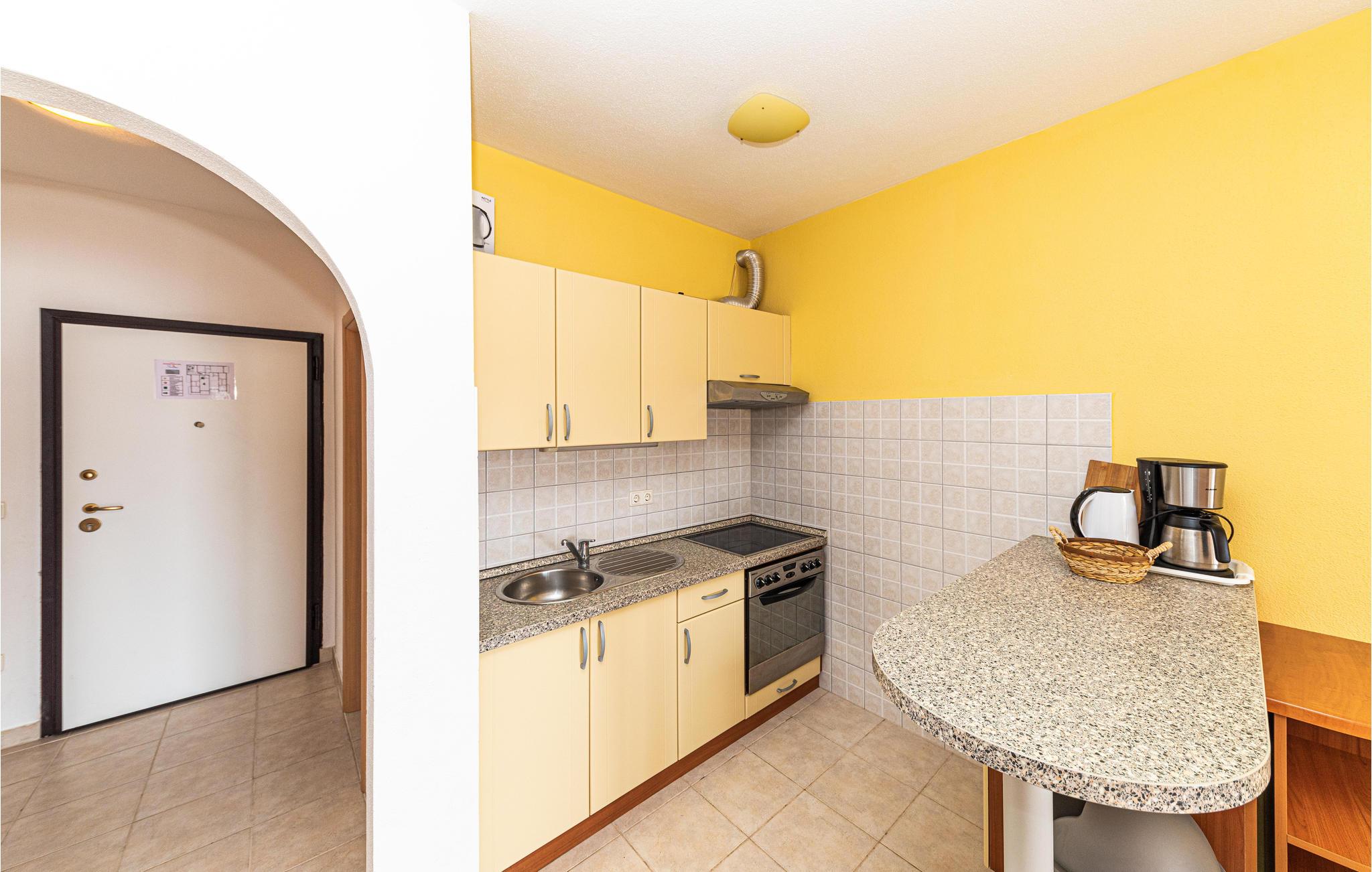 Denne lejlighed lokker med en fantastisk beliggenhed lige ved stranden. Med sine gode værelser, hvis lyse venlige farver giver et tiltalende udtryk, indbyder lejligheden til en afslappende pause med gode muligheder for aktiviteter. Tilbered en lækker morgenmad i køkkenet og nyd hyggelige aftener i sofaen. Start dagen med en kop kaffe på terrassen og lad blikket vandre ud over havet. Udsigten vil give jer lyst til at tage en dukkert i havet. I kan også afslutte dagen herude med kolde drinks. I morgen kan I gå en tur til klippekysten eller stranden og forfrisk jer i det klare hav.