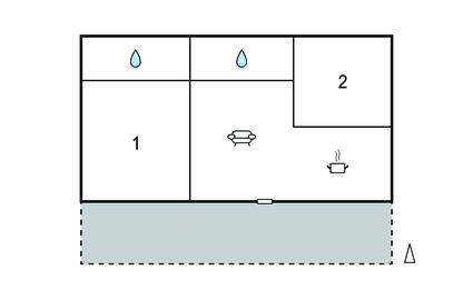 Badeværelse 3m2 (nr. 2) - WC. Varmt og koldt vand. Bruser