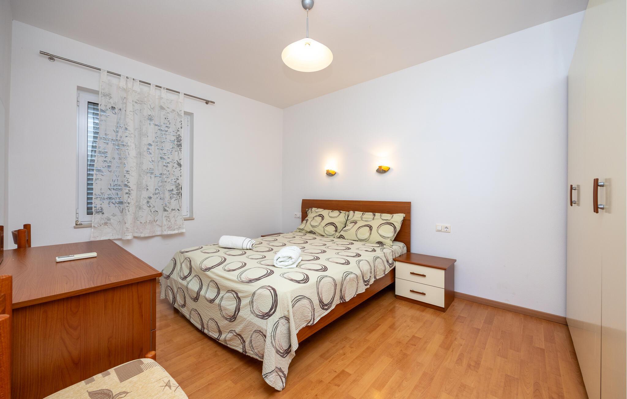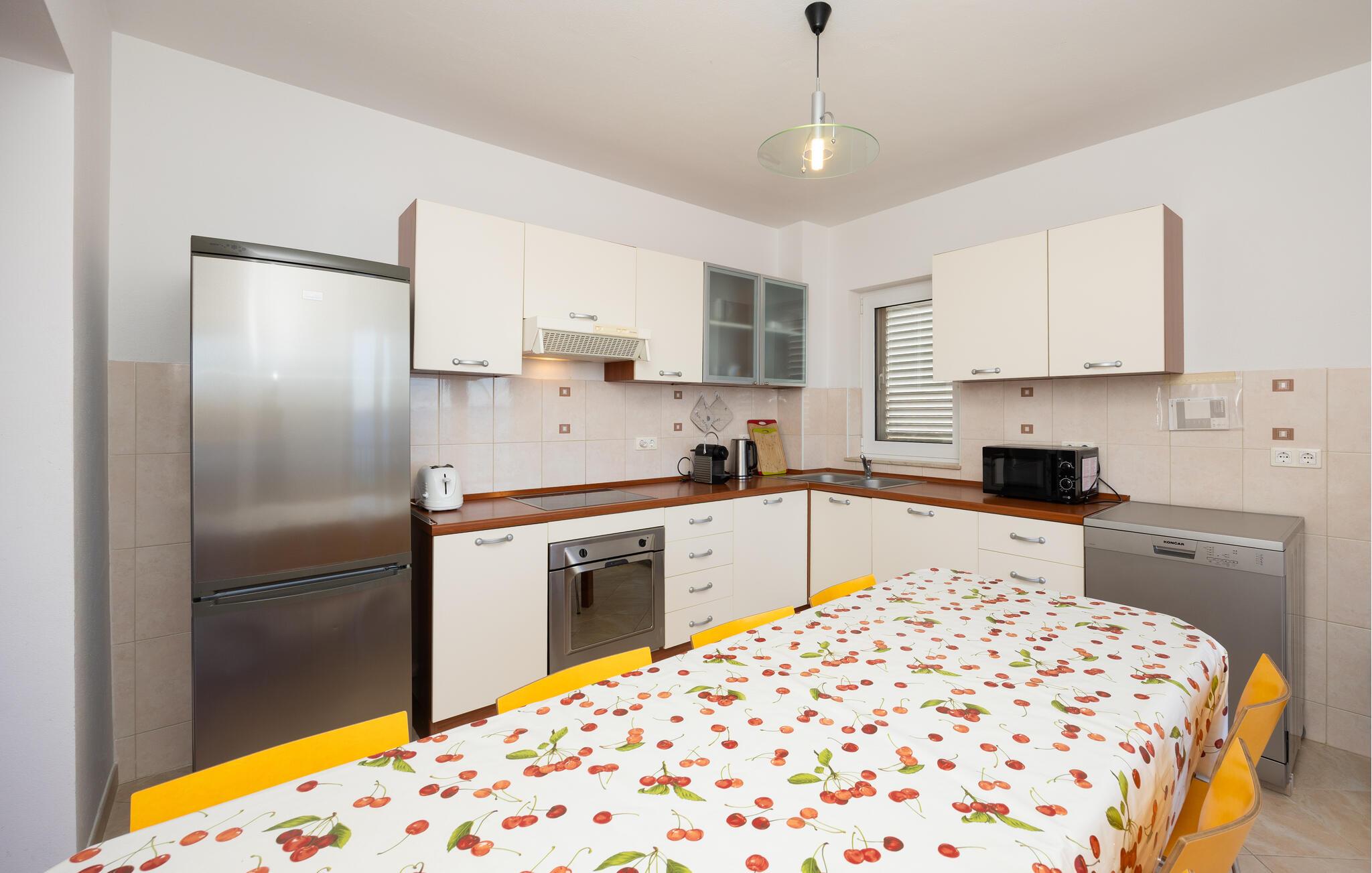 Denne lejlighed på øen Ciovo er perfekt til en afslappende ferie. Slap af og nyd stemningen i de komfortable sofaer med et glas vin. Tilbring en hyggelig filmaften med familie eller venner eller lav friske måltider sammen i det moderne køkken.