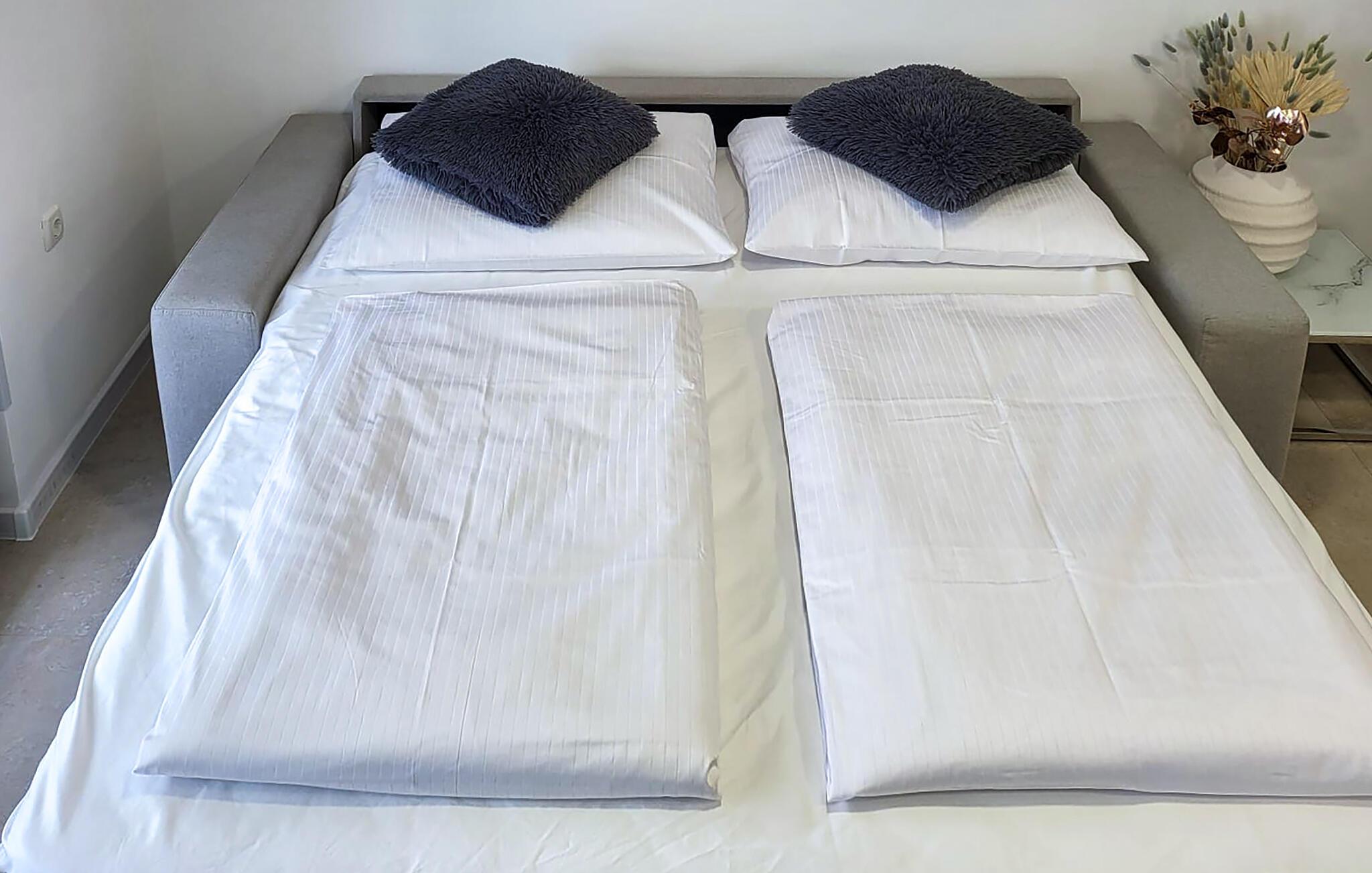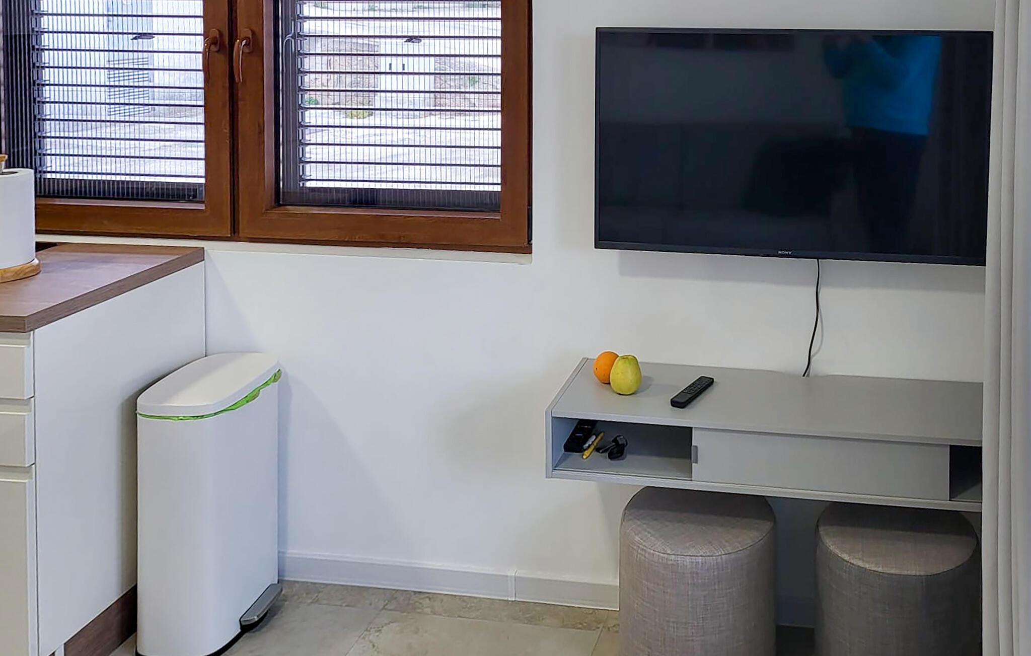 Denne lejlighed har alt, hvad I behøver for en afslappende pause fra hverdagen. En komfortabel sofa lægger op til at slappe af med en kop kaffe, mens I lytter til god musik eller nyder en afslappet snak. Tilbered friske måltider i det moderne køkken og nyd dem med et godt glas kroatisk vin.