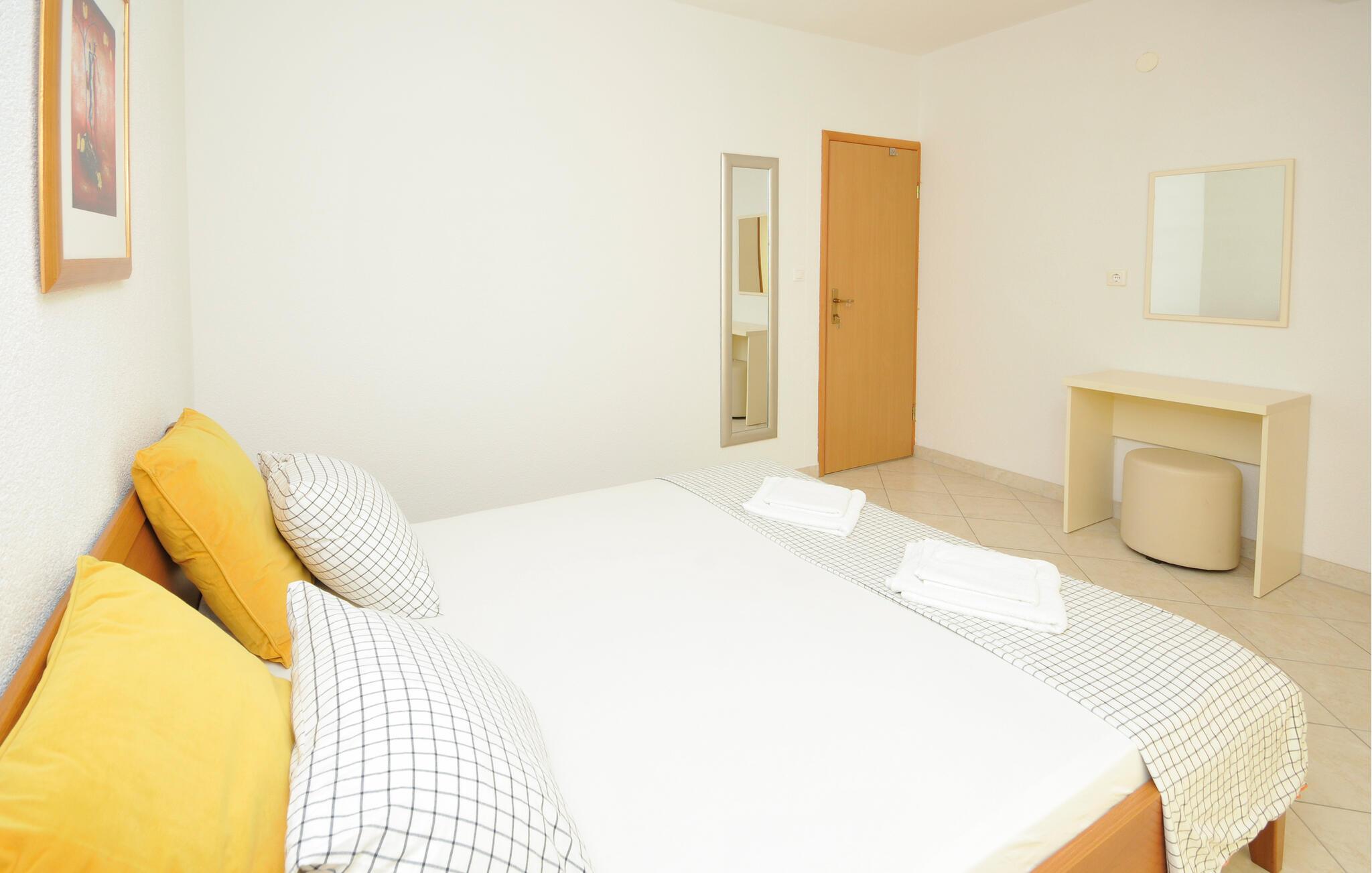 Stranden ligger kun et stenkast væk og lægger op til at nyde afslappende dage med svømning og vandsport i det krystalklare Adriaterhav. Udforsk øen Ciovos skjulte bugter, kyststier og fantastiske udsigtspunkter. Besøg den nærliggende Trogir, hvis historiske gamle bydel, inklusive Sankt Laurentius-katedralen, er på UNESCOs verdensarvsliste. Tag en tur til Split, slentre gennem Diocletians Palads og nyd den pulserende atmosfære på den dalmatiske kyst.