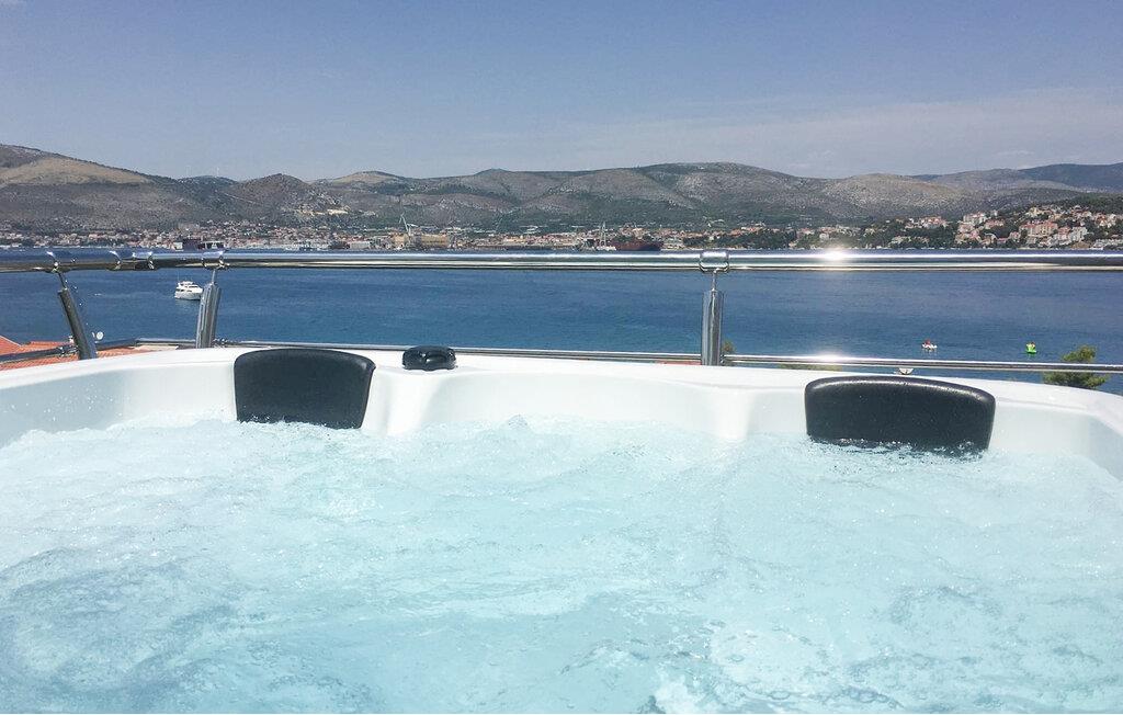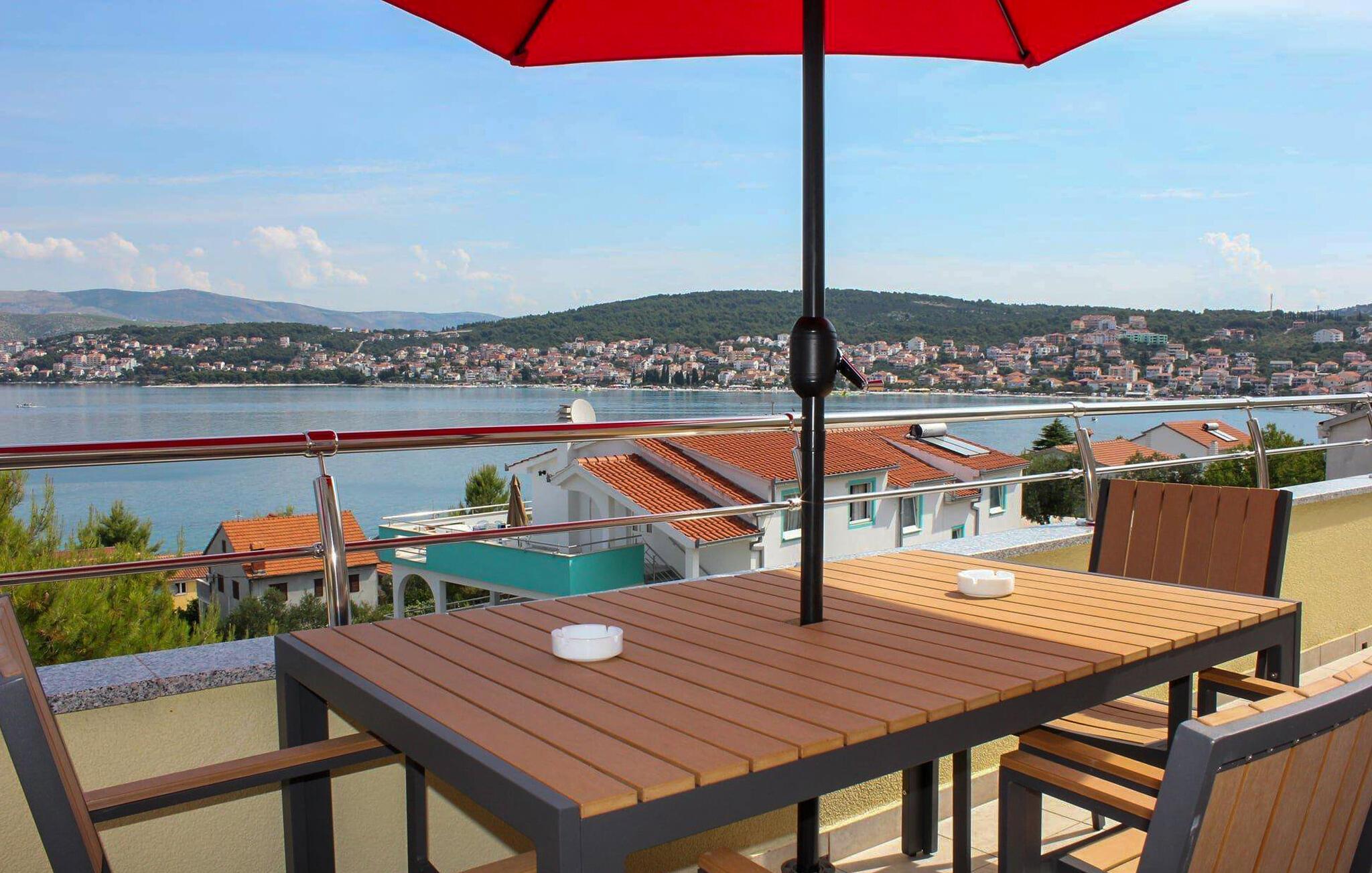 Fra terrassen har I en smuk udsigt over den blå bugt foran Okrug Gornji. Server morgenmaden her om morgenen og få en god snak over et glas vin, mens solen går ned, efter en forfriskende dukkert i den fælles pool.