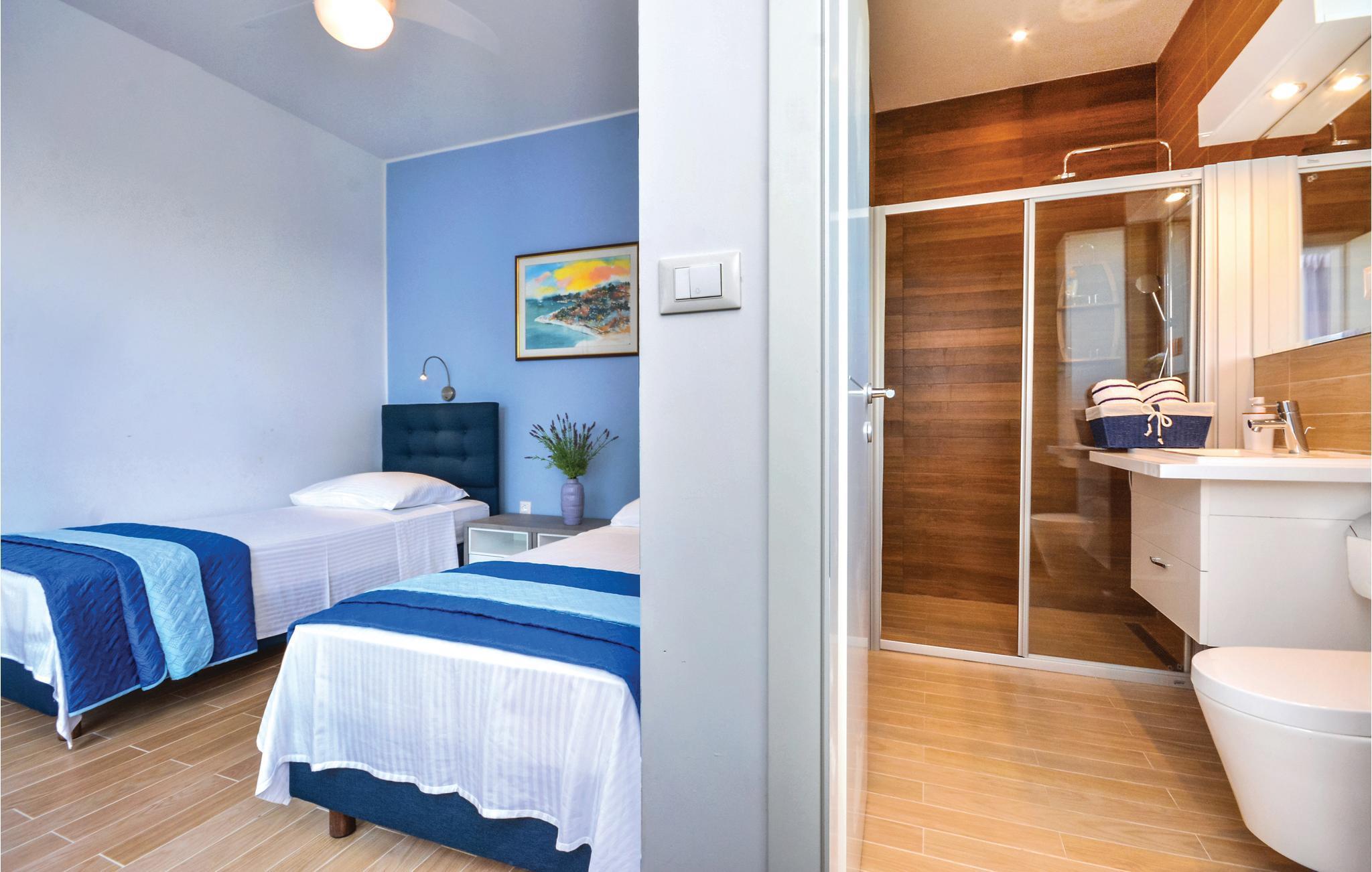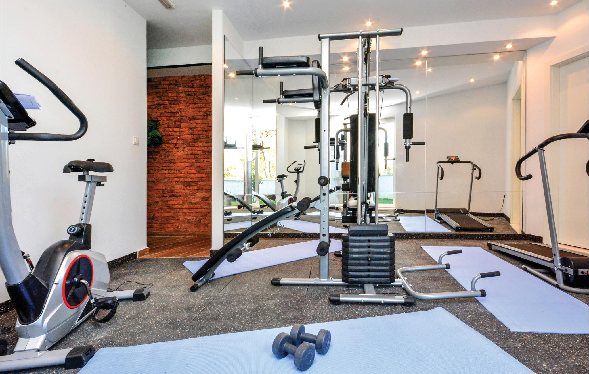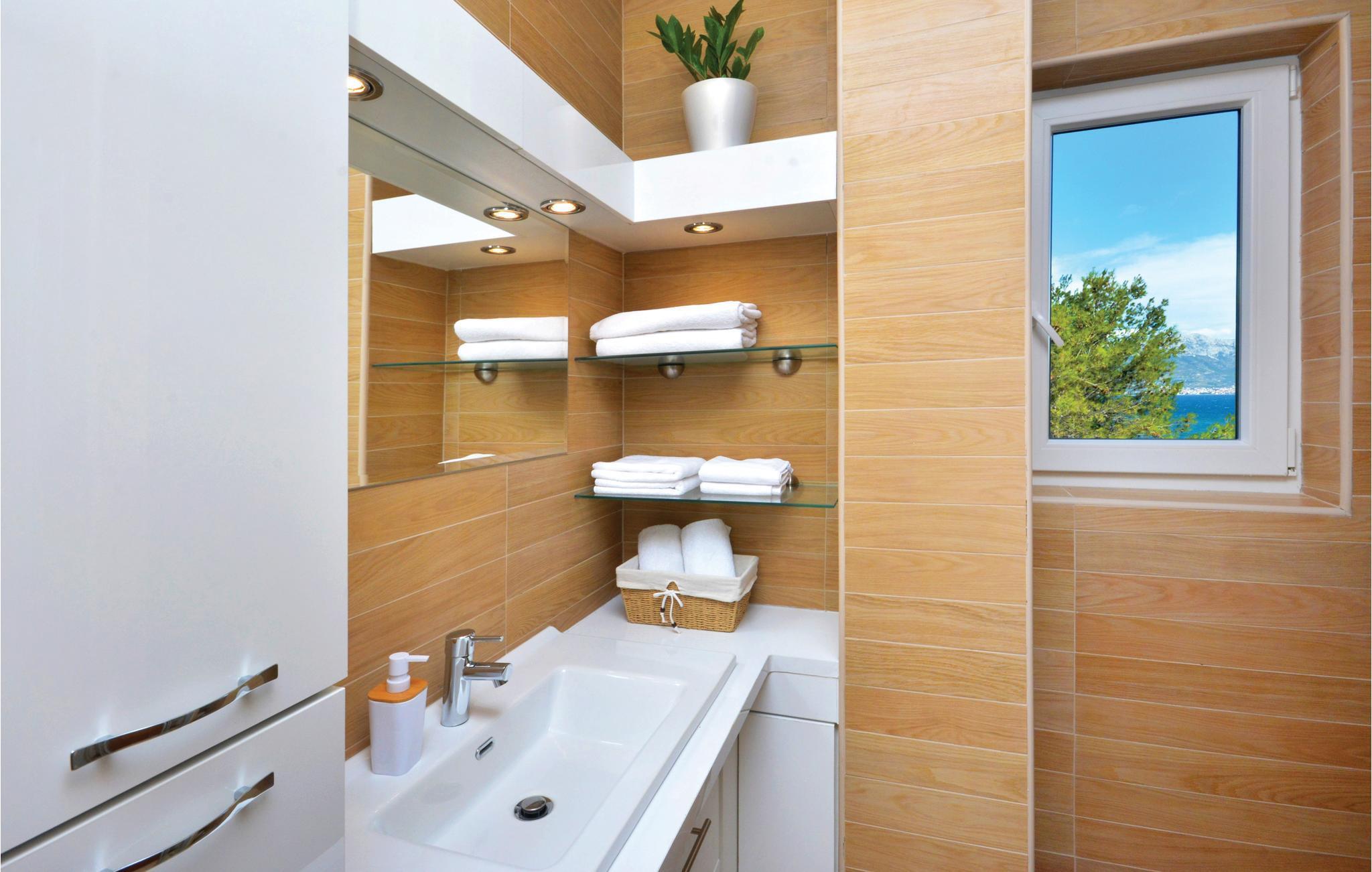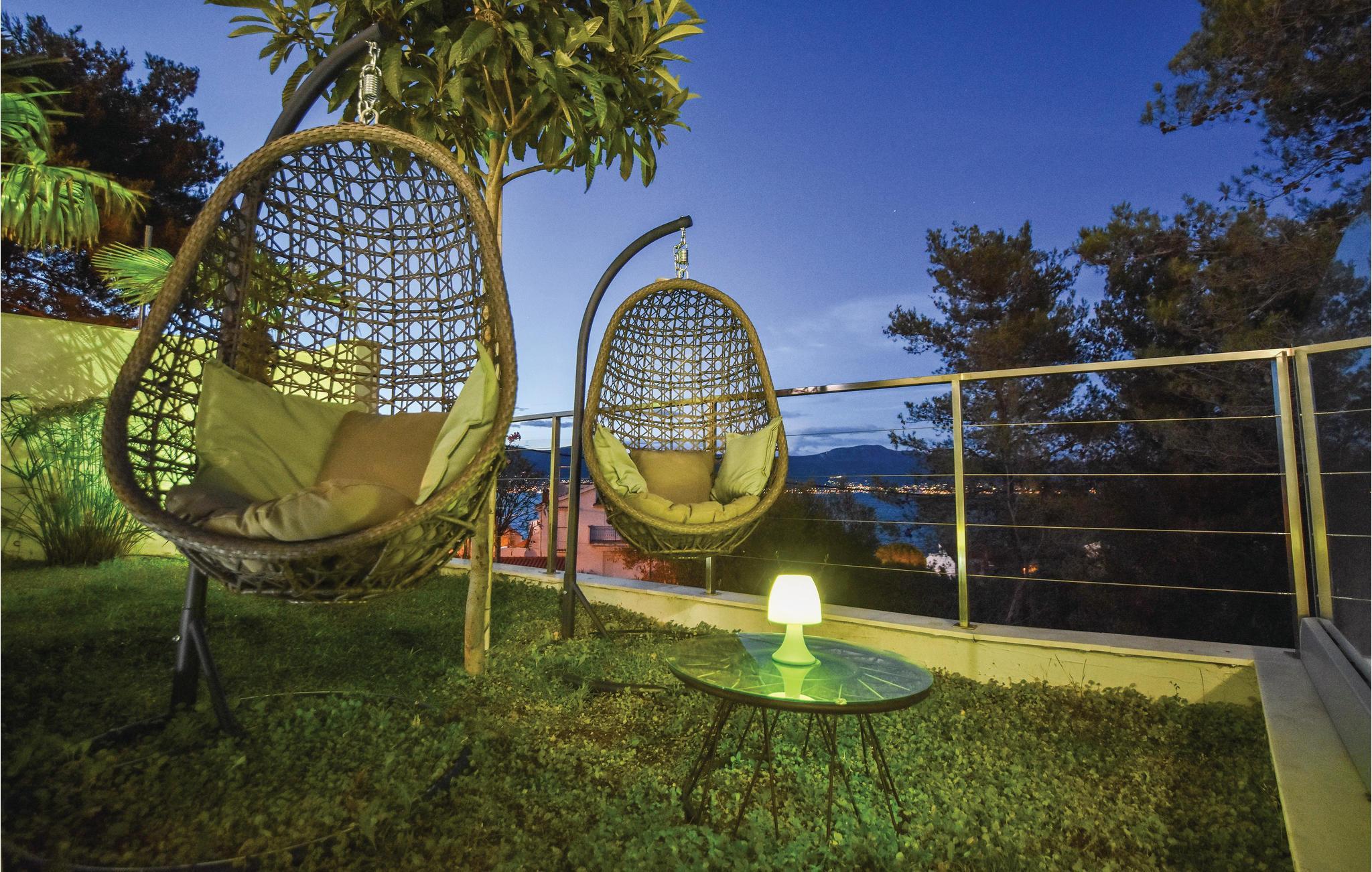 Dette stilfulde feriehus med pool ligger ved siden af en fyrreskov, kun ca. 100 m fra havet. I stueetagen er der: et rummeligt køkken, dagligstue med spiseområde og udgang til terrassen, sommerkøkken med grill, fritidsrum med lille bar og fitnessrum. På 1. sal er der fire soveværelser med bad en suite. Nyd den dejligt anlagte og fuldstændig inhegnede grund med herlig udsigt over landskabet og slap af på en af terrasserne. Opdag mange dejlige strande på øen og besøg den historiske by Trogir, der hører til UNESCOs verdenskulturarv og byder på underholdning og gastronomiske tilbud.