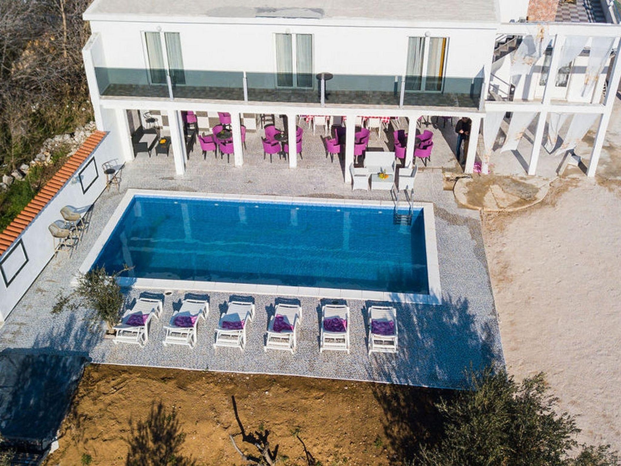 Haus bietet Platz für 15 Gäste. Die Betten sind in Schlafzimmern, die es 6 gibt, und in Wohnzimmer, innerhalb einer Gesamtfläche von 161m2, angeordnet. Die Gäste haben eine eigene Terrasse zur Verfügung, auf der sie in warmen Sommernächten genießen können. Das Haus bietet Meerblick. Für vollen Genuss und Entspannung gibt es einen privaten Grill für Gäste dieser Unterkunft. Während ihres Aufenthalts können sich Gäste im privaten Schwimmbad entspannen. In der Unterkunftseinheit besteht die Möglichkeit des Mitbringens von Haustieren, und die Dienstleistung ist im Preis der Unterkunft enthalten. IM PREIS INBEGRIFFEN: Kurtaxe, Endreinigung, Klimatisierung, Pool, Parkplatz, Internet, Haustiere, Bügeleisen, Föhn. Die Verfügbarkeit zusätzlicher Dienstleistungen in Ihrem reservierten Termin und die Preise derselben (falls nicht aufgeführt) müssen im Voraus überprüft werden. Zusätzliche Dienstleistungen die in der Zahlungsaufforderung nicht aufgeführt sind werden direkt beim Vermieter bezahlt, angenommen der Gast nutzt auch diese.