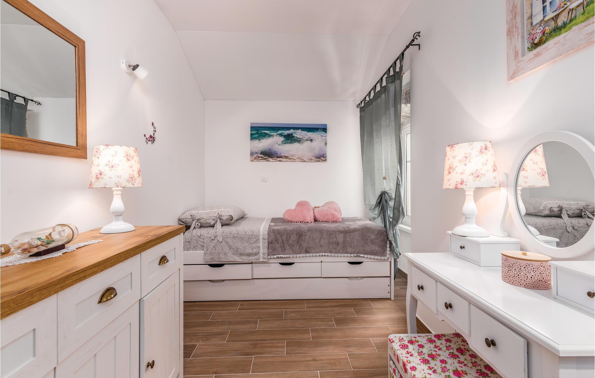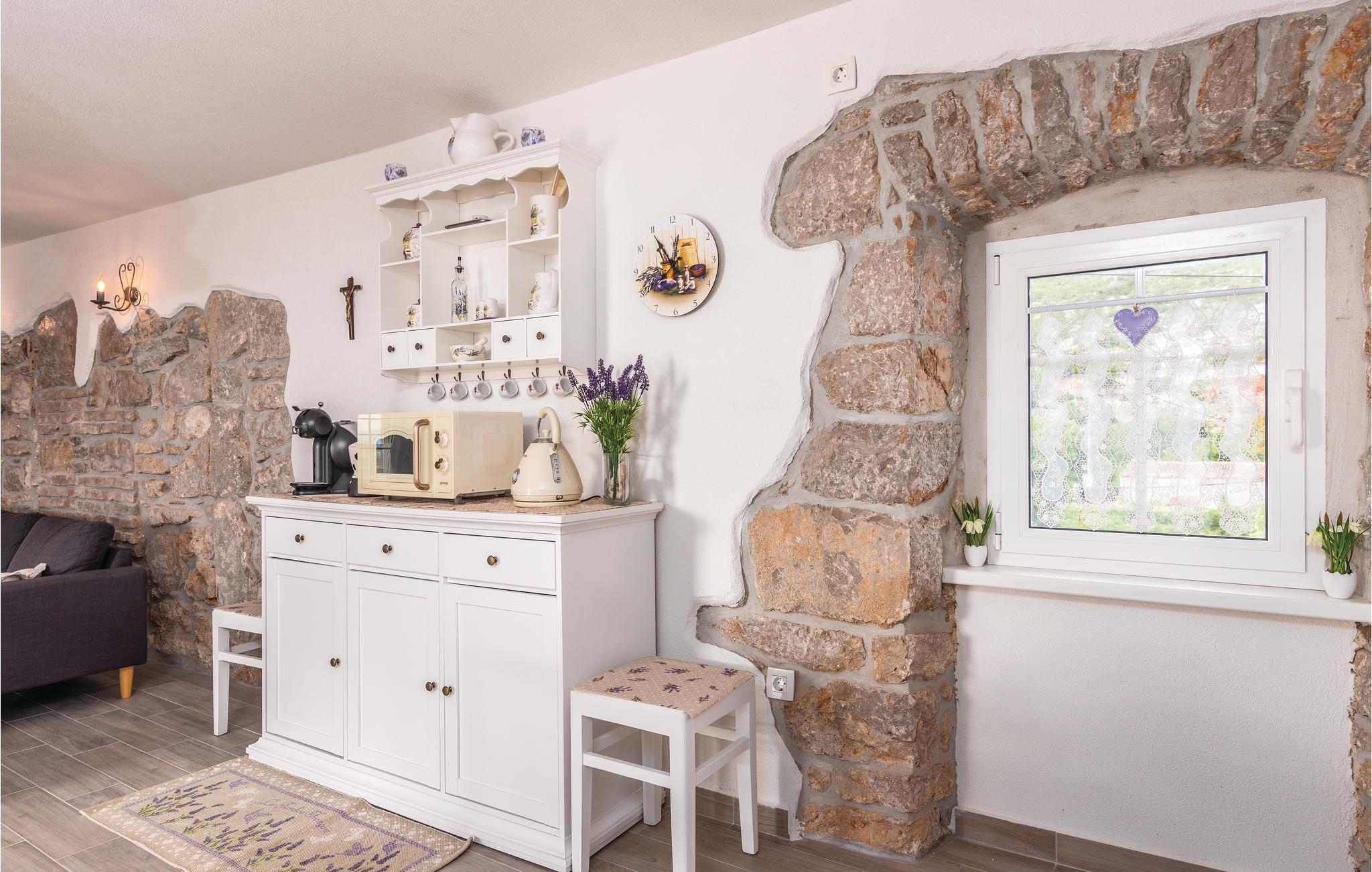 En vidunderlig havudsigt vil charmere jer under et ophold i dette smukke stenhus fra 1913 på øen Cres. Renoveret med respekt for originale detaljer, så er grundplanen bevaret. Soveområdet er på 1. sal og et ekstra toilet er placeret i stueetagen med udvendig indgang. Alle terrasser har havudsigt, og der er også en stengrill til velsmagende og enkle måltider, som I kan krydre med middelhavsurter fra haven. Området har mange afmærkede vandrestier, der også fører til landsbyen Beli, hvor I kan besøge et forskningscenter til beskyttelse af natur, eller prøve svævebanen over den smukke bugt med flotte farver.
