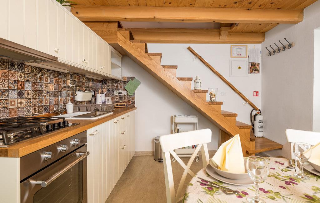 Tæt på stranden kan I beundre dette vidunderlige feriehus i Cres-Punta Kriza. Når man kommer ind i huset, bliver feriestemningen bare endnu større. Det hyggelige interiør byder jer velkommen, og synlige loftsbjælker i træ afrunder den originale charme ved denne bolig. En åben trappe forbinder gulvene, og de to soveværelser har ingen døre.