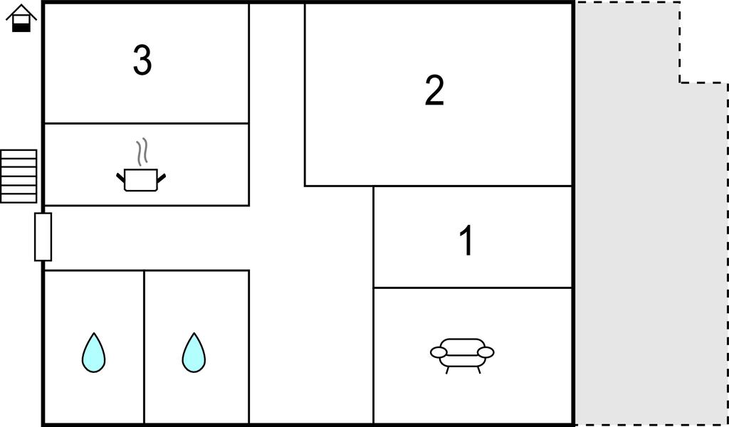 Soveværelse 15m2 (nr. 1) - 1 Soveplads. (Enkeltseng(e)). 2 Sovepladser. (Dobbeltseng(e)).