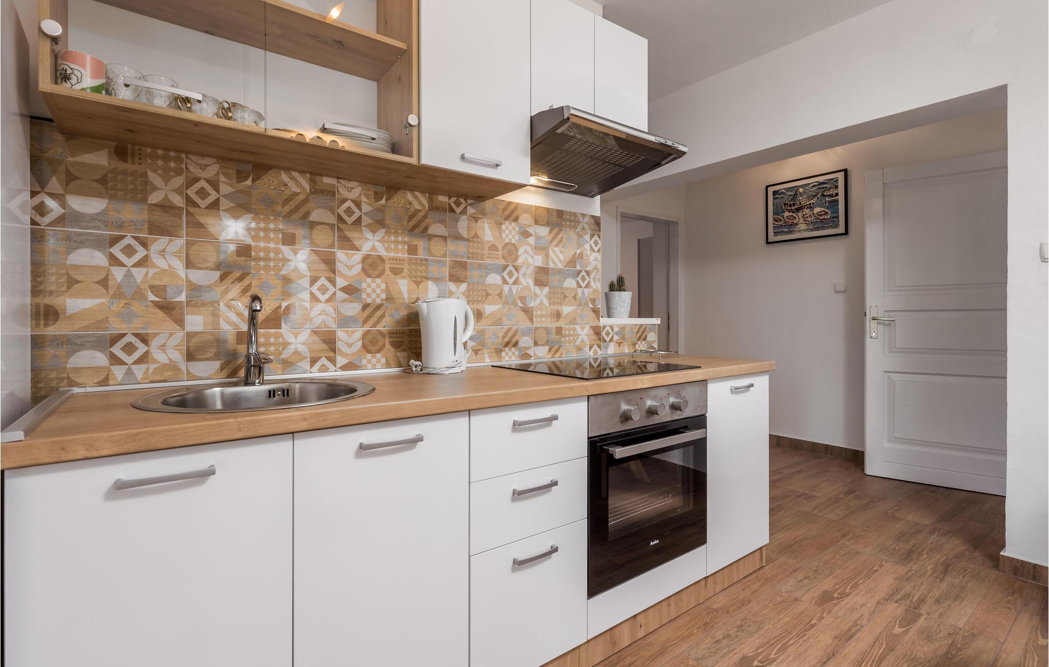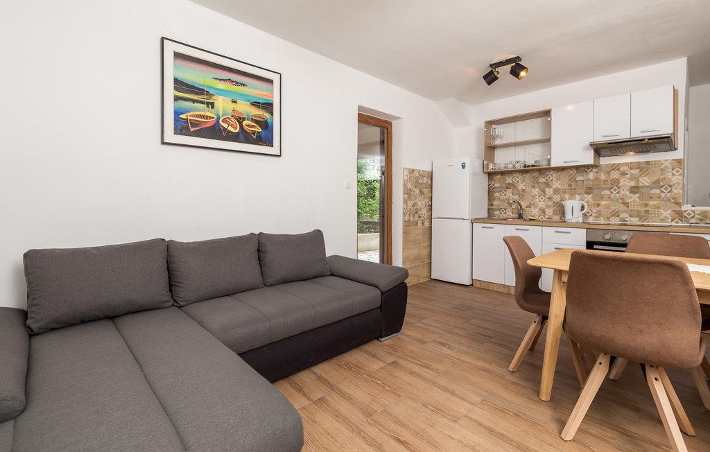 Denne smukke lejlighed er beliggende i byen Cres nær centrum, men i en rolig beliggenhed kun 300 meter fra stranden. Lejligheden ligger i stueetagen med egen parkeringsplads. I kan også bruge en del af haven, og der er sommerkøkken på terrassen. Tilbered lækre måltider med familie eller venner, og nyd de milde sommeraftener. Stuen og køkkenet åbner ud til en overdækket terrasse, hvor I vil tilbringe det meste af jeres tid udendørs. Køkkenet er fuldt udstyret.