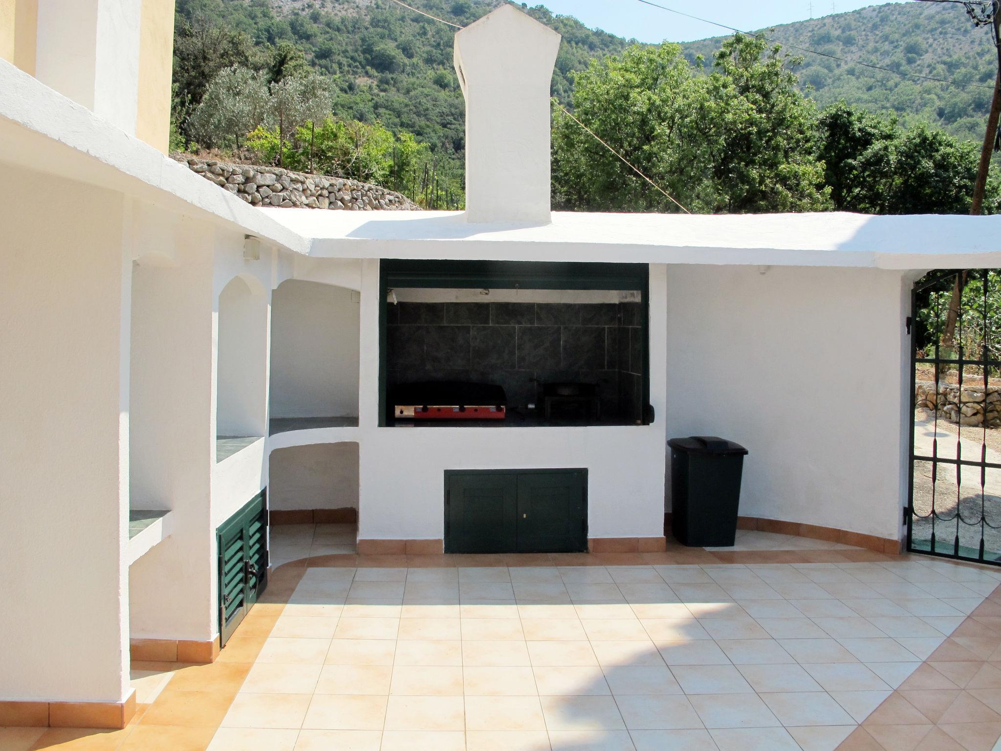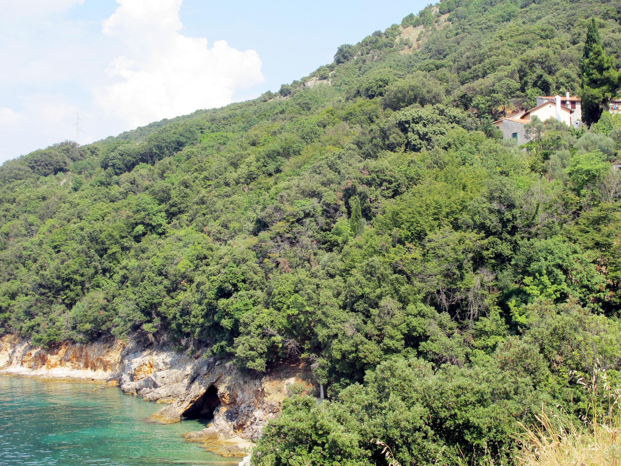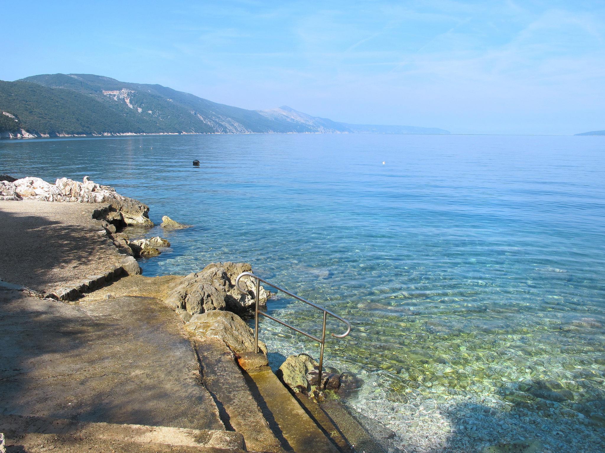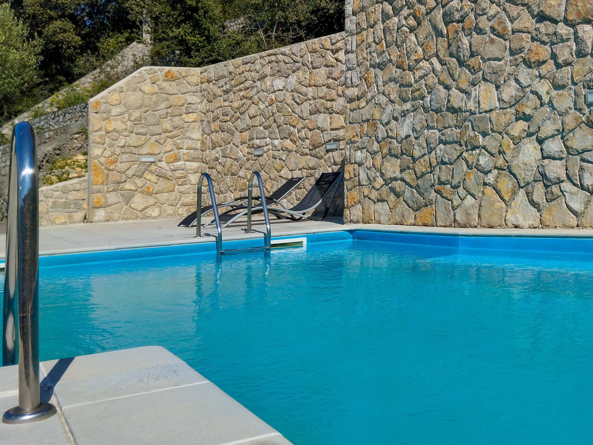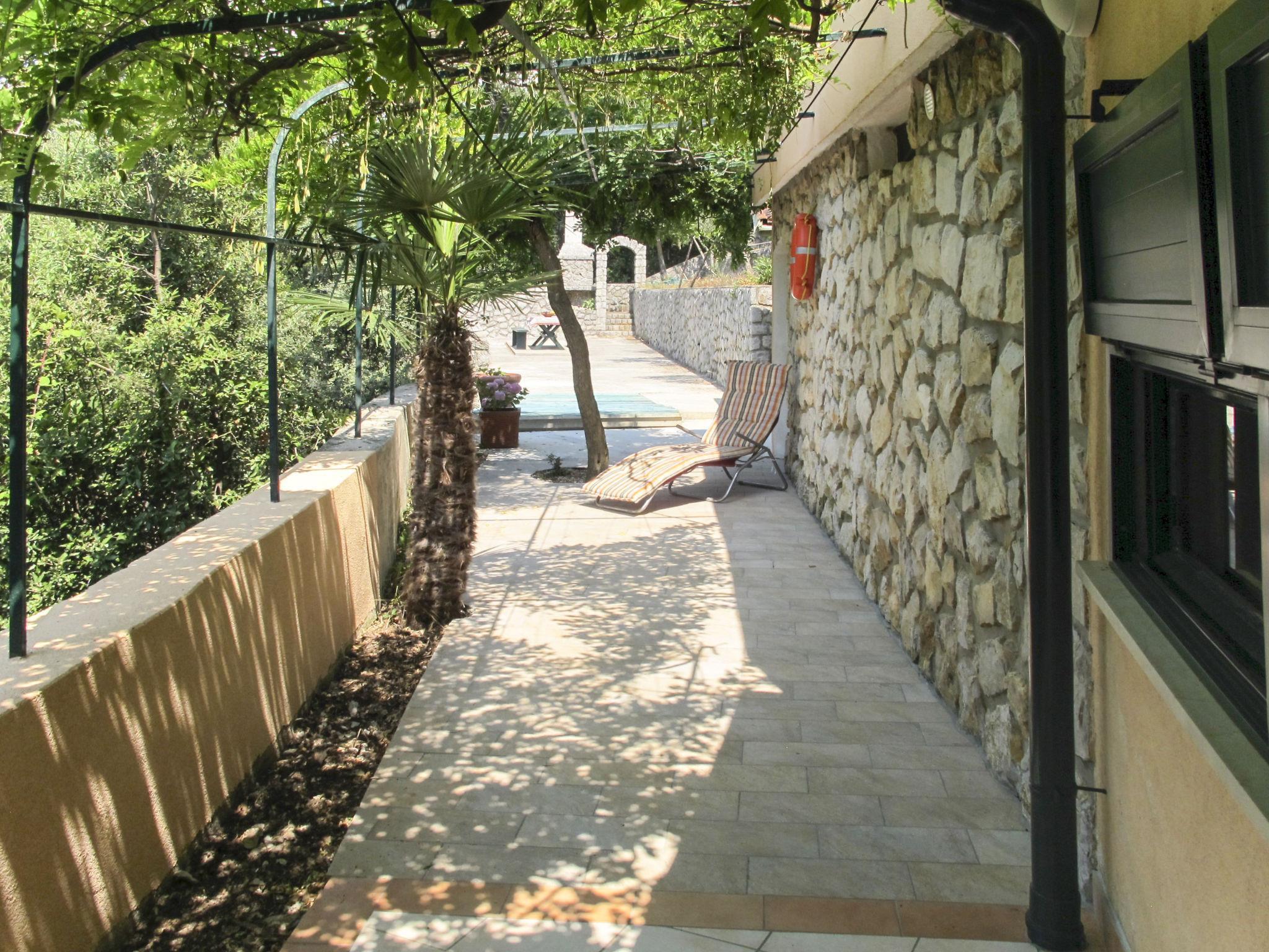 Merag: Single-family house "Mick", 2 storeys. In the resort 15 km from the centre of Cres, in the residential district, 200 m from the sea, 200 m from the beach. Private: property 2'000 m2 (fenced) with trees, swimming pool (8 x 4 m, depth 150 cm, seasonal availability: 15.Mar. - 15.Nov.). Outdoor shower, patio, terrace (100 m2), garden furniture, barbecue. In the house: internet access, washing machine. 15 m long steep motor access. Parking (for 6 cars) at 30 m. Shop 15 km, restaurant 15 km, bus stop 1.3 km, ferry 1 km, rocky beach 200 m. Please note: private mooring, on request. Airfield 35 km from the property.