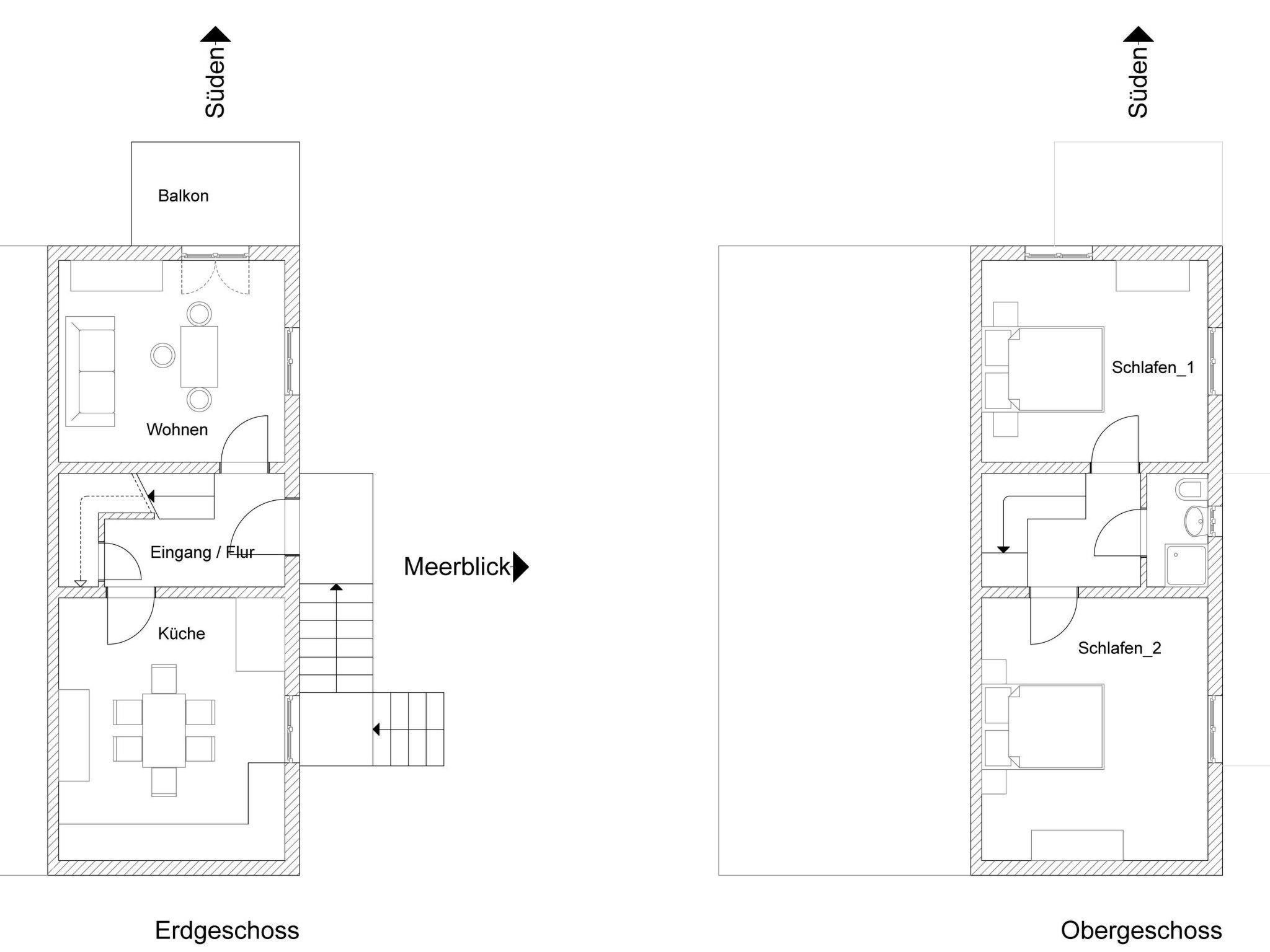 The old shepherd's house was lovingly restored in 2016 in its original style, combining modern comfort with the charm of days gone by. It has two bedrooms, a bathroom with shower/bathtub, a large kitchen and a living room with balcony. From the two bedrooms on the upper floor, you can look directly over the vine leaves, rosemary and the village roofs down to the sea. Both beds are double beds and, like the furniture, are partly original pieces from the beginning of the last century. Mattresses and pillows are of course modern and have just been renewed. The bathroom is also on the upper floor and is located in the corridor between the two rooms; it has a small window that also faces the sea. The large kitchen with dining area is on the ground floor and is equipped with all modern conveniences. The special charm lies in the preservation of the old fire hob with smoke extractor, into which the modern electric cooker is now integrated. Here, too, you will find antique furniture mixed with modern pieces that create a very special atmosphere. The living room is located opposite the kitchen, connected by the hallway. There is a sofa bed on which another person can sleep. A flatscreen TV with satellite reception is also available here. The balcony leads off the living room, where there is another dining area and from which you have a wonderful view over the fig tree to the church and the old sheep pastures in the distance.