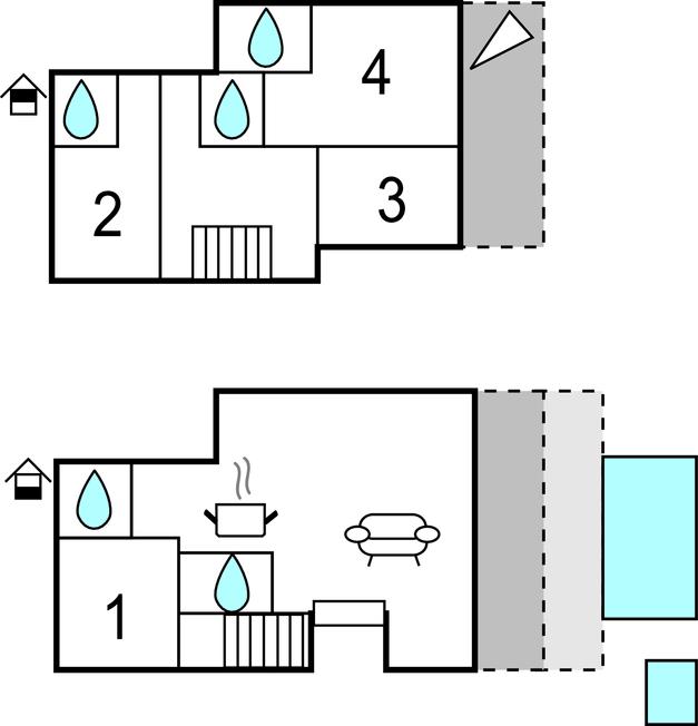 Badeværelse 4m2 (nr. 4) - WC. Varmt og koldt vand. Bruser
