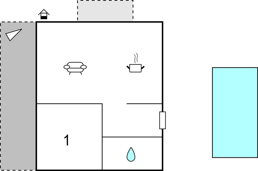 Opholdsstue/køkken 40m2 - 1 Soveplads. (Sofa, madras eller lignende).