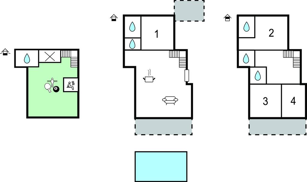 Badeværelse 4m2 (nr. 3) - WC. Varmt og koldt vand. Bruser