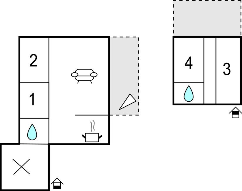 Badeværelse 6m2 (nr. 1) - WC. Varmt og koldt vand. Bruser