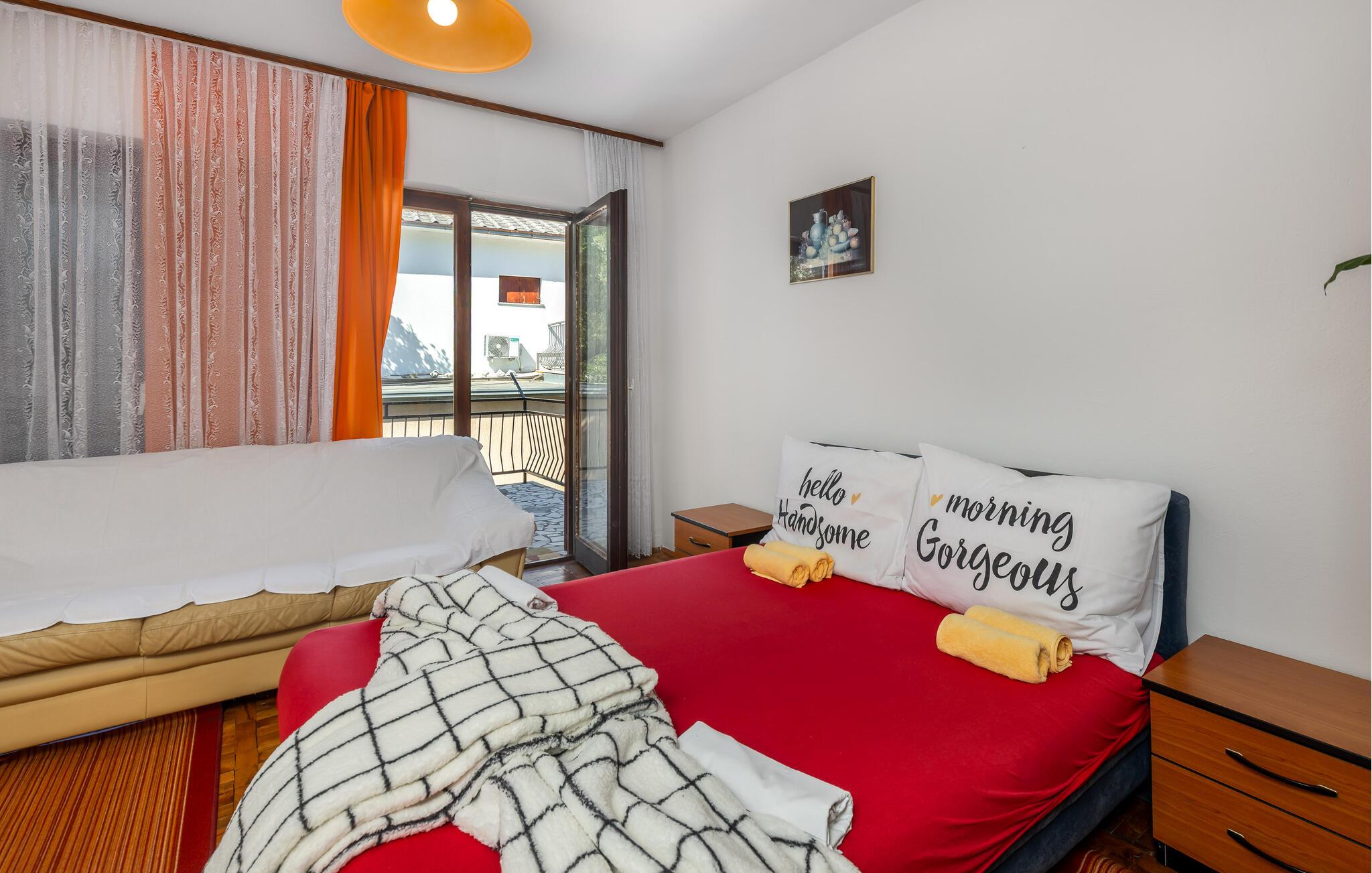 Beliggende i et roligt boligområde og tæt på alle faciliteter, inviterer denne hyggelige ferielejlighed jer til at tilbringe solrige dage på stranden med familien. Fremtryll kroatiske retter i det åbne køkken og brug den rummelige opholdsstue til hyggelige spilleaftener og muntre måltider. Glæd jer til afslappende læsestunder og forfriskende siestaer efter en lang dag på stranden.