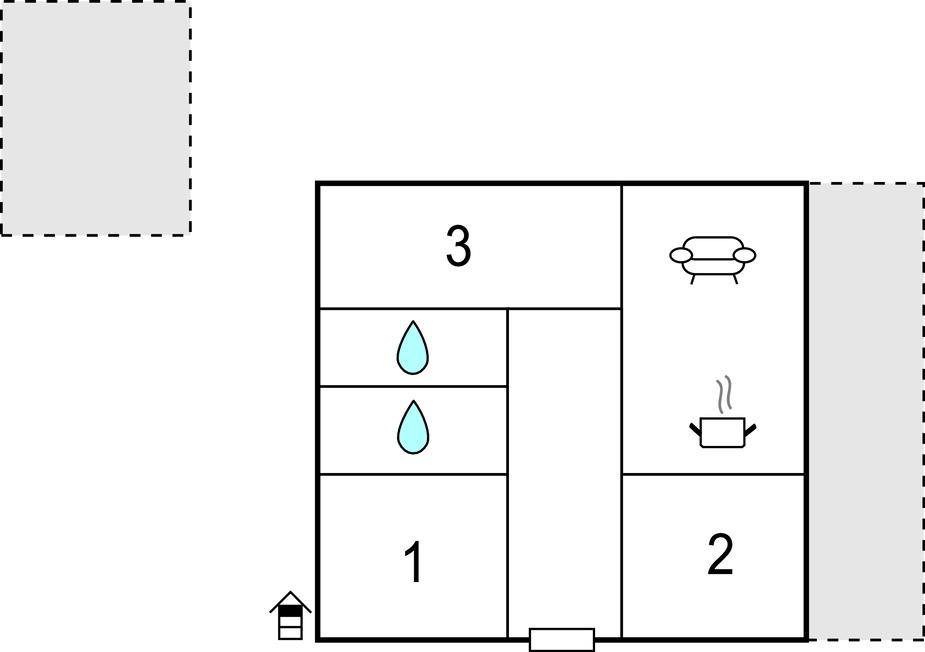 Opholdsstue/køkken 20m2 - 2 Sovepladser. (Sofa, madras eller lignende).