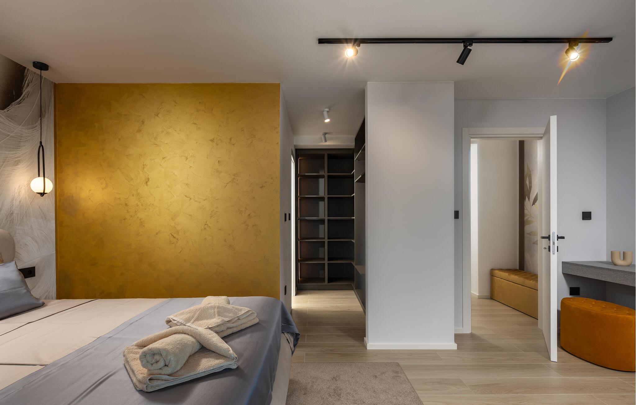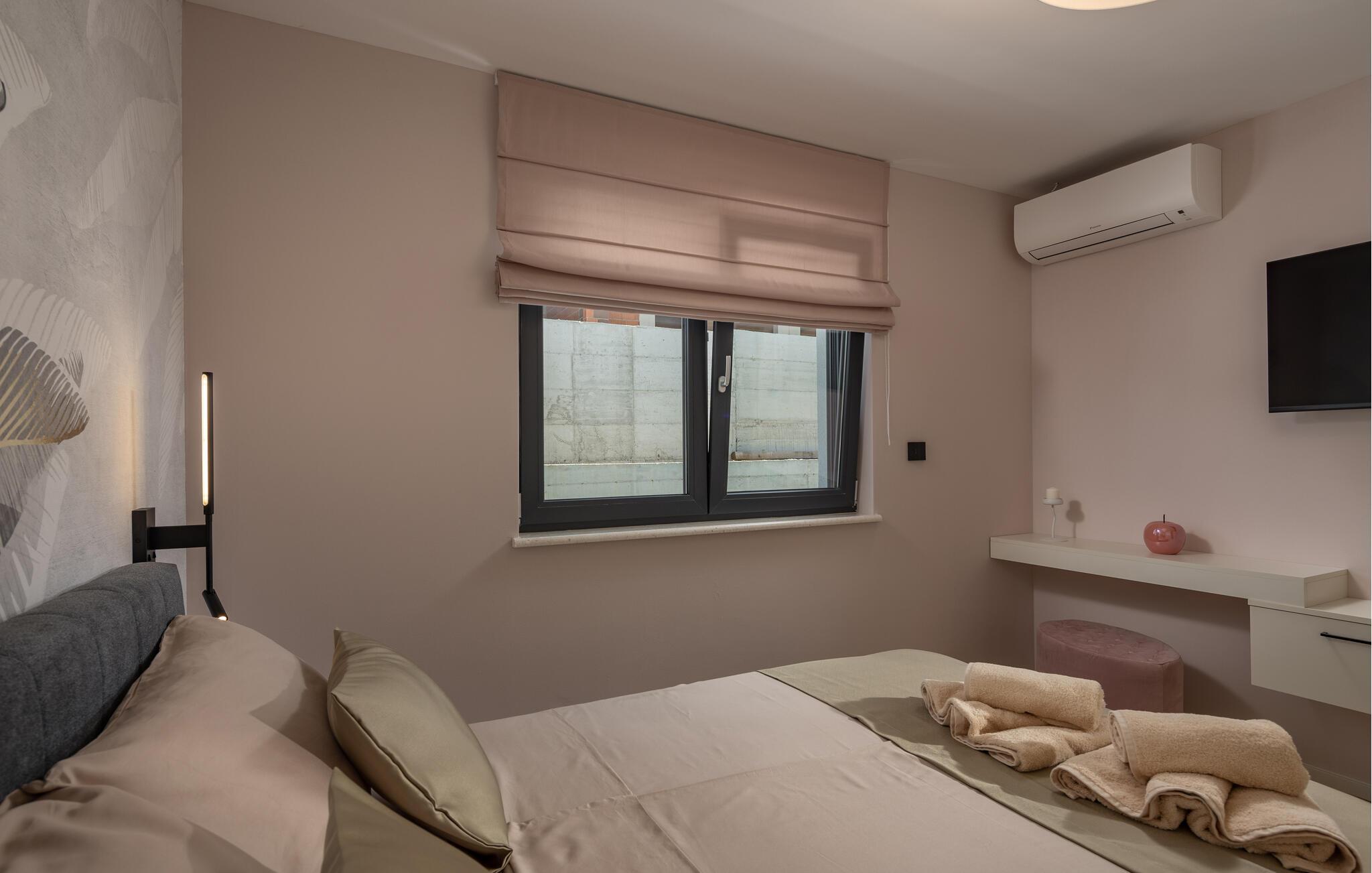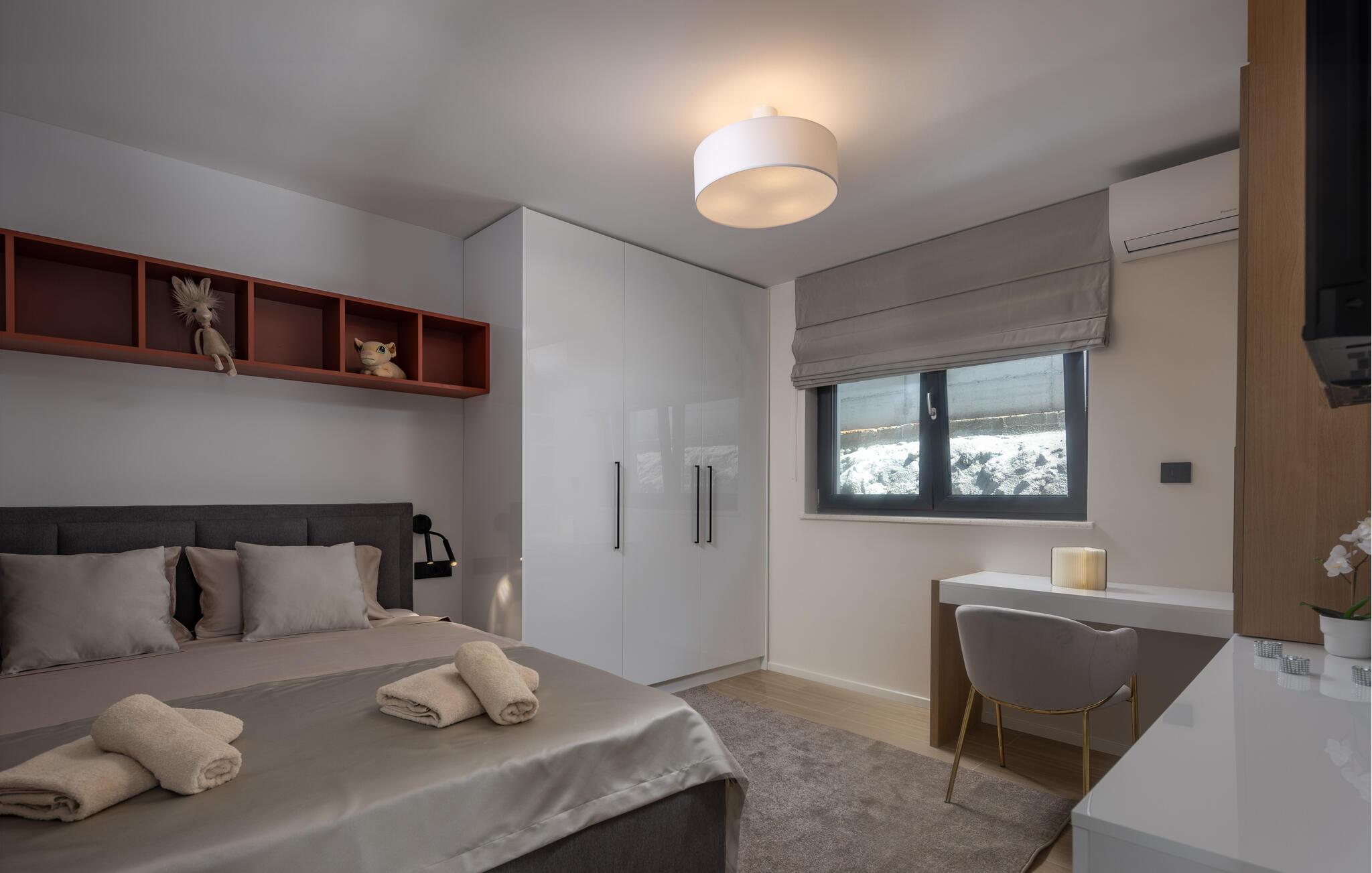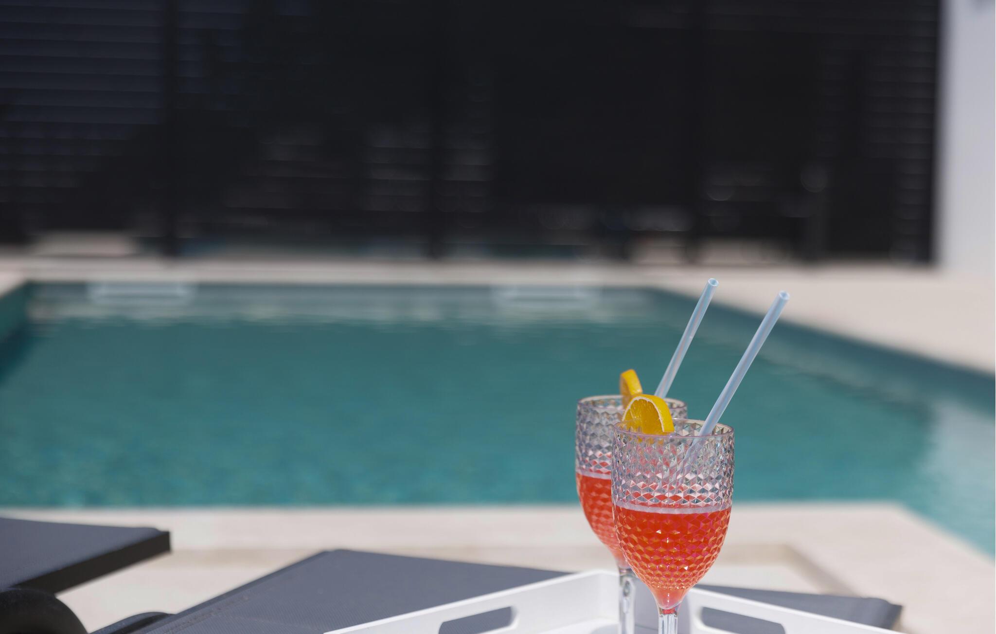 Dette eksklusive feriehus byder på plads til en stor familie og en stor udendørspool, der lægger op til afslapning og forfriskning. Værelserne med aircondition sikrer behagelige temperaturer, selv på de varmeste dage. Det moderne udstyr og lækre indretningsløsninger i hele huset sikrer maksimal komfort og lader intet tilbage at ønske. Nyd jeres måltider på en af de to overdækkede terrasser, som er udstyret med stilfulde havemøbler. Benyt jer af grillen på skønne sommerdage, hvor I kan nyde den friske luft og en smuk havudsigt.