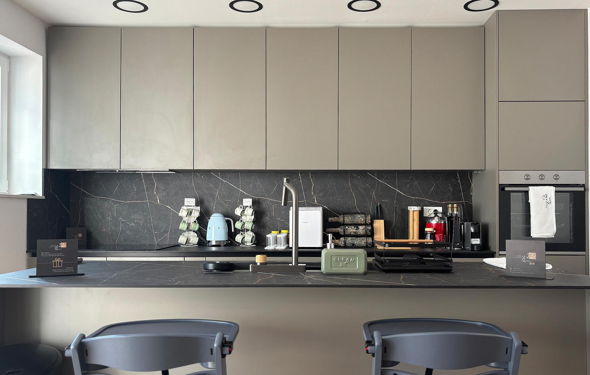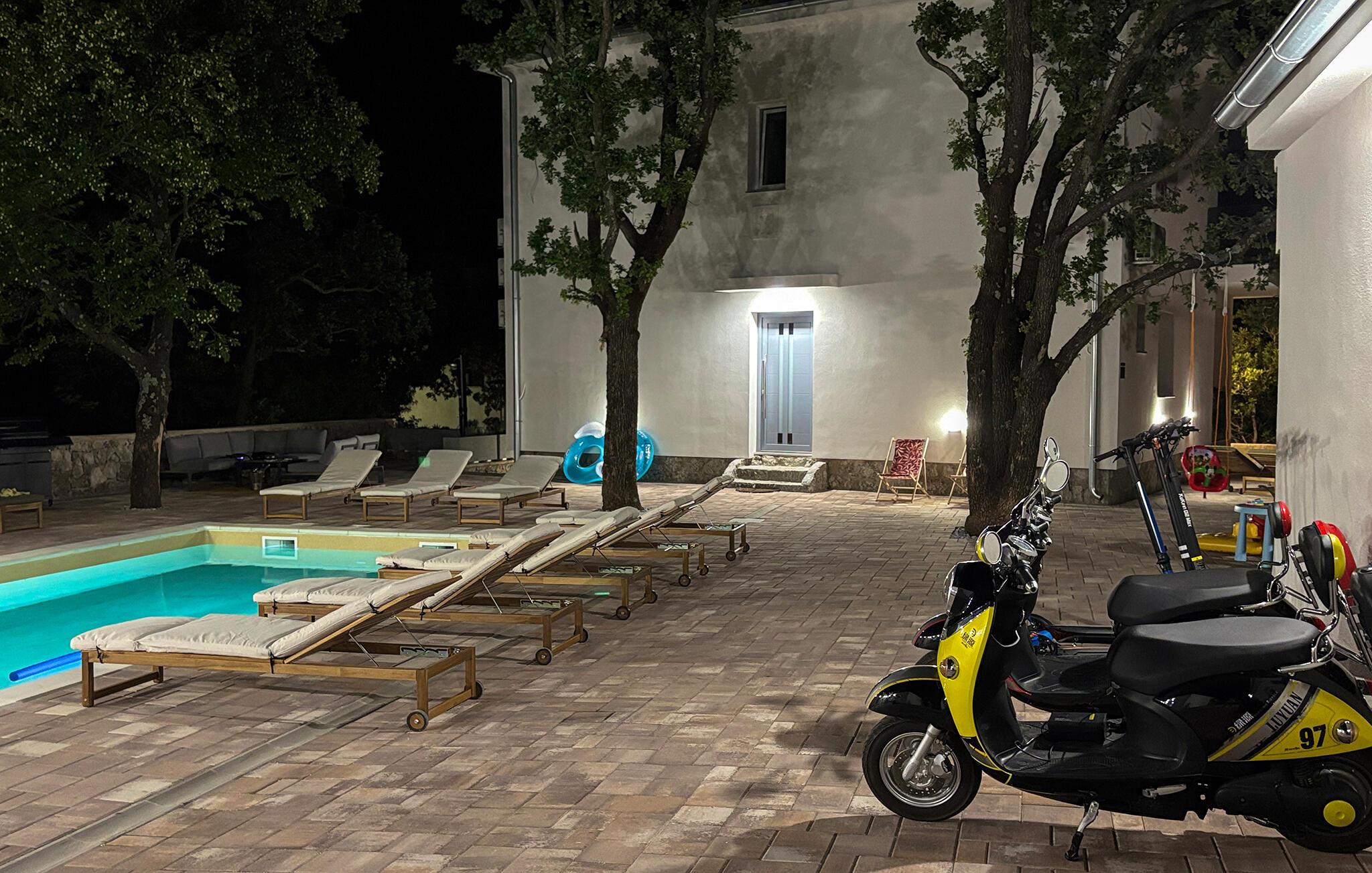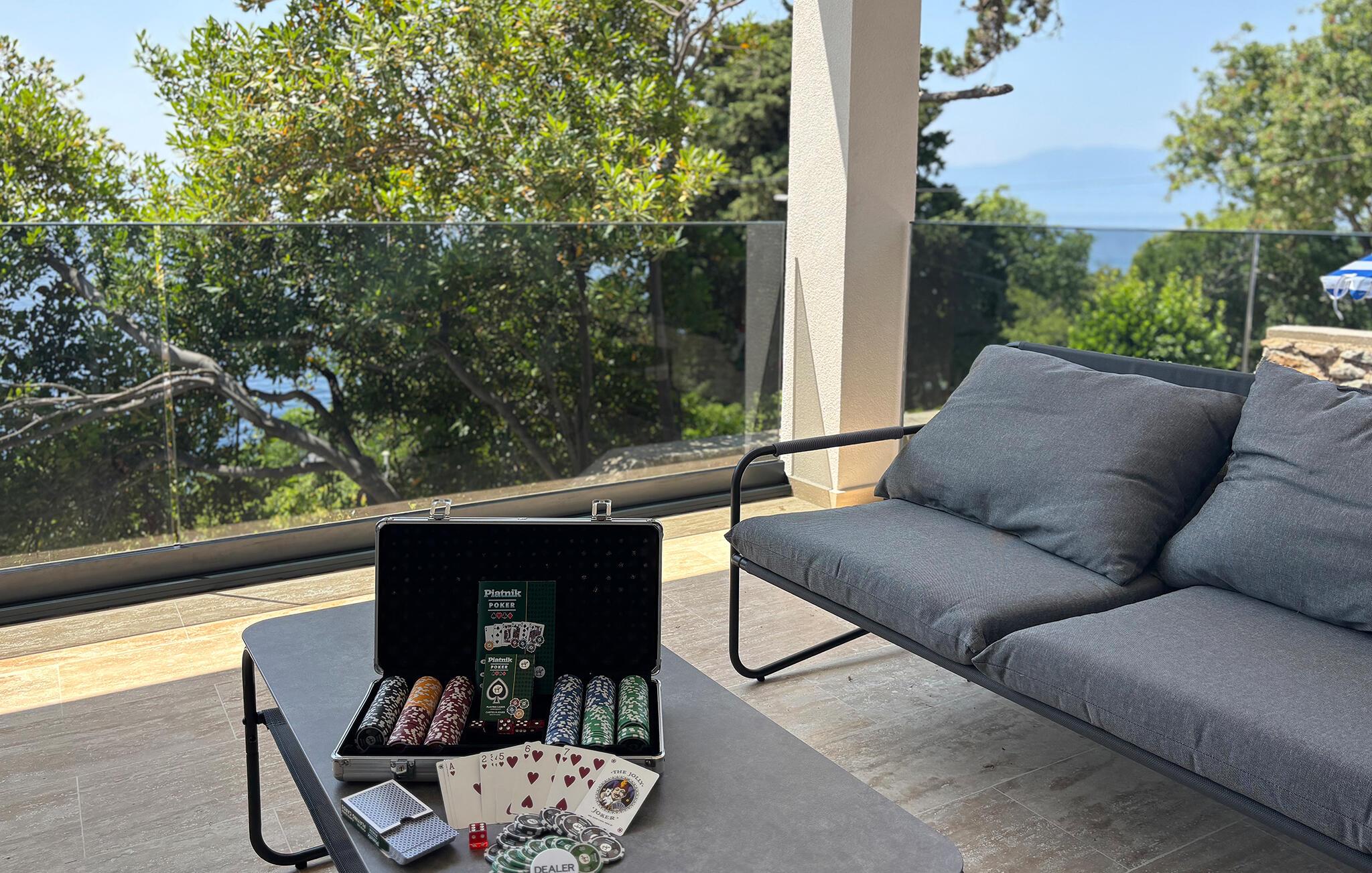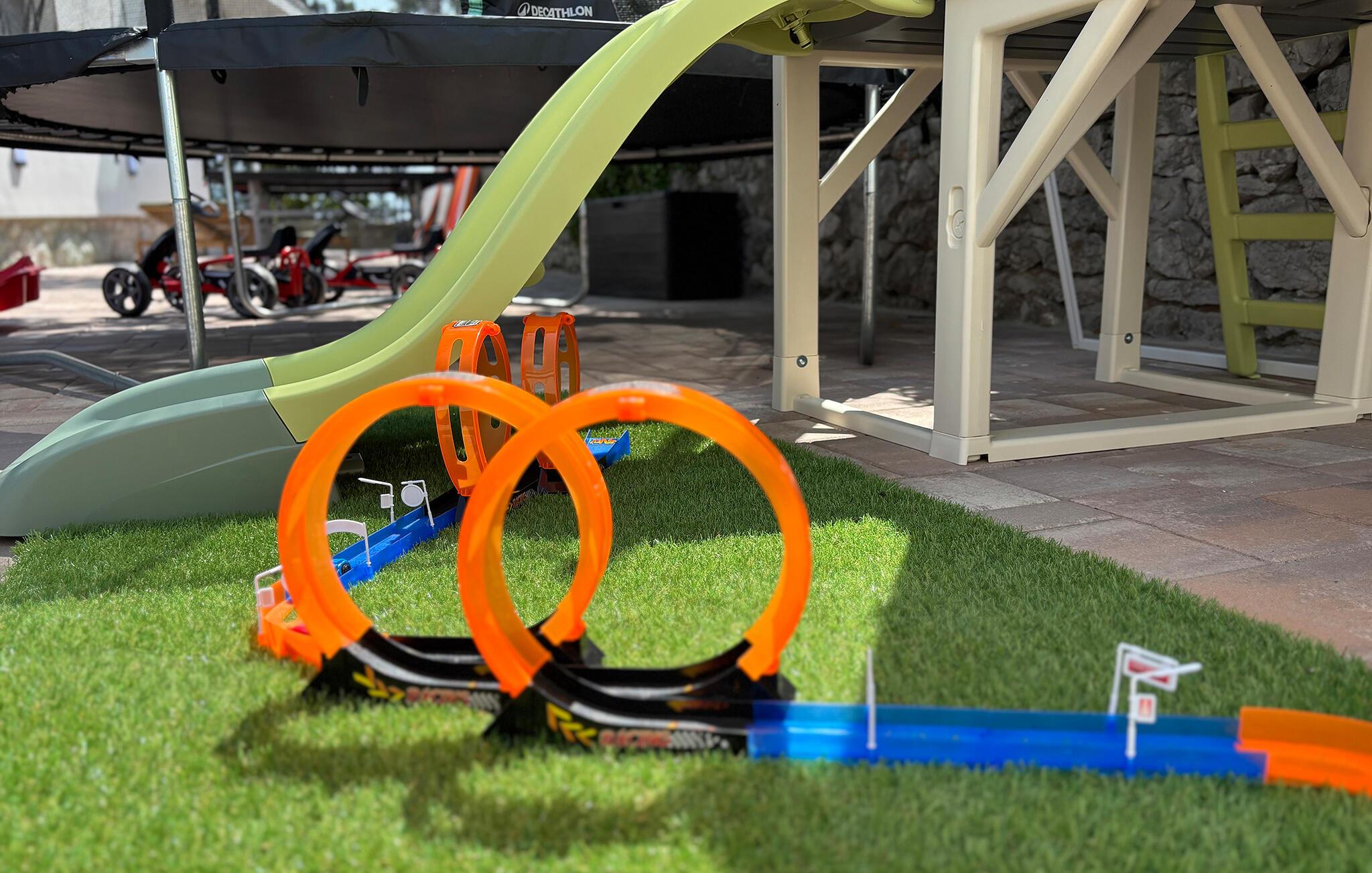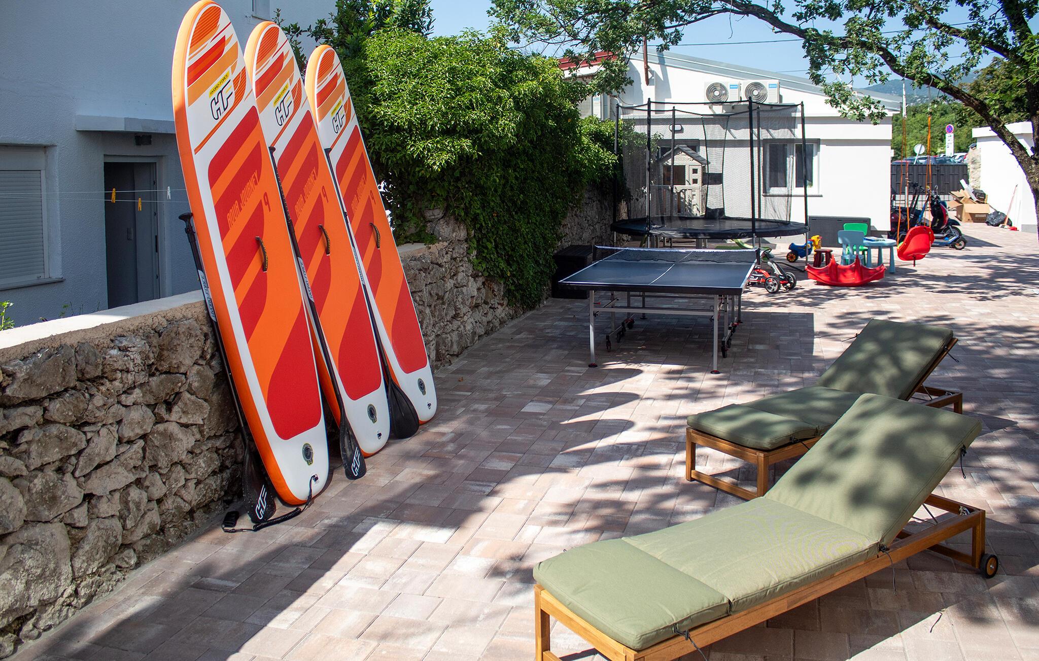 Træd ud på terrasserne, og slap af i spabadet, eller hvil jer på de behagelige liggestole ved poolen. Vælg et skyggefuldt siddeområde til rolige øjeblikke, eller prøv pizzaovnen og grillen for lidt kulinarisk variation. Slap af på den øverste terrasse, nyd udsigten over havet, og brug dette rum til yoga eller afslapning i en hængestol. Lad børnene lege frit – hvad enten det er på trampolinen, gyngen, rutsjebanen eller ved bordtennisbordet udenfor.